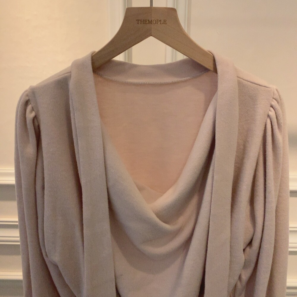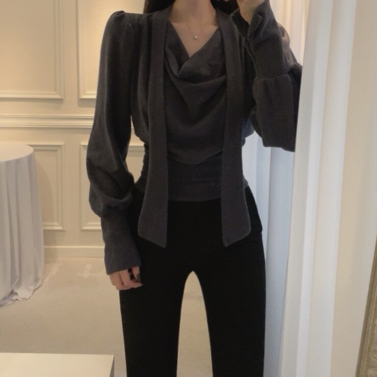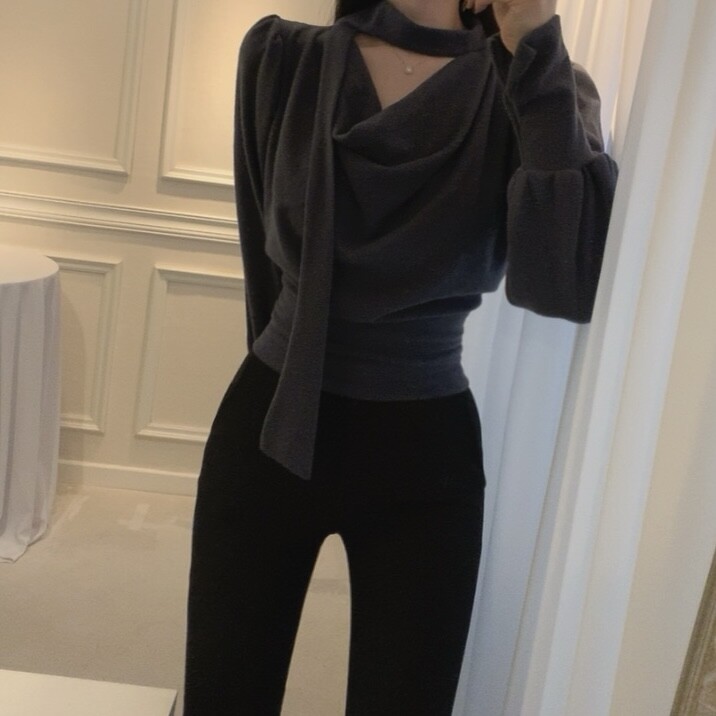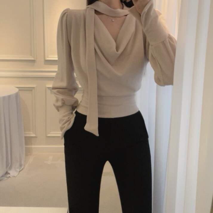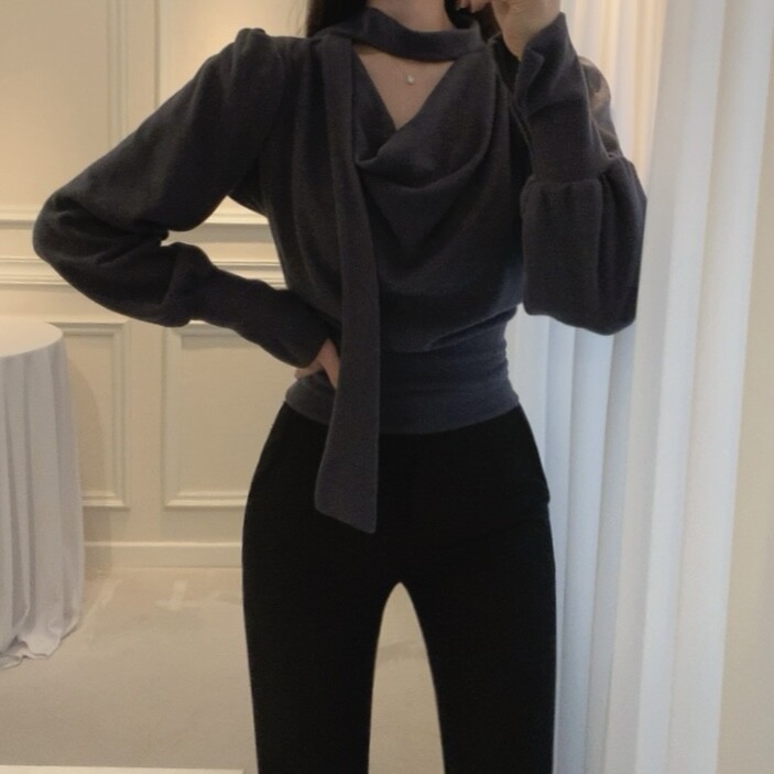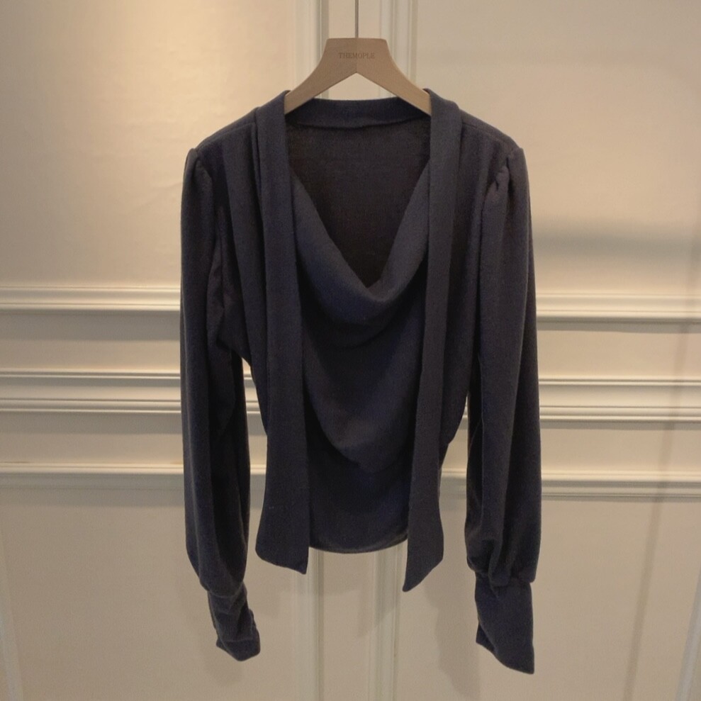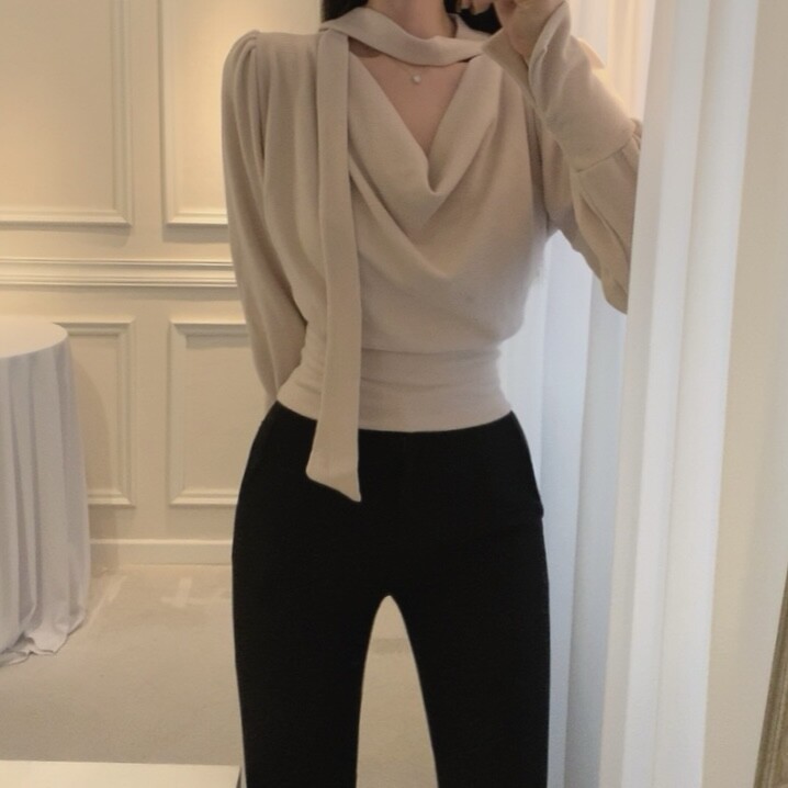 기모 스카프 타이 드레이프 셔링 주름 벌룬 소매 블라우스 (하객룩 결혼식 오피스룩)