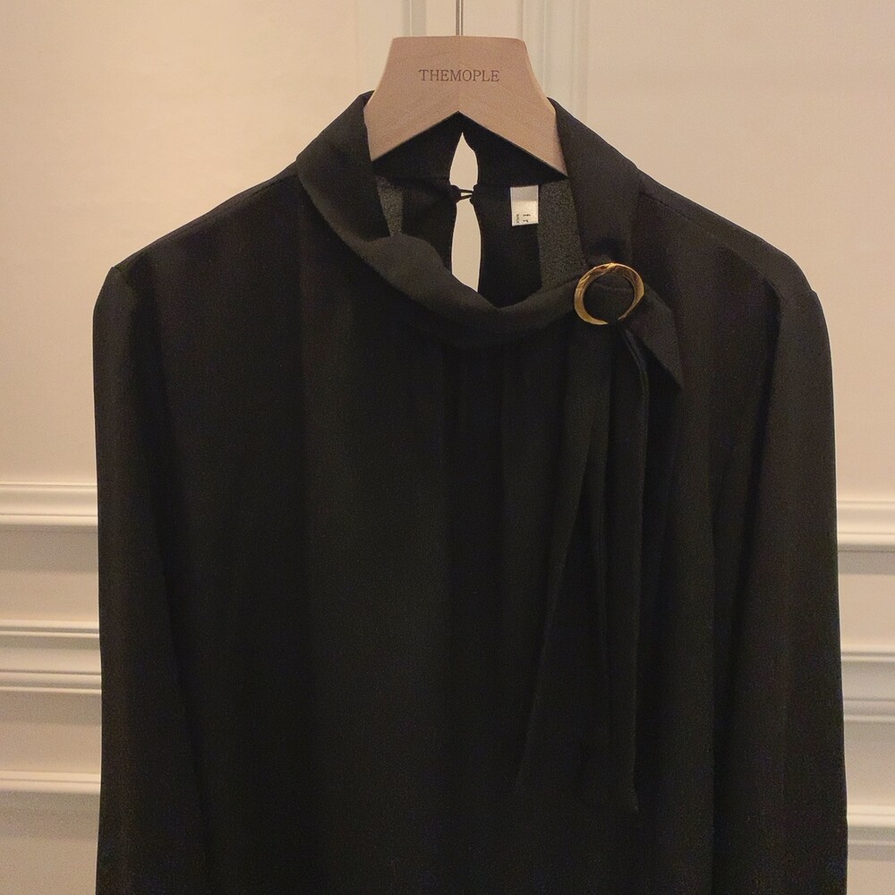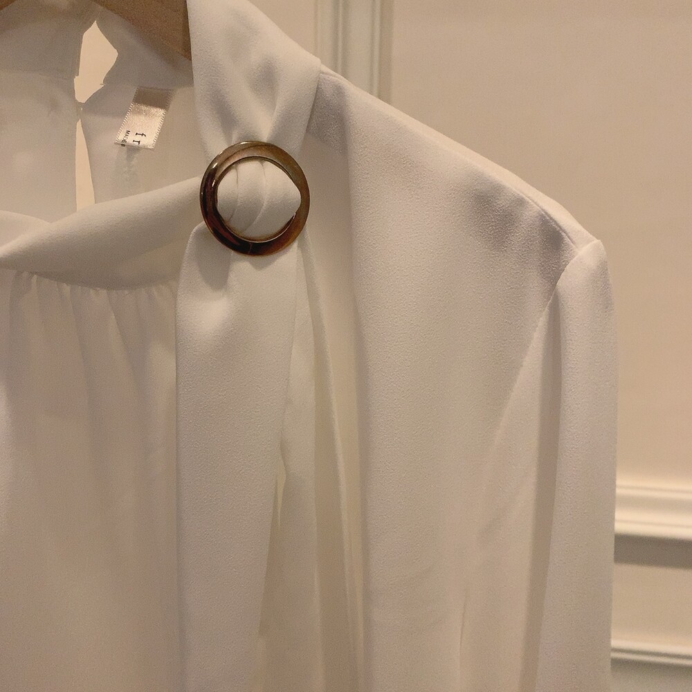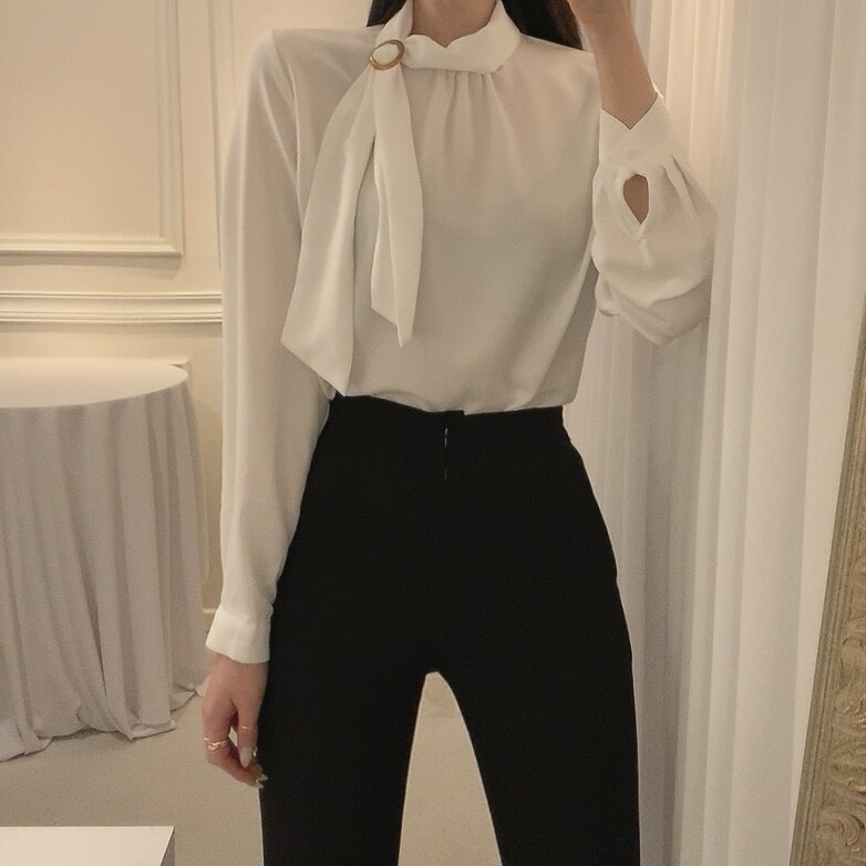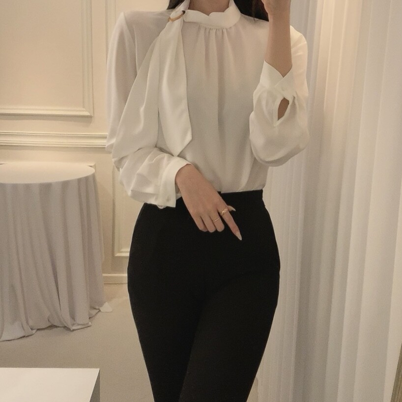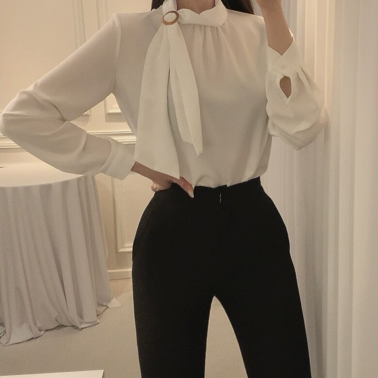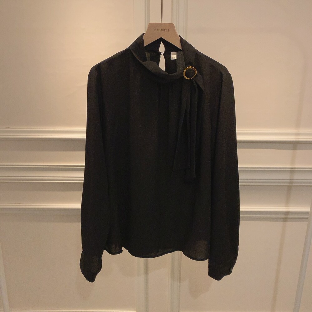 어깨 금장 타이 스카프 쉬폰 블라우스 (하객룩 오피스룩 아나운서룩)