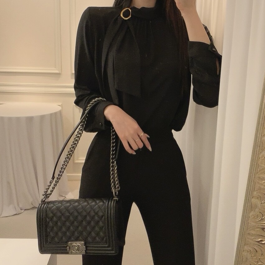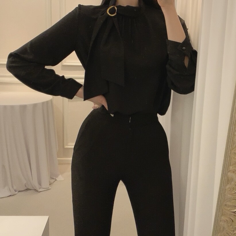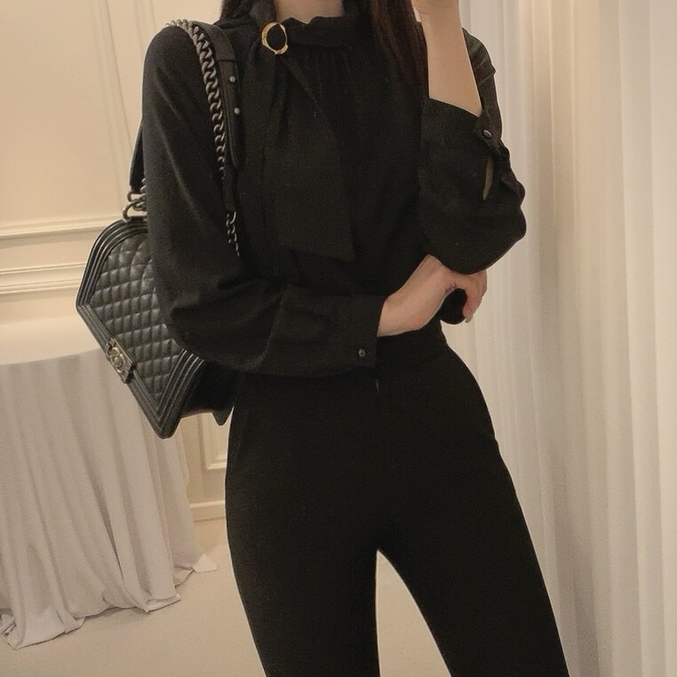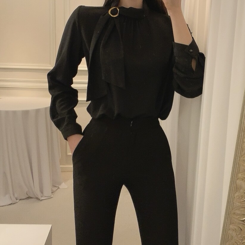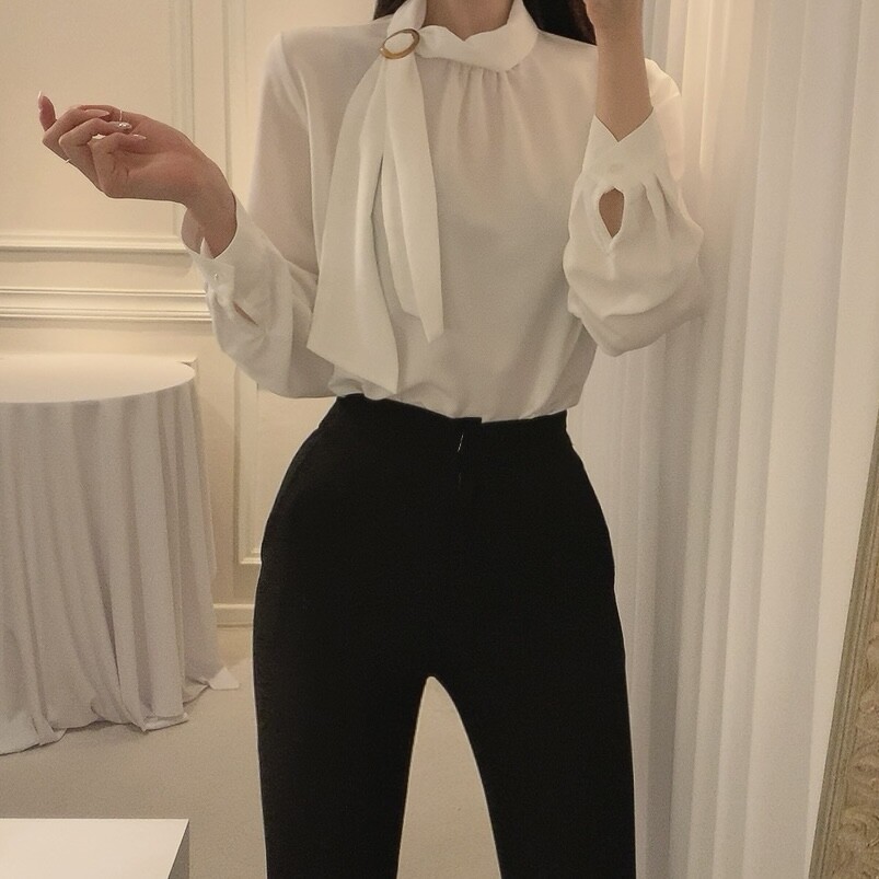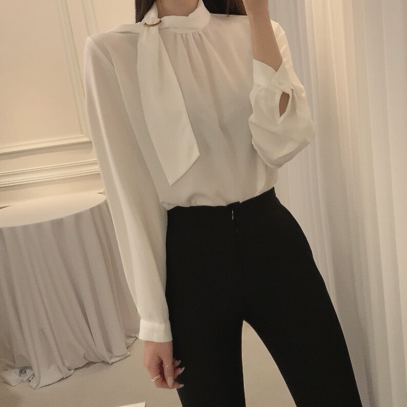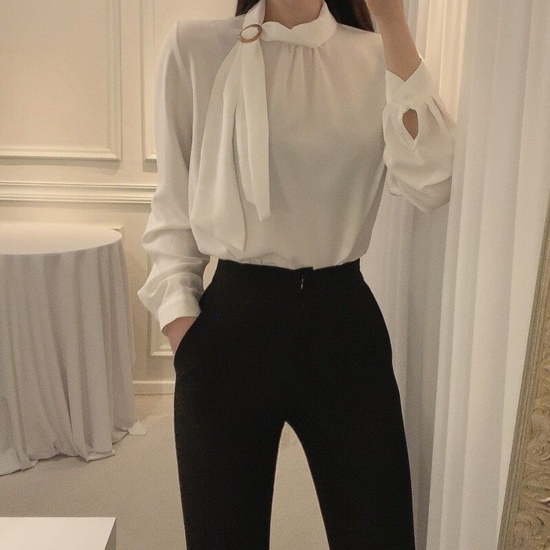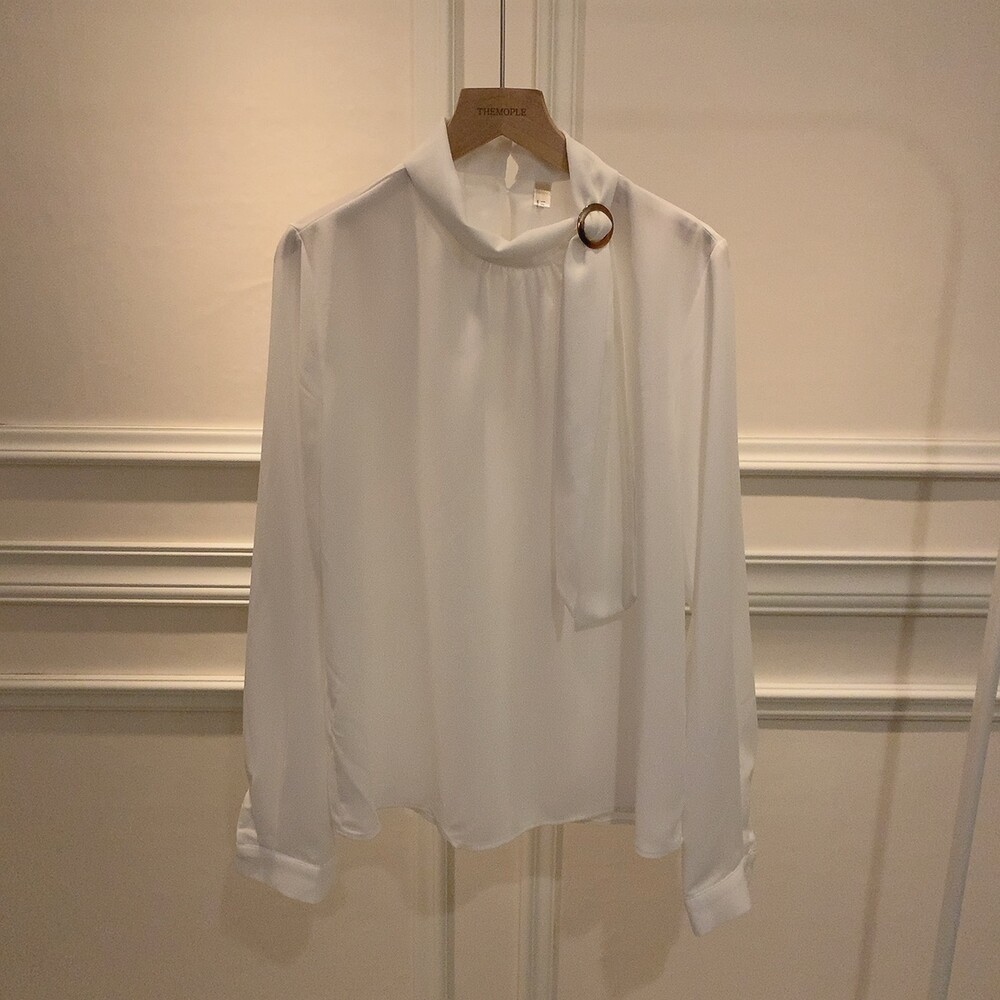 어깨 금장 타이 스카프 쉬폰 블라우스 (하객룩 오피스룩 아나운서룩)