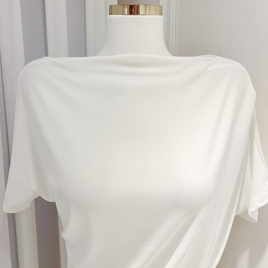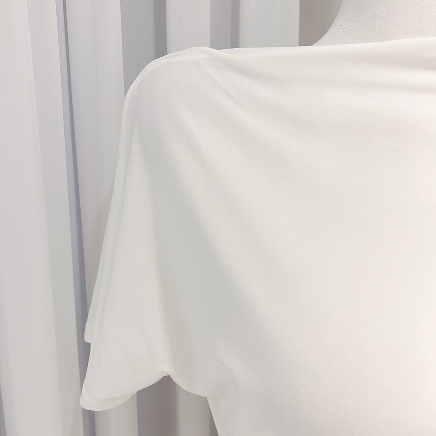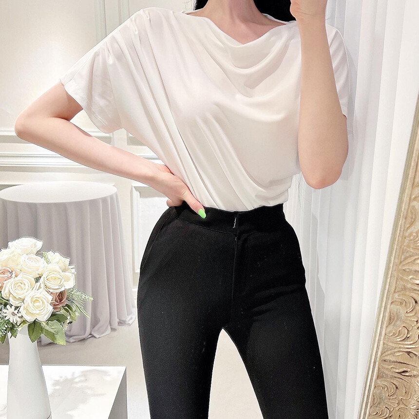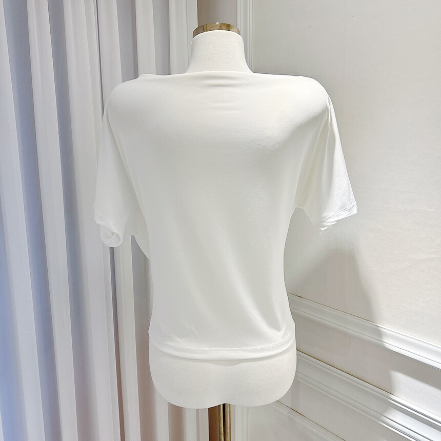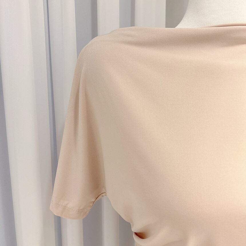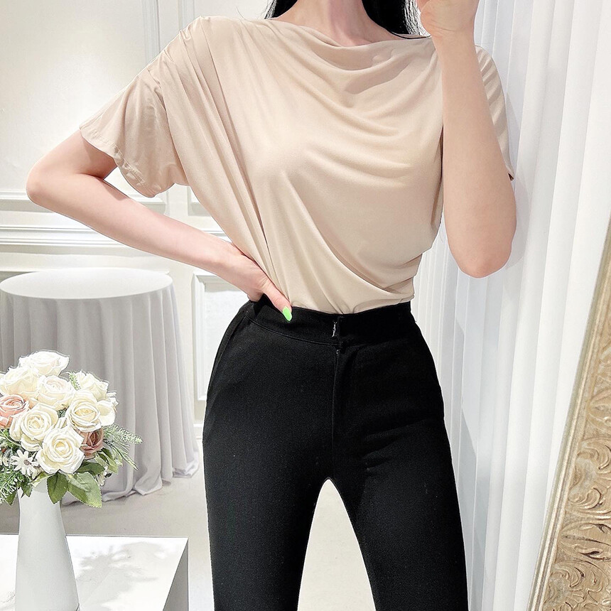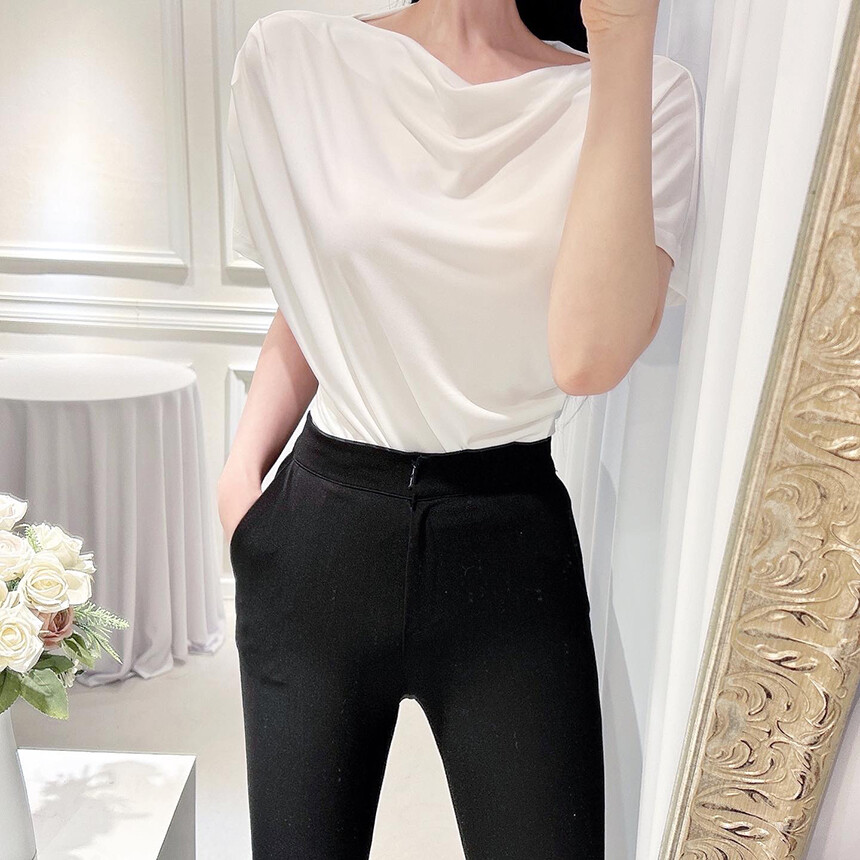 입술넥 오프숄더 셔링 주름 드레이프 반팔 여리여리 쿨링 블라우스 티셔츠