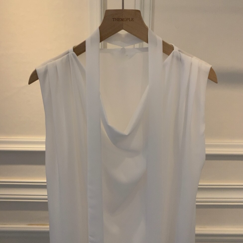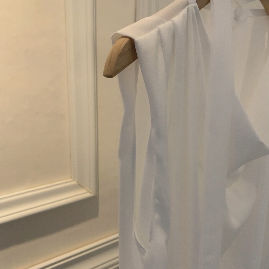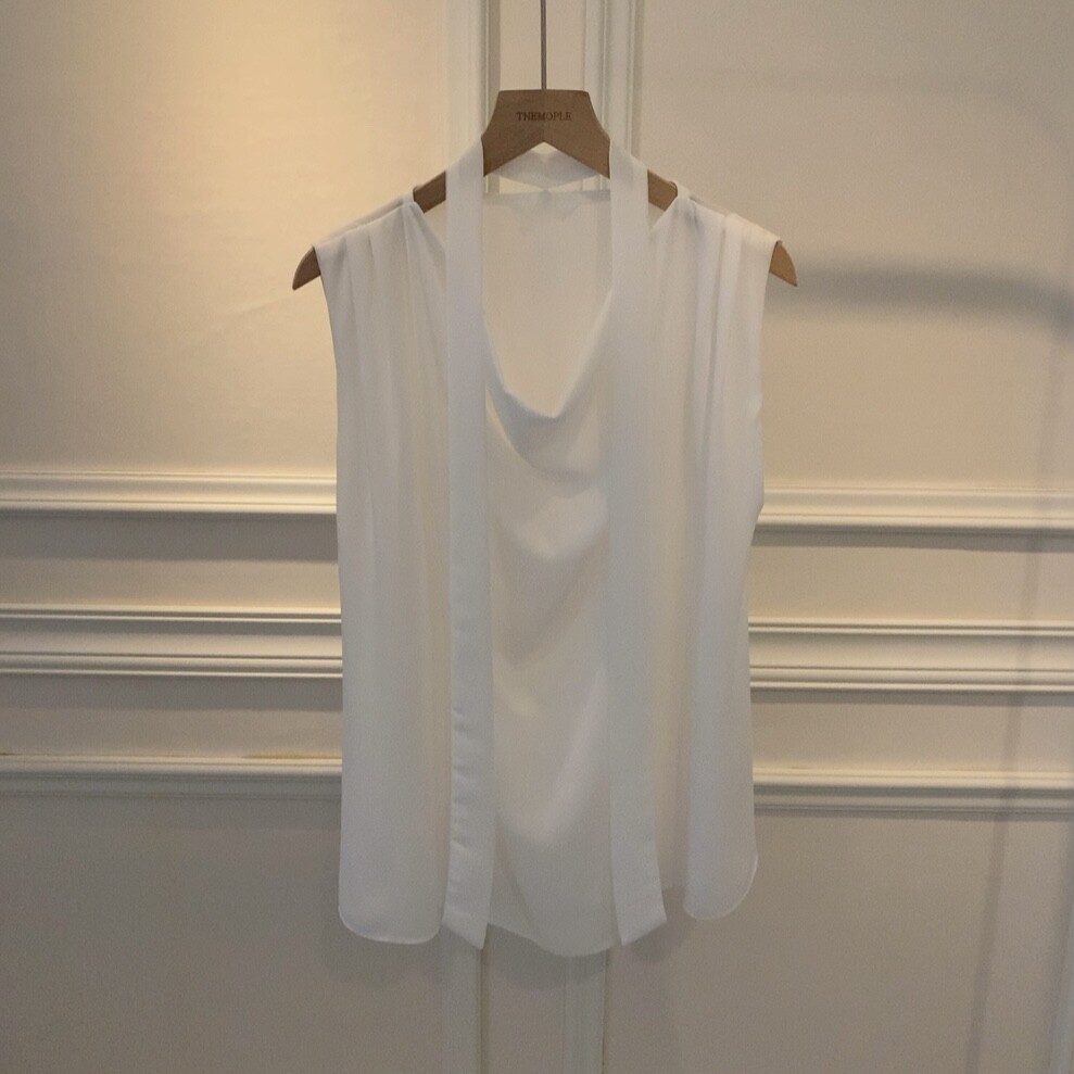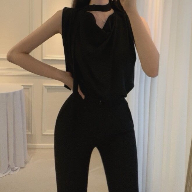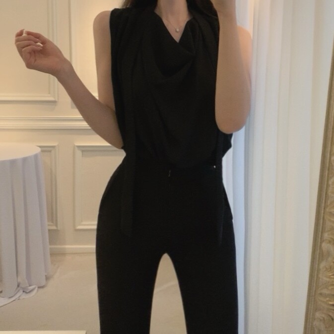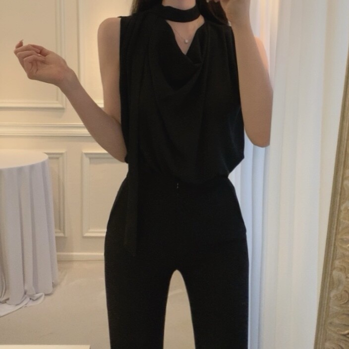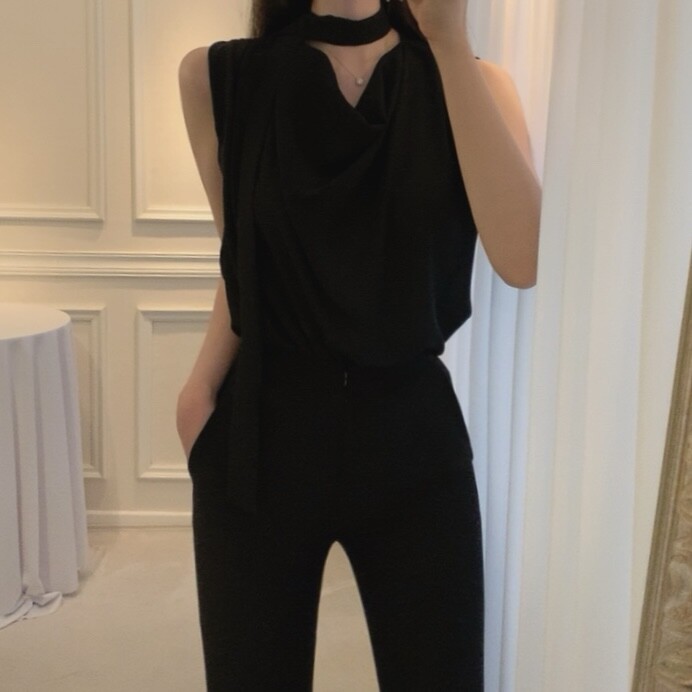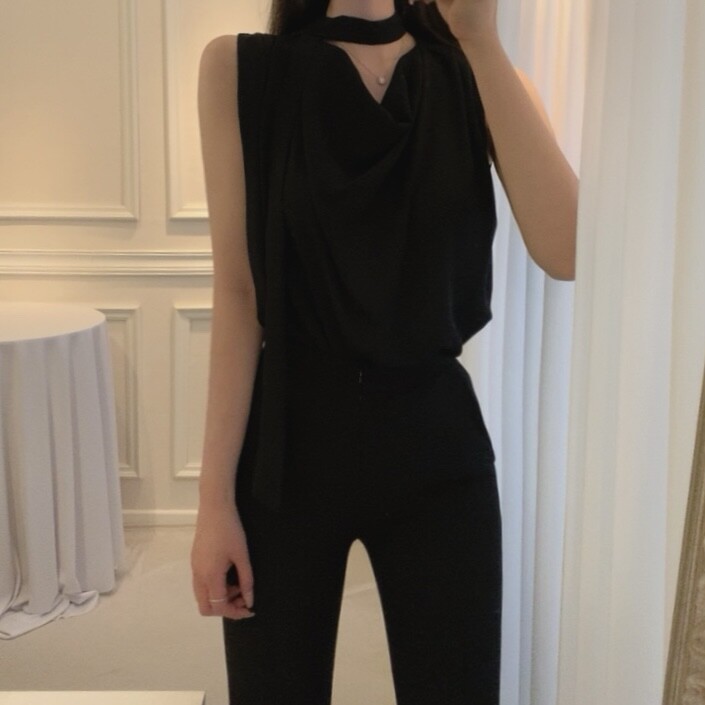 카울넥 타이 탈부착 드레이프 주름 나시 블라우스 (하객룩 결혼식 오피스룩)