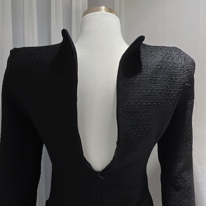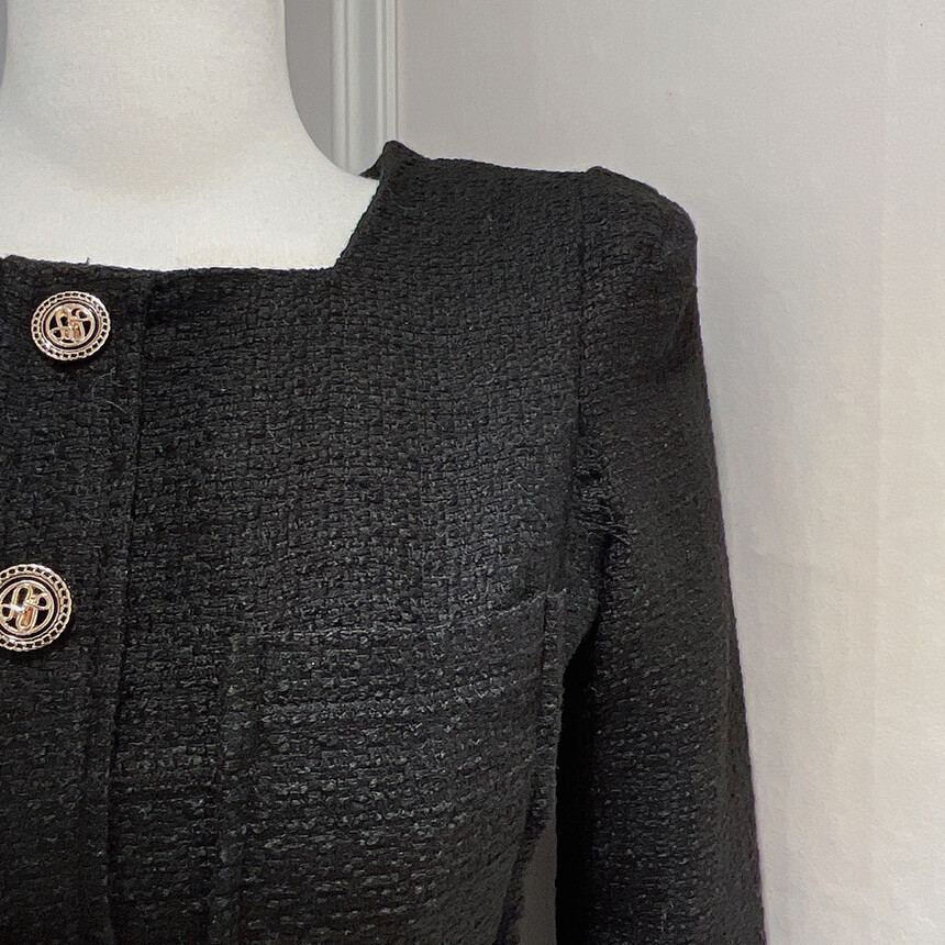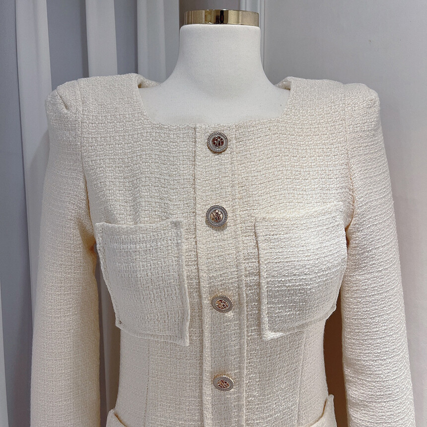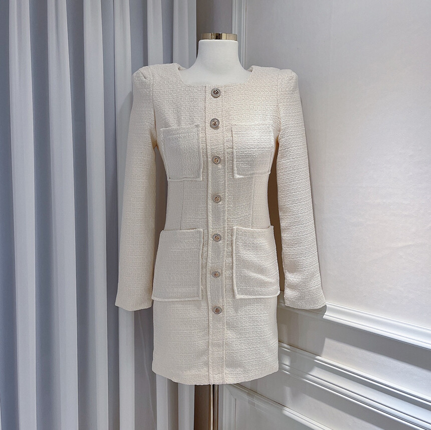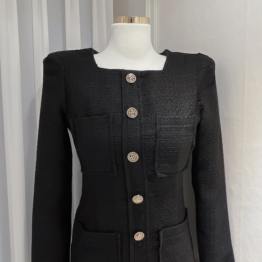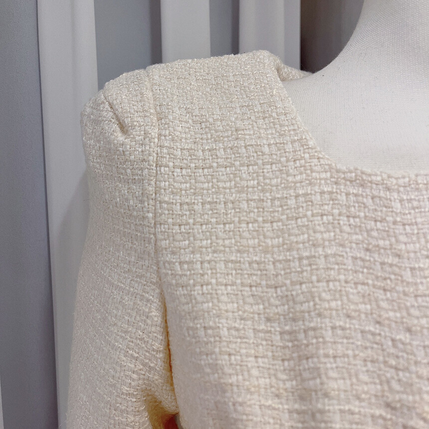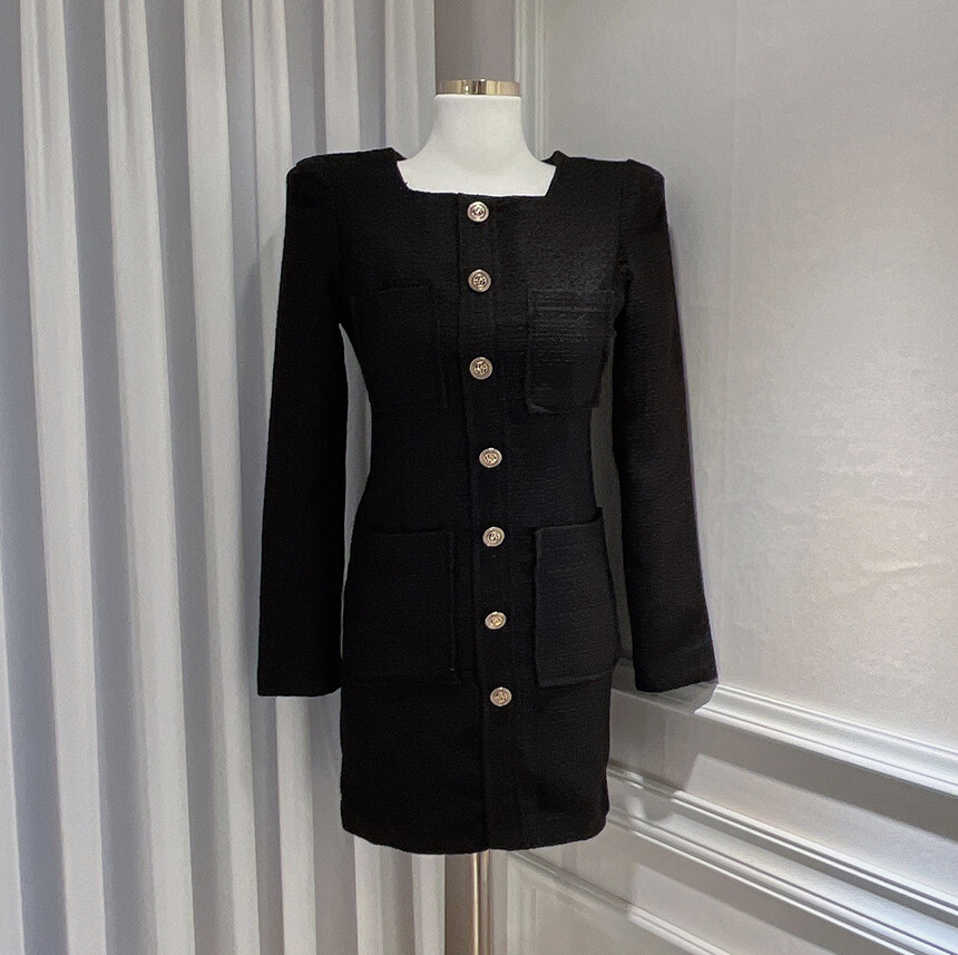 트위드 금장 버튼 스퀘어넥 슬림핏 미니원피스 (하객룩 파티룩 데이트룩)