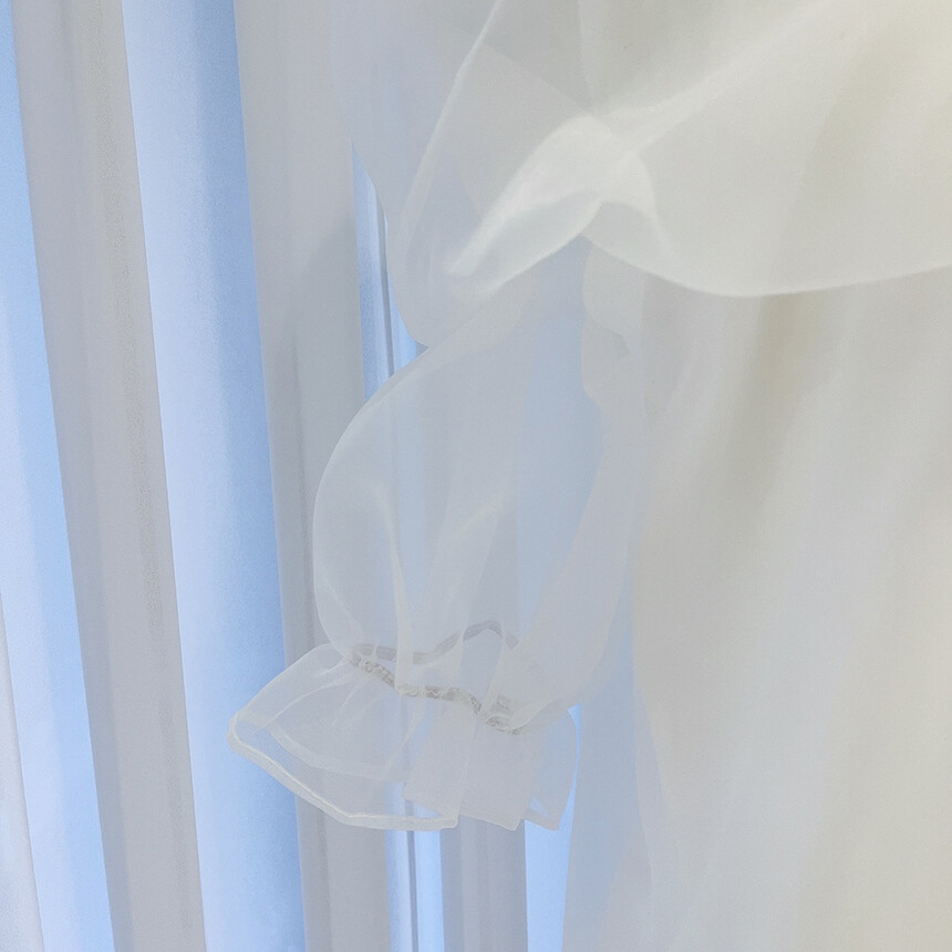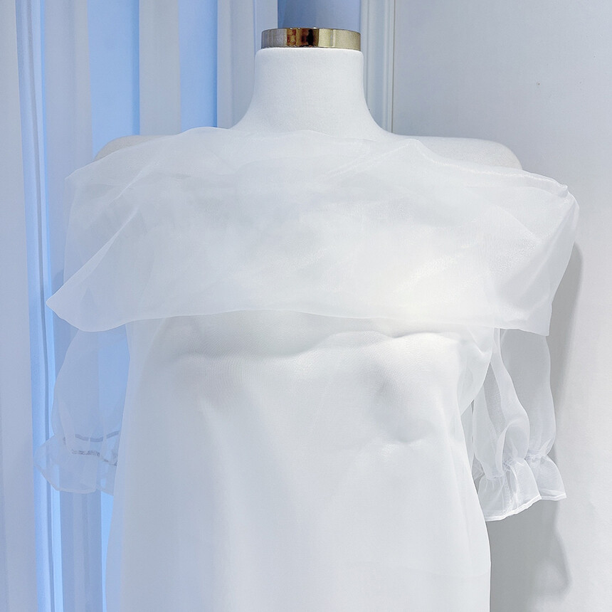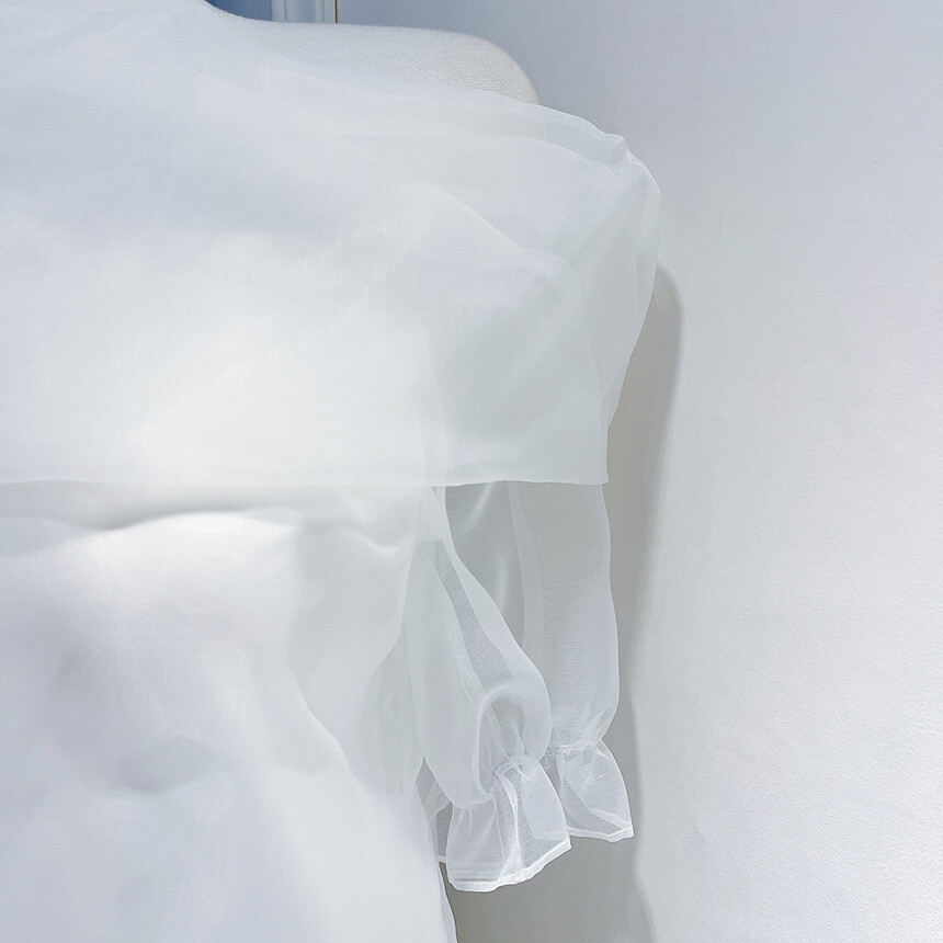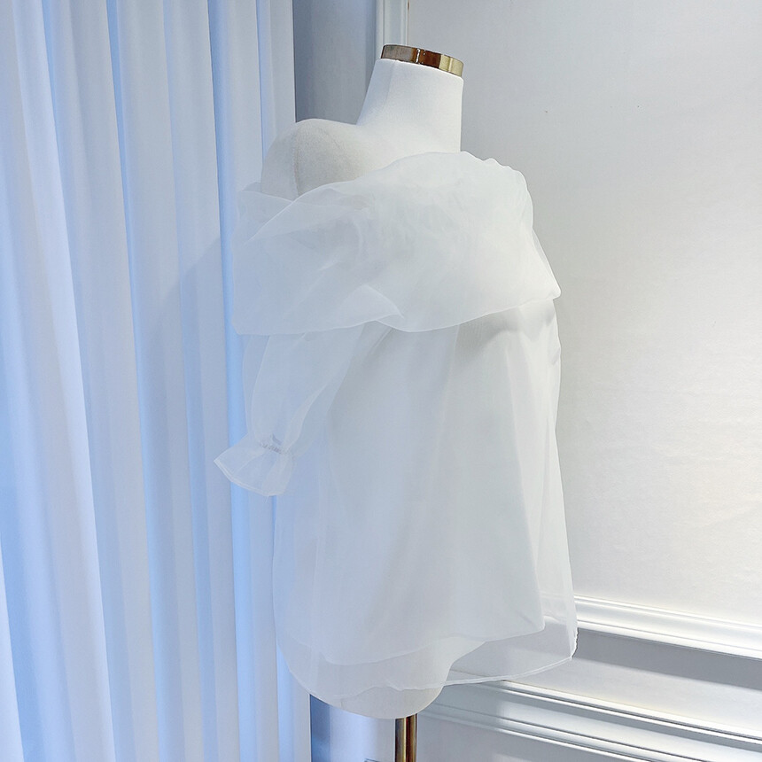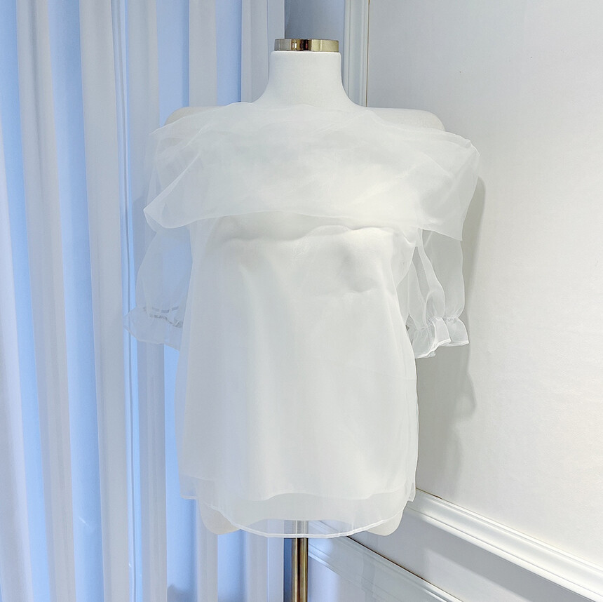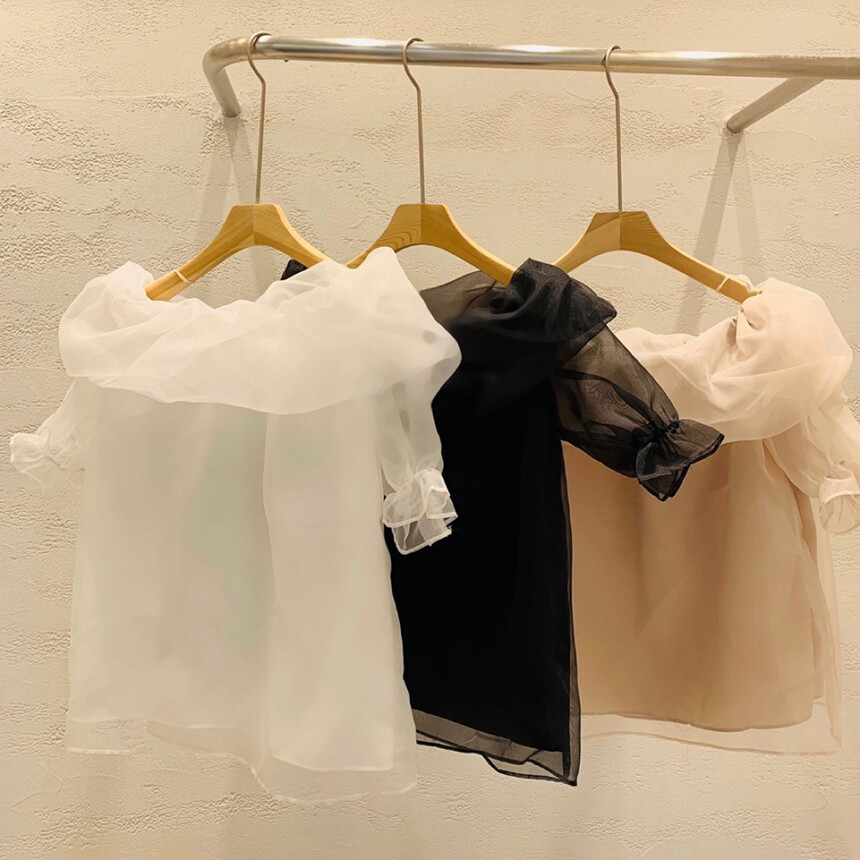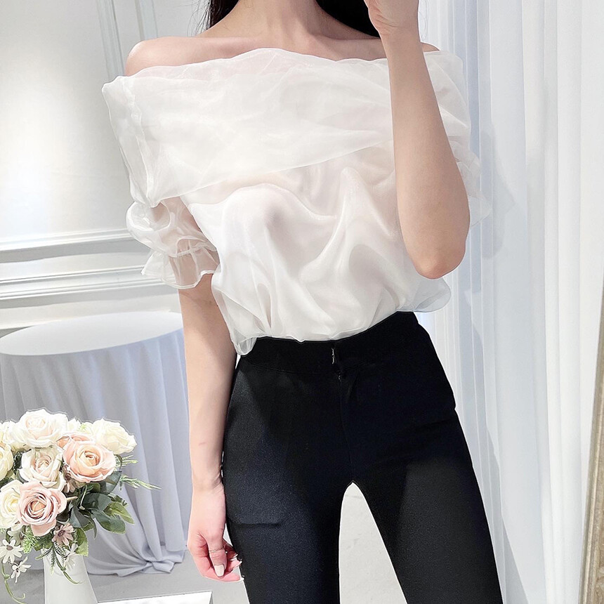(고퀄리티) 반팔 노방 오간자 시스루 오프숄더 블라우스