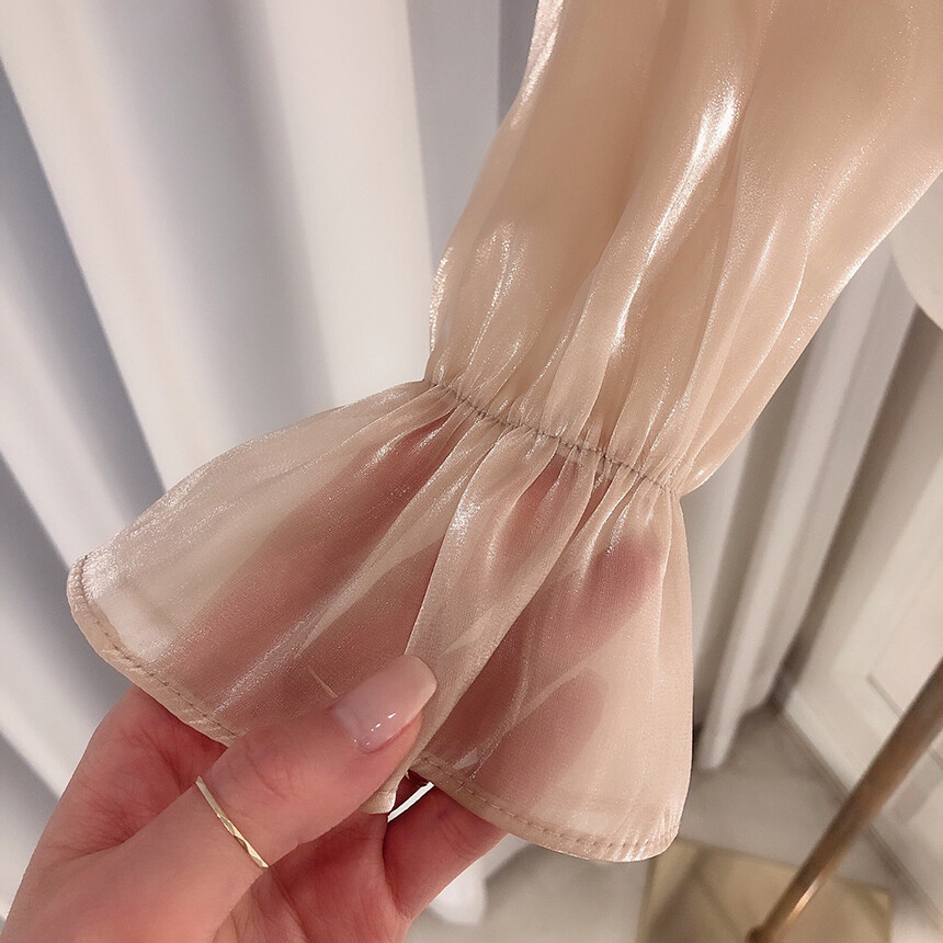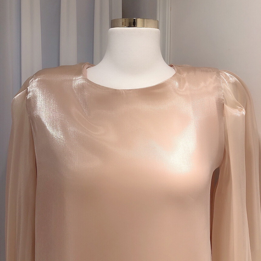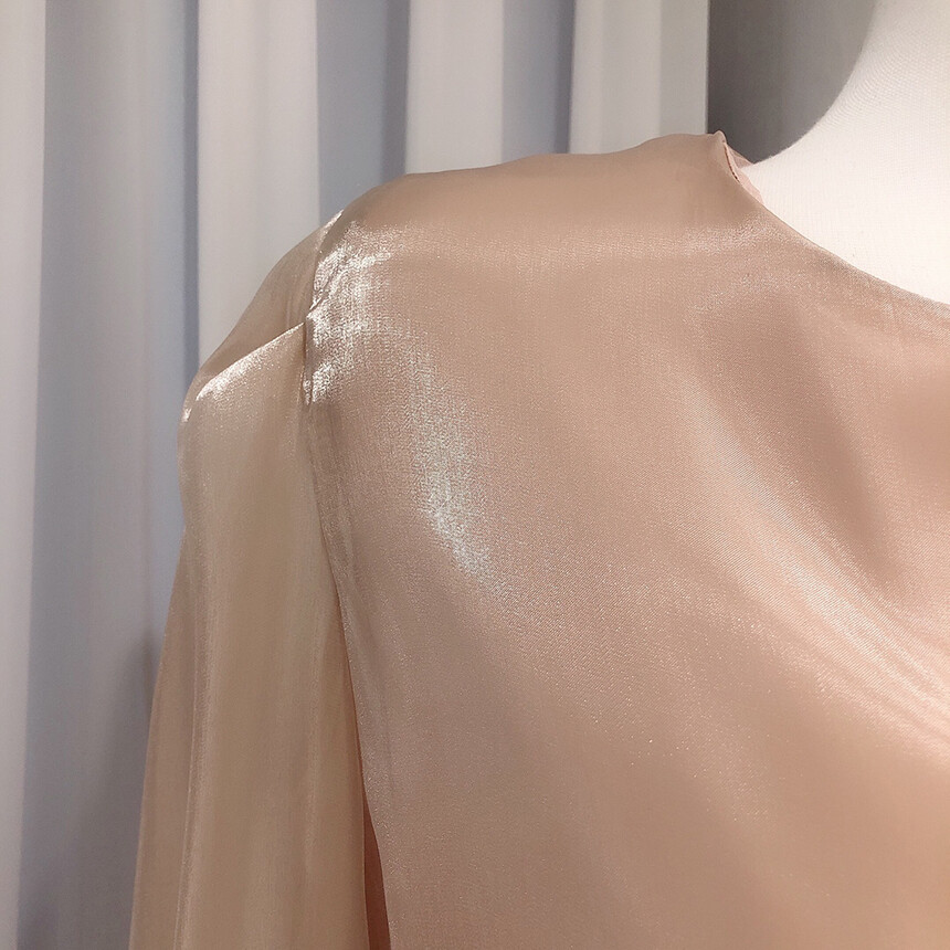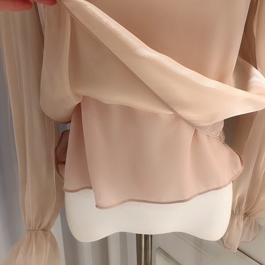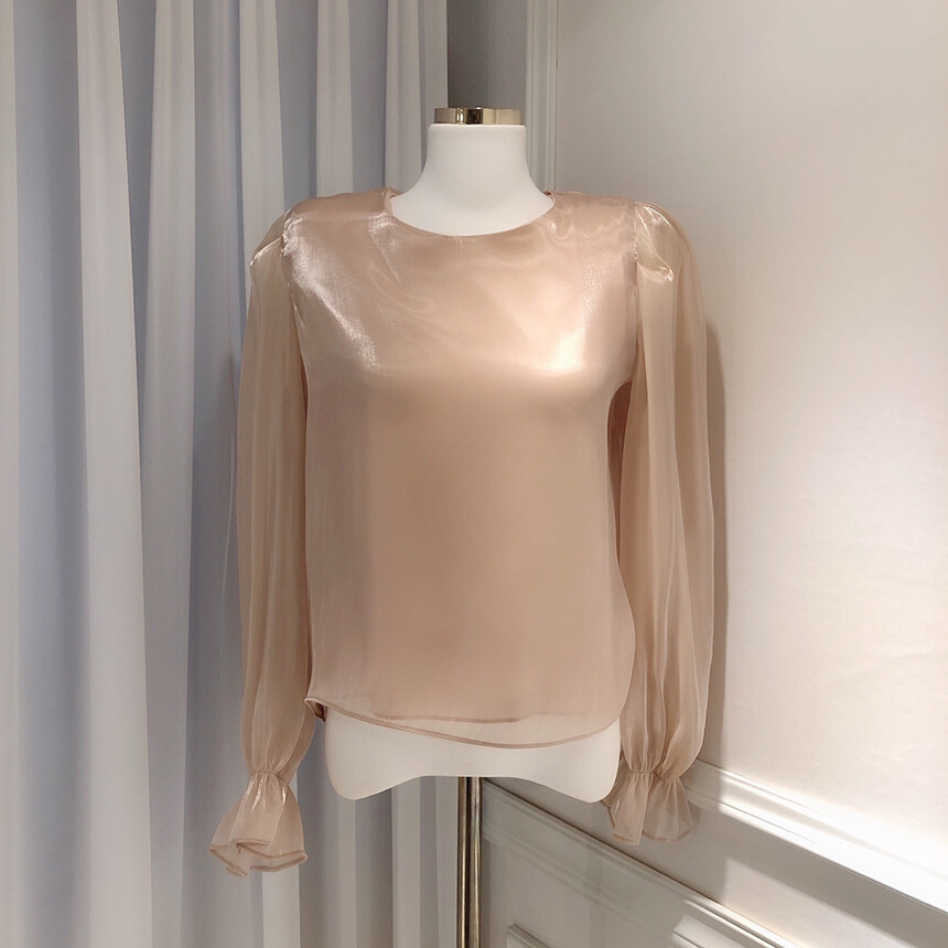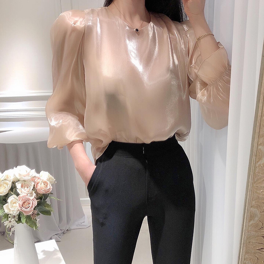 (고퀄리티) 고급 새틴 광택 퍼프 볼륨 소매 여리여리 블라우스 (하객룩 데이트룩 연말룩)