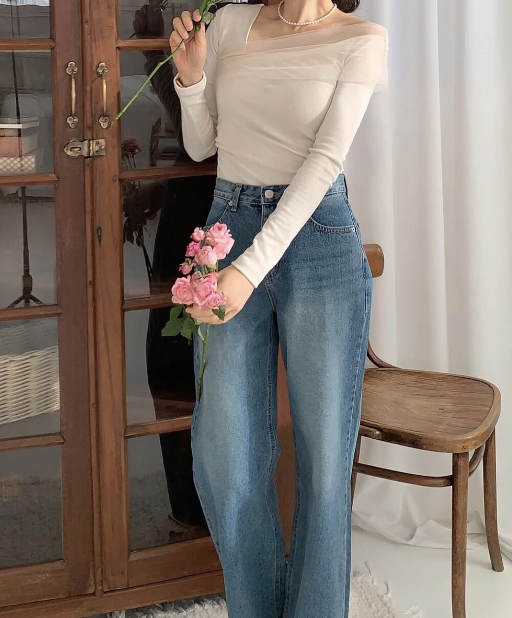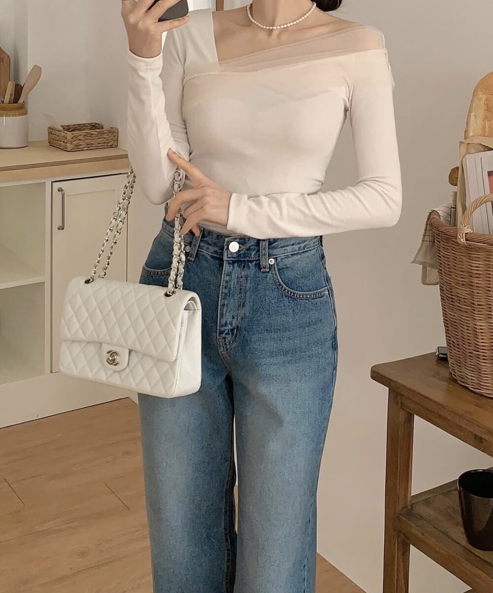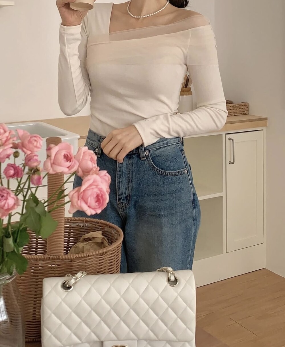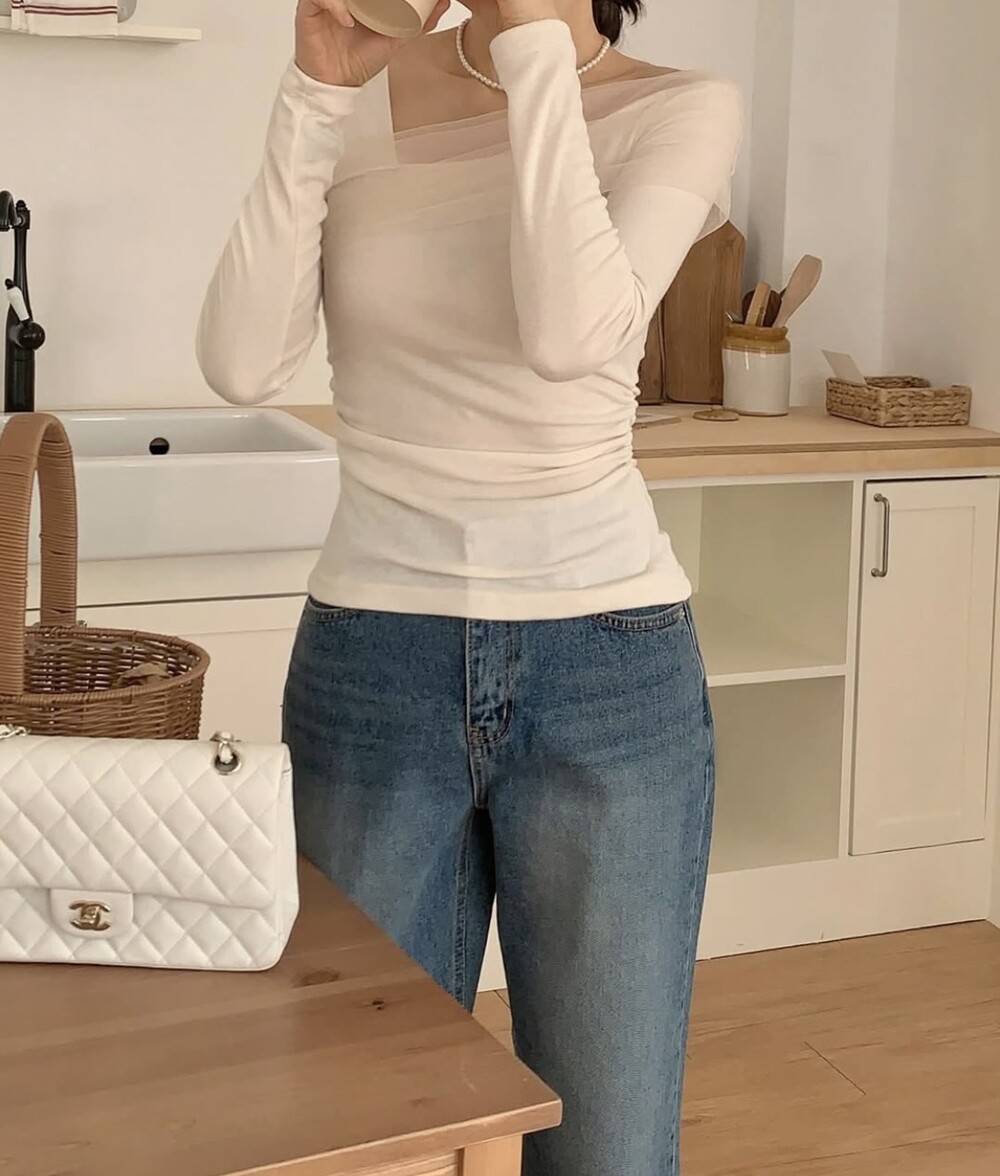 노방 시스루 언발란스 스판 긴팔 티셔츠