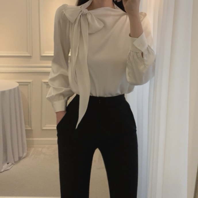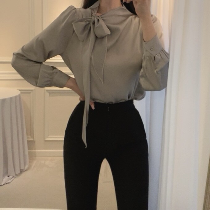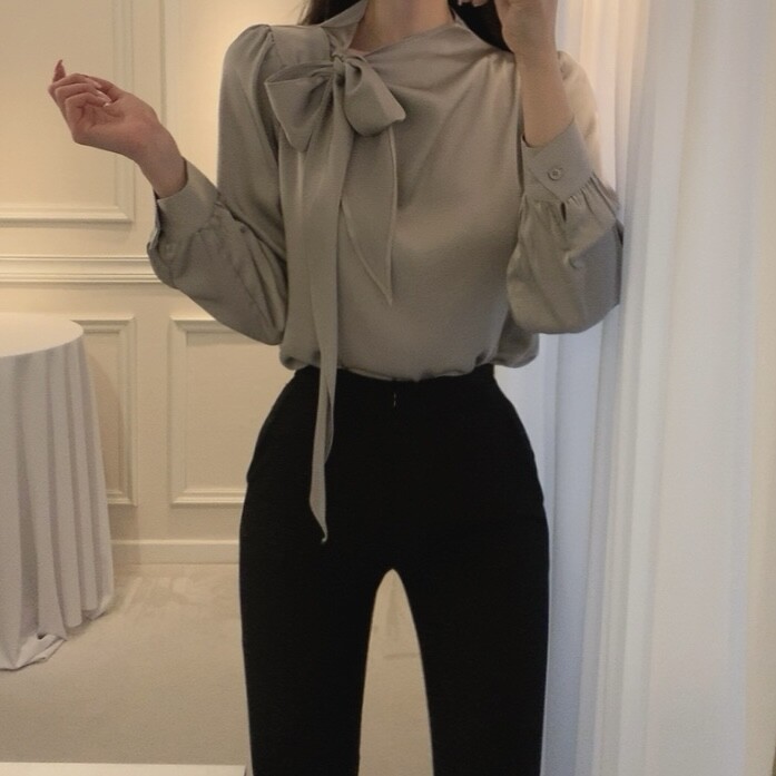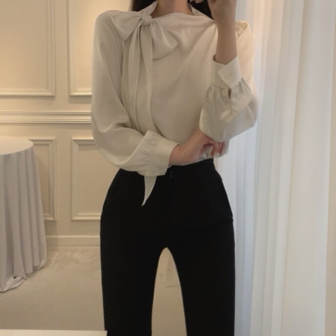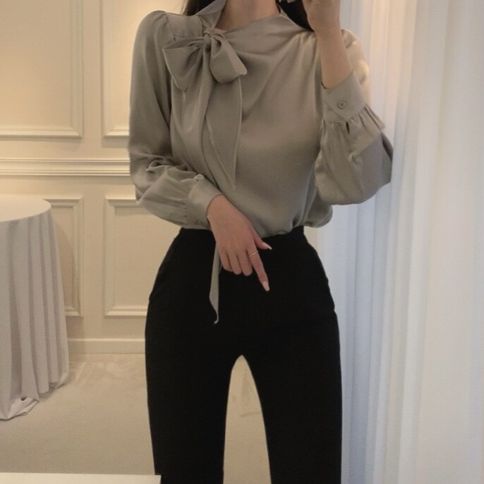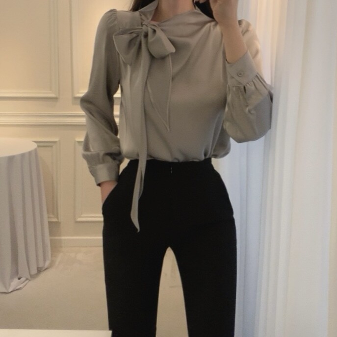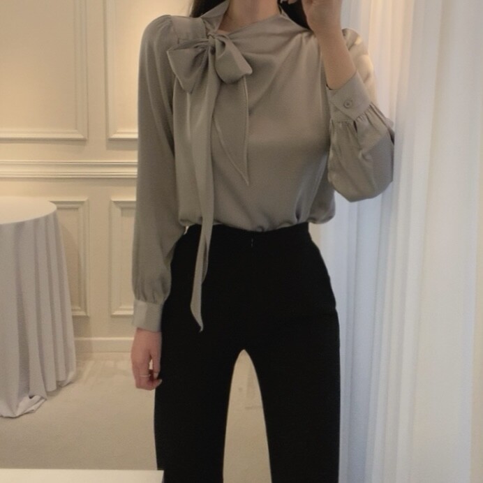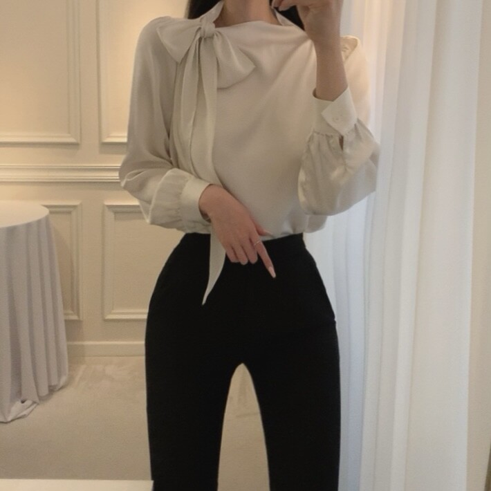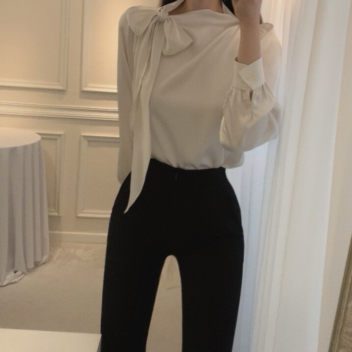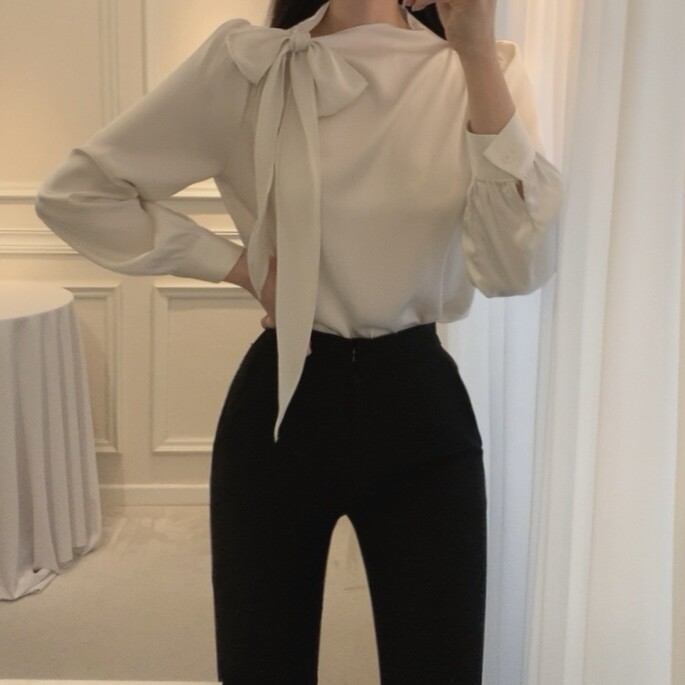 반목 리본 스카프 타이 새틴 실키 블라우스 (하객룩 결혼식 오피스룩)