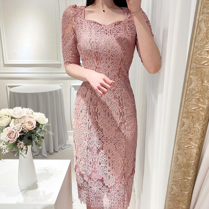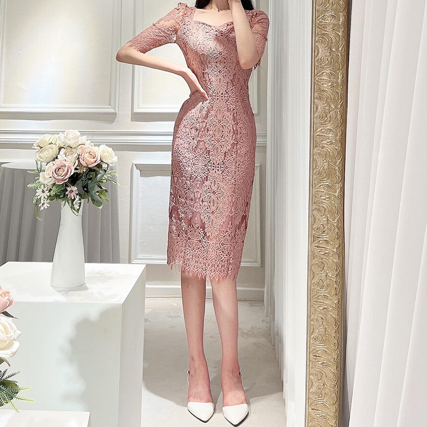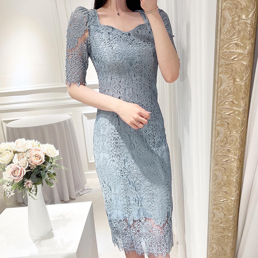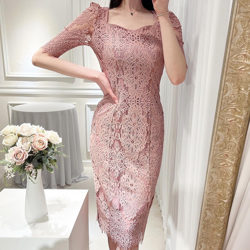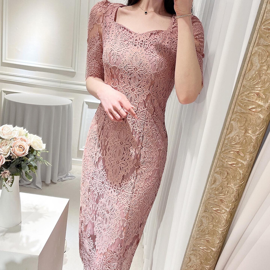 [원가이하 세일*당일출고] 로맨틱 고급 레이스 하트넥 슬림 에이치 원피스 (하객룩 파티룩 럭셔리룩)