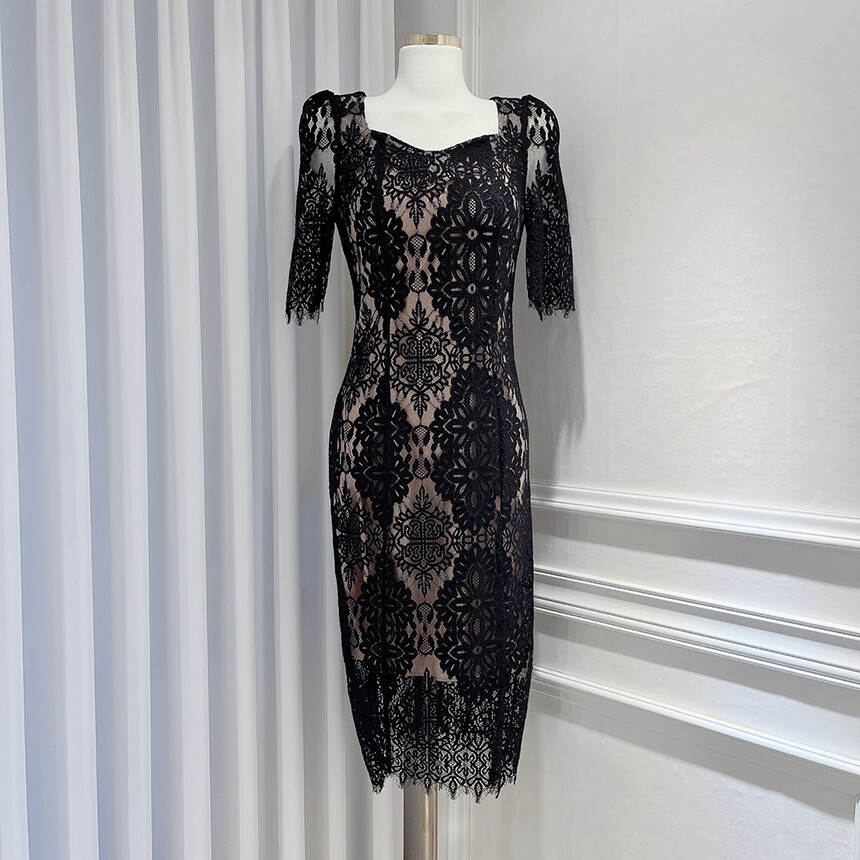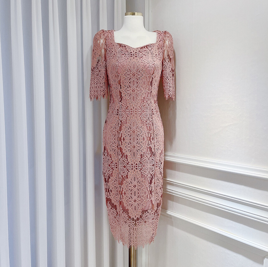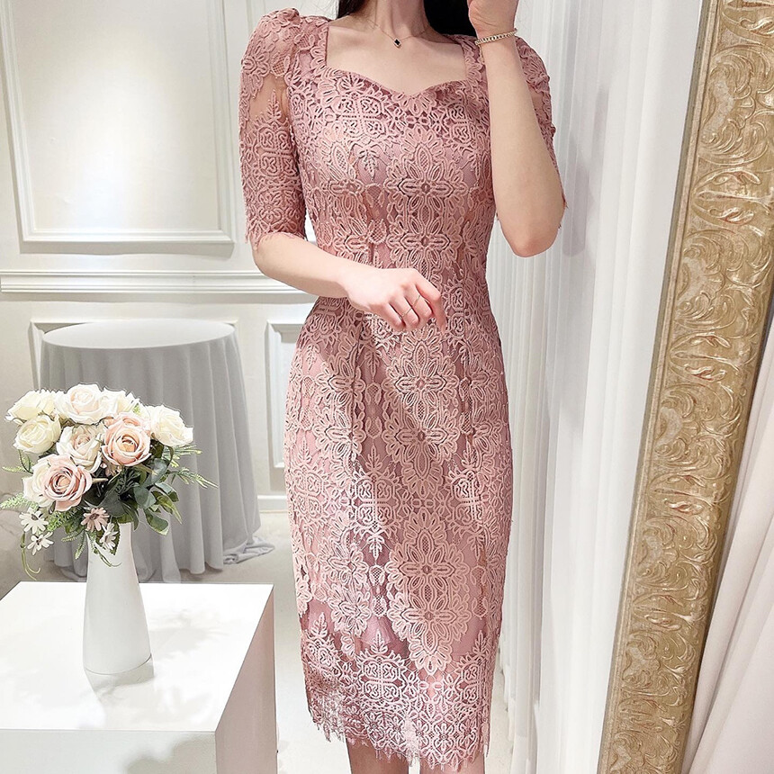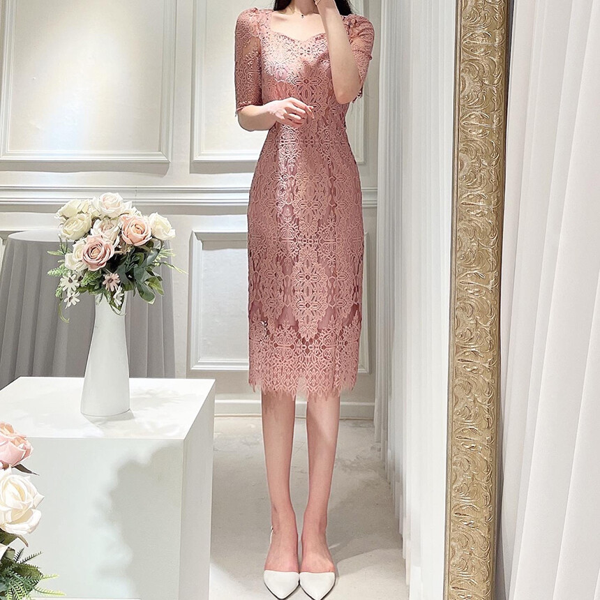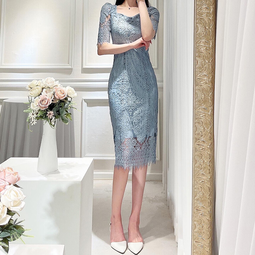 [원가이하 세일*당일출고] 로맨틱 고급 레이스 하트넥 슬림 에이치 원피스 (하객룩 파티룩 럭셔리룩)