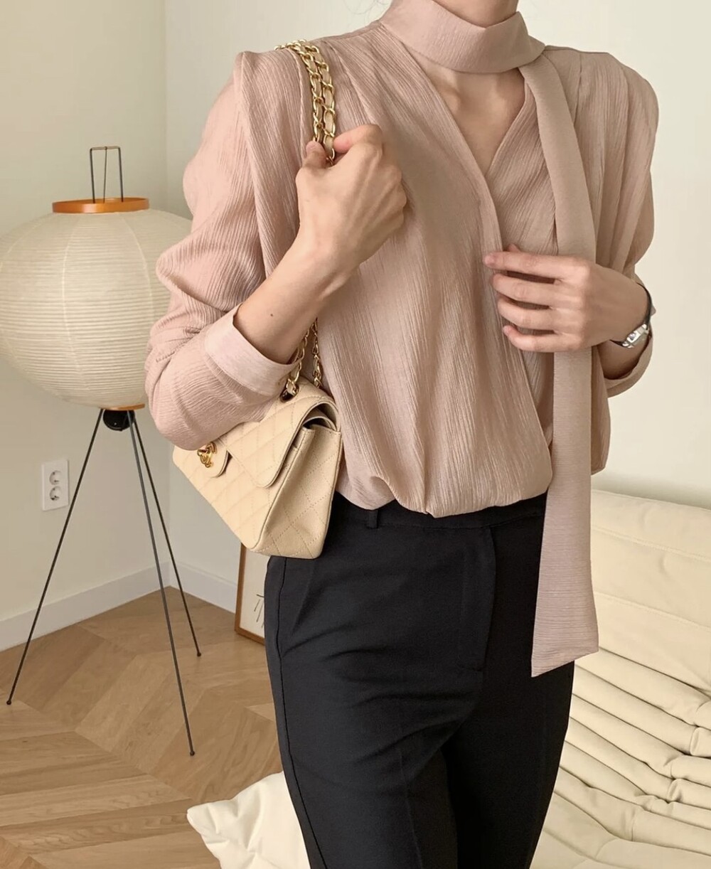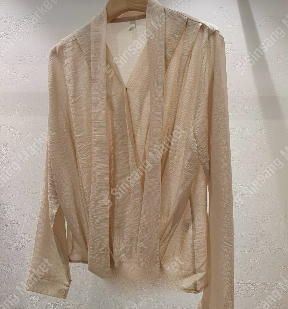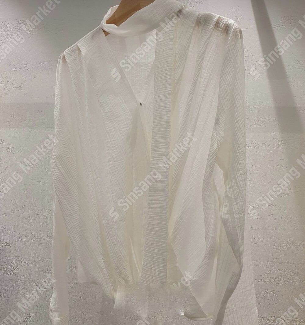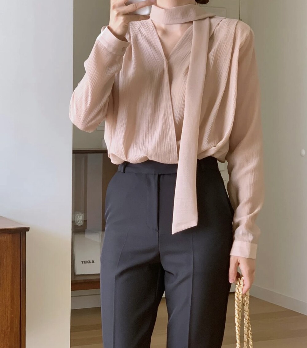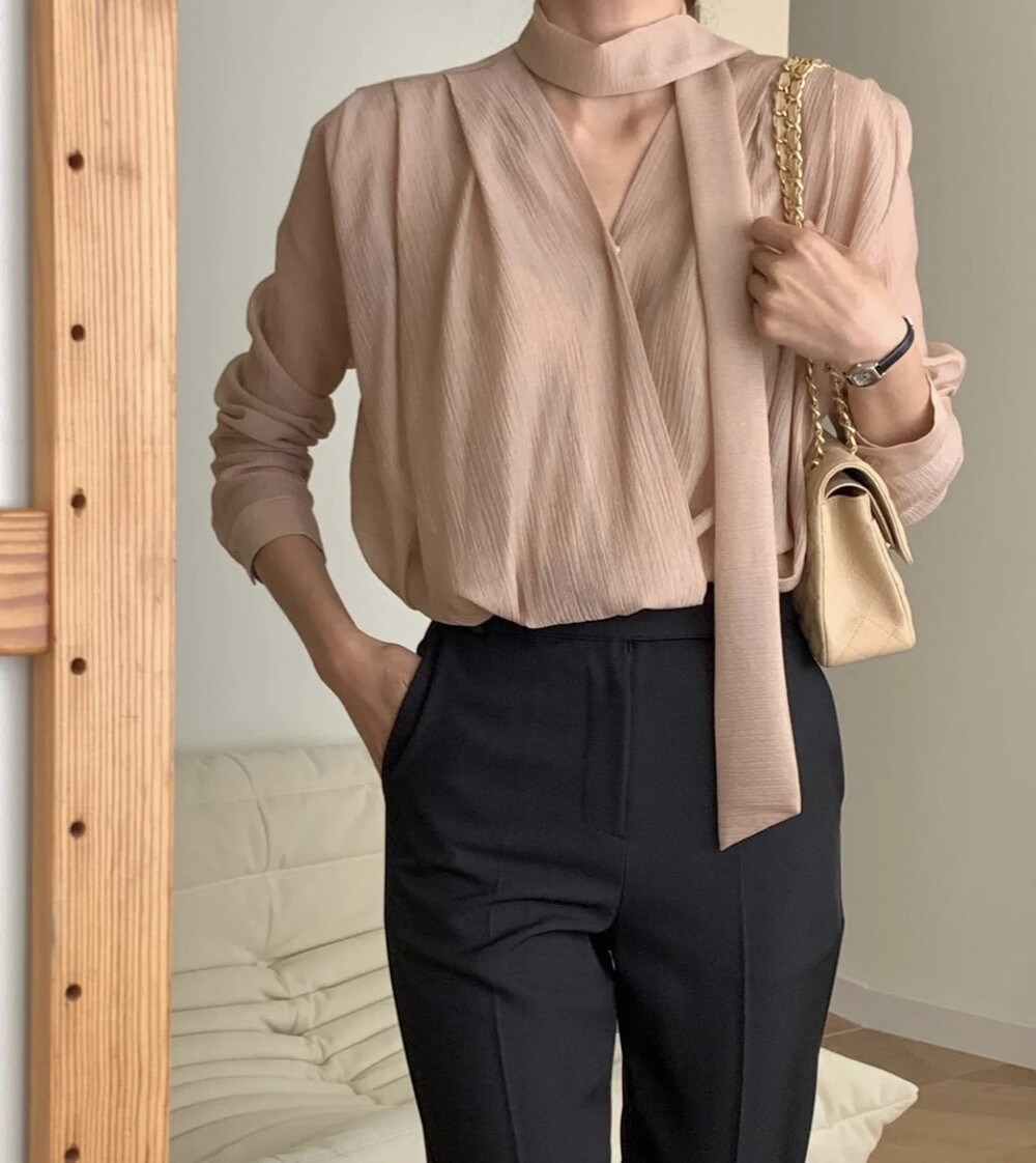 무드 랩스타일 셔링 스카프 타이 블라우스 (하객룩 결혼식 오피스룩)