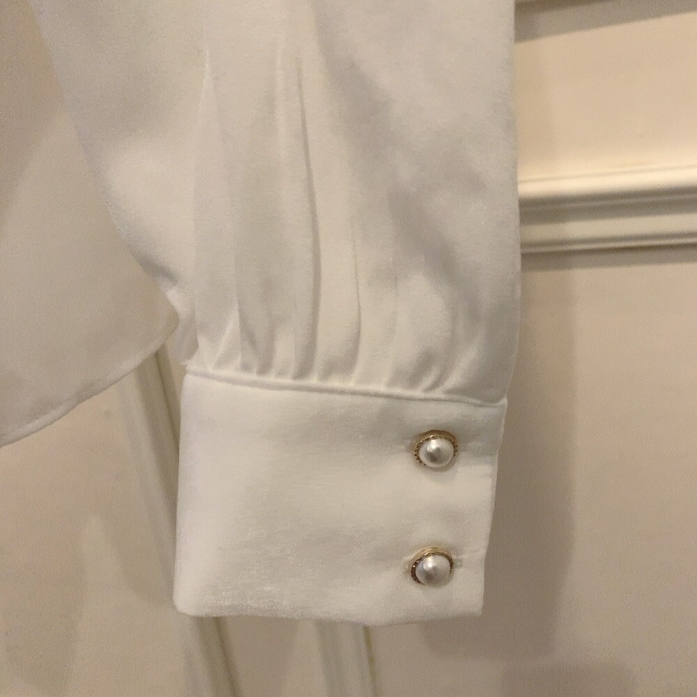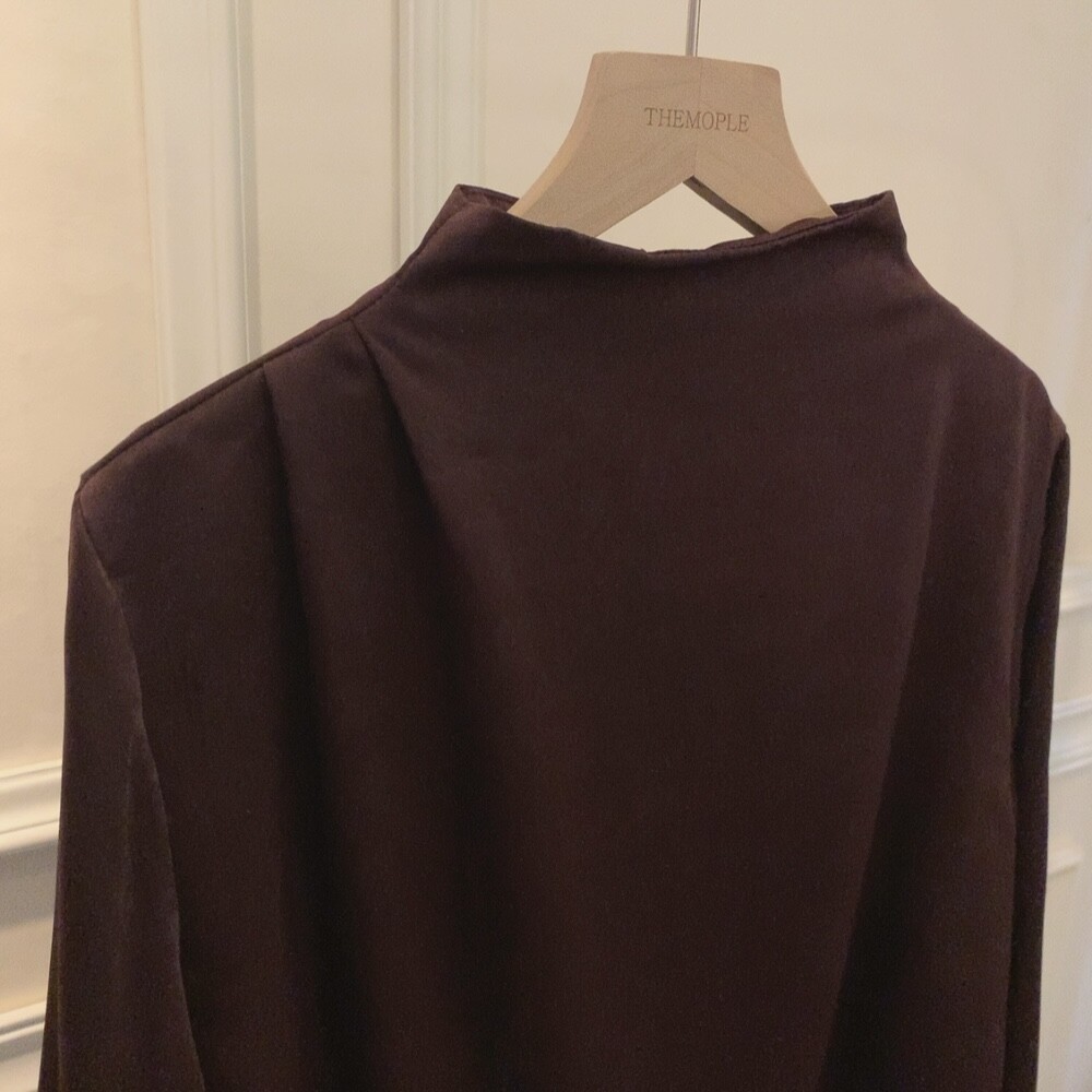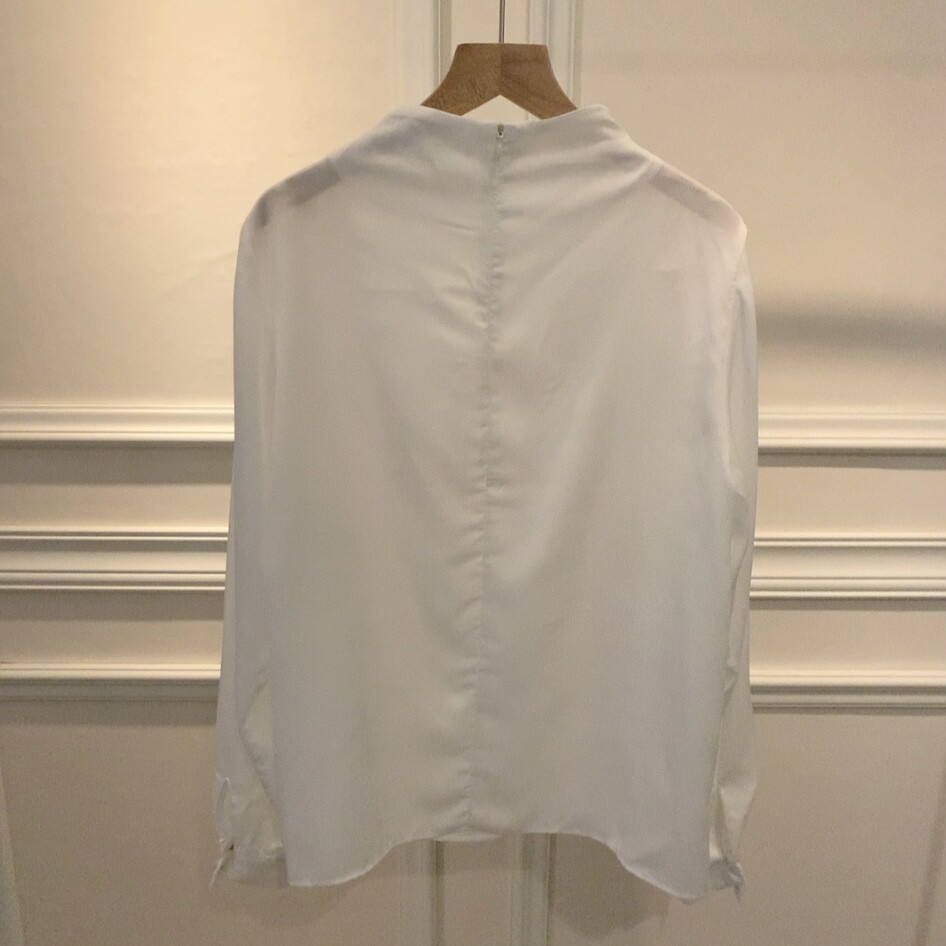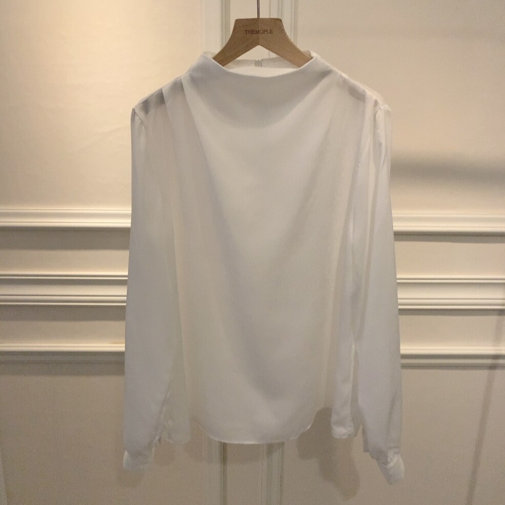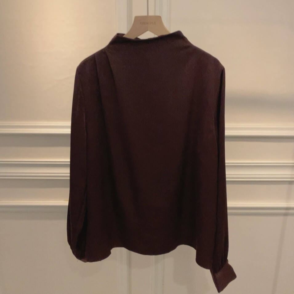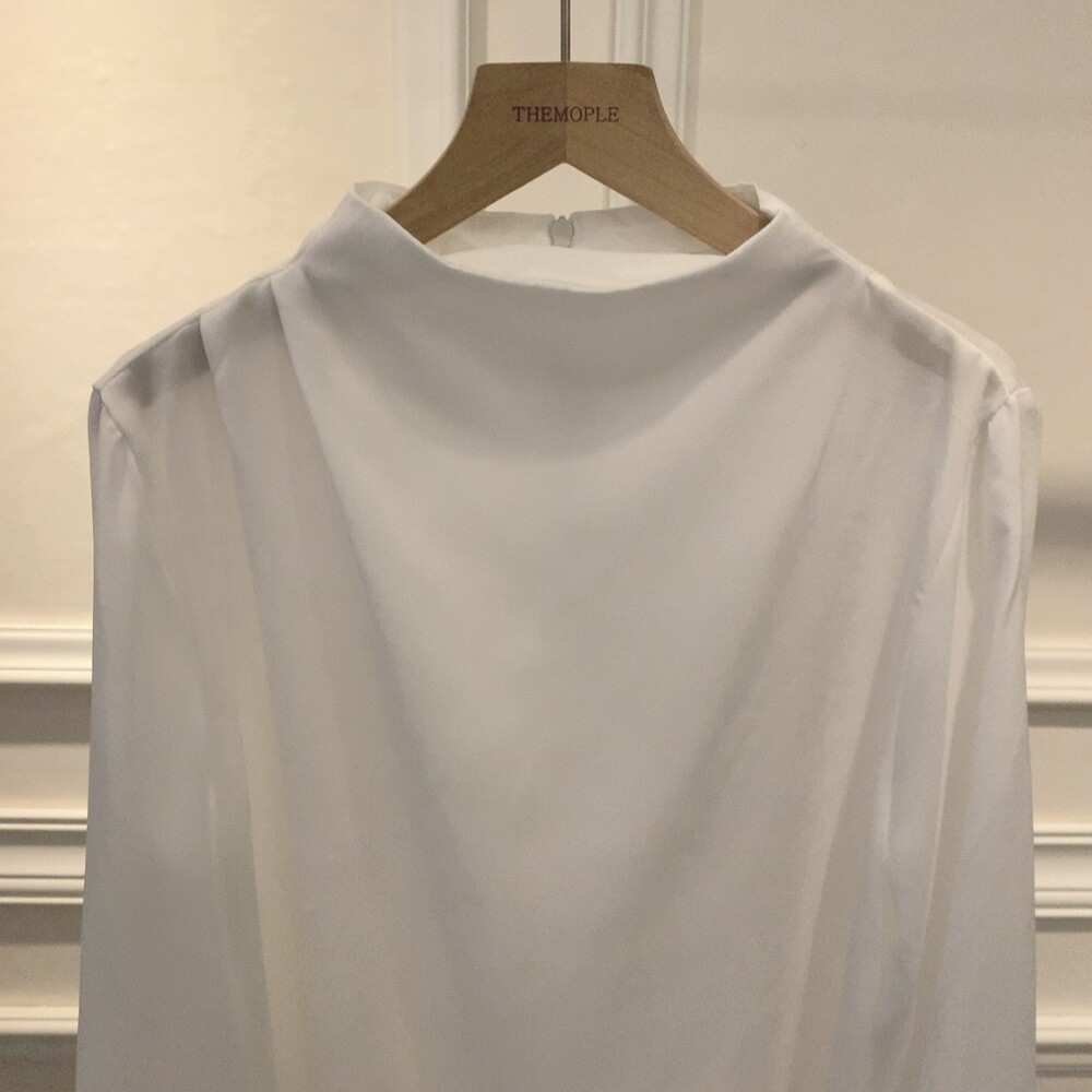 겨울 반하이넥 글로시 고급 광택 언발란스 셔링 진주 단추 소매 블라우스 (하객룩 오피스룩 럭셔리룩)