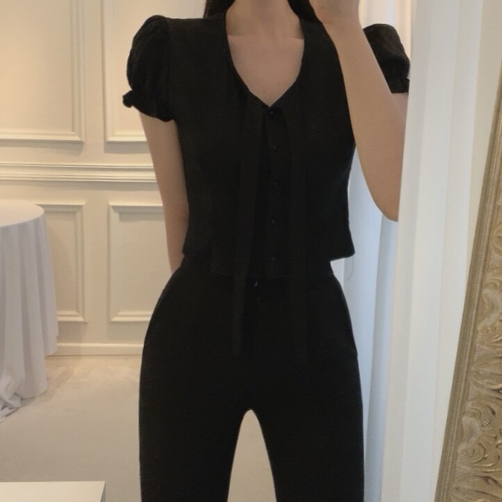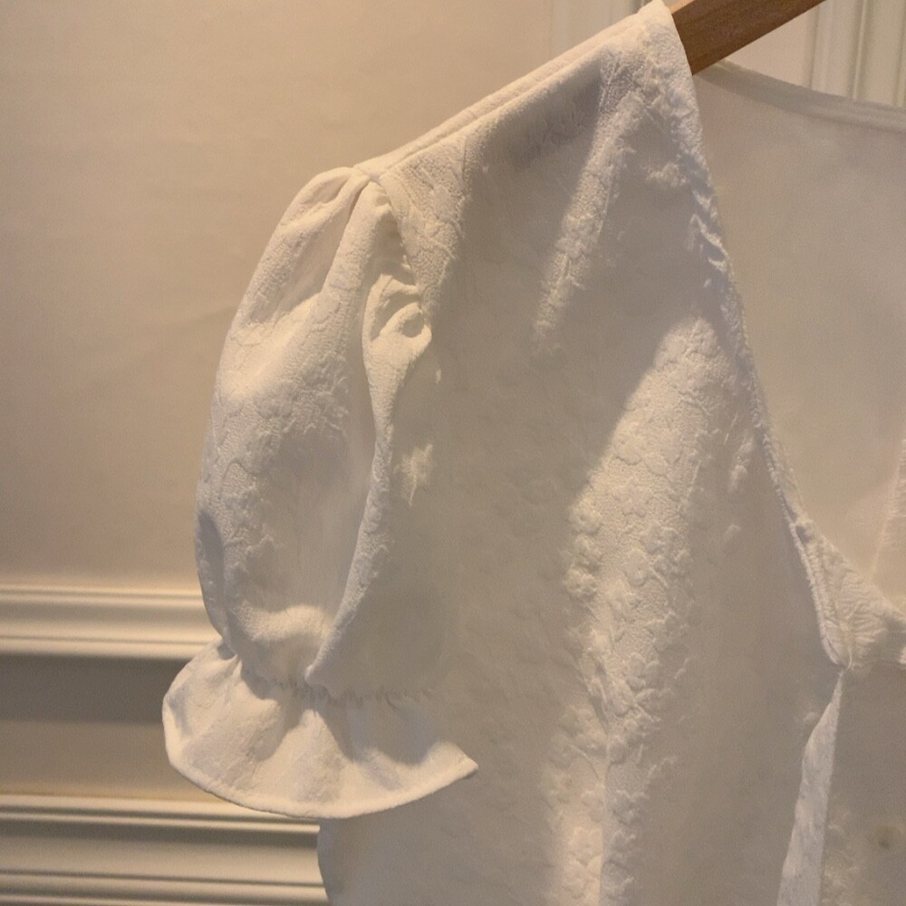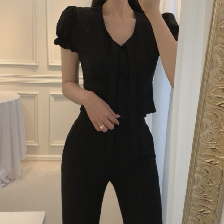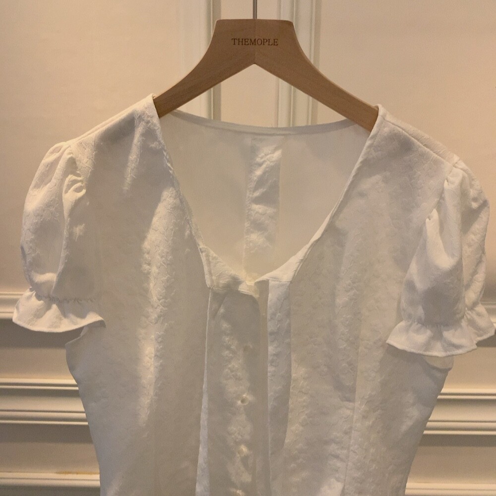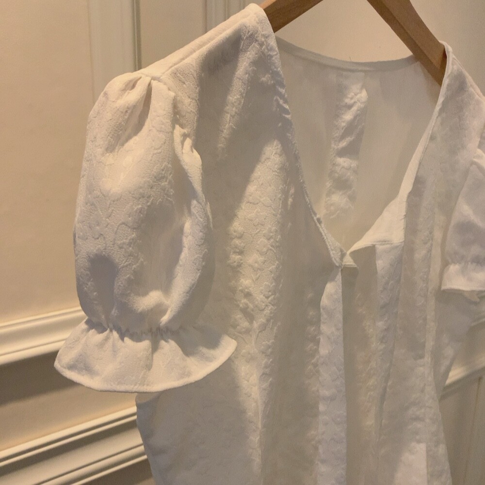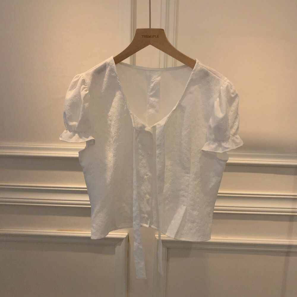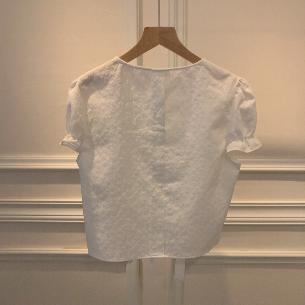 자가드 타이 퍼프 반팔 소매 블라우스 (하객룩 데이트룩 페미닌룩)