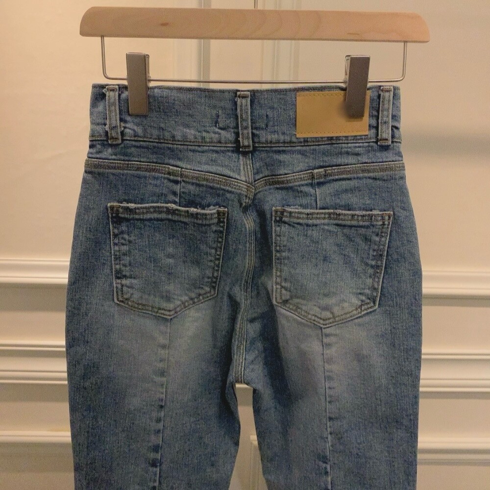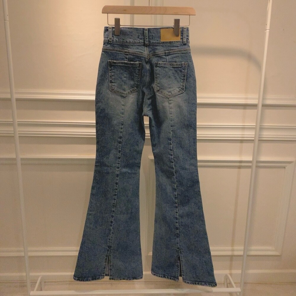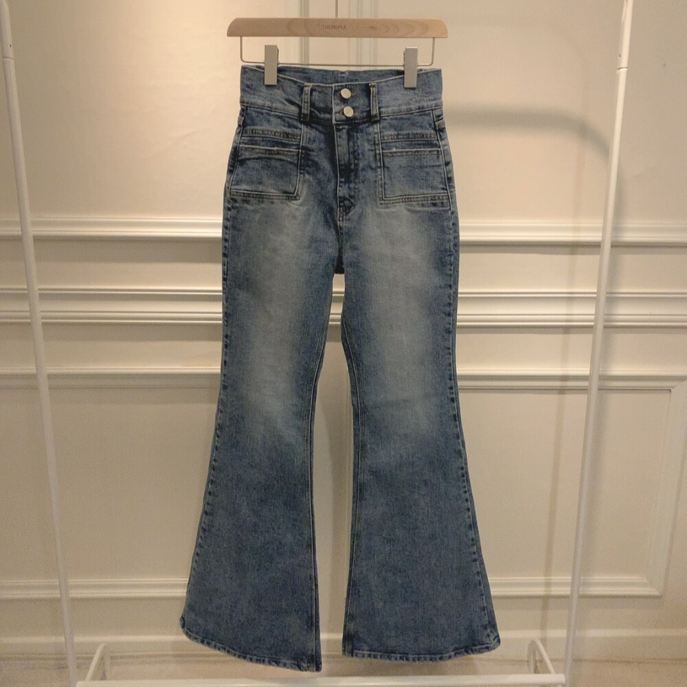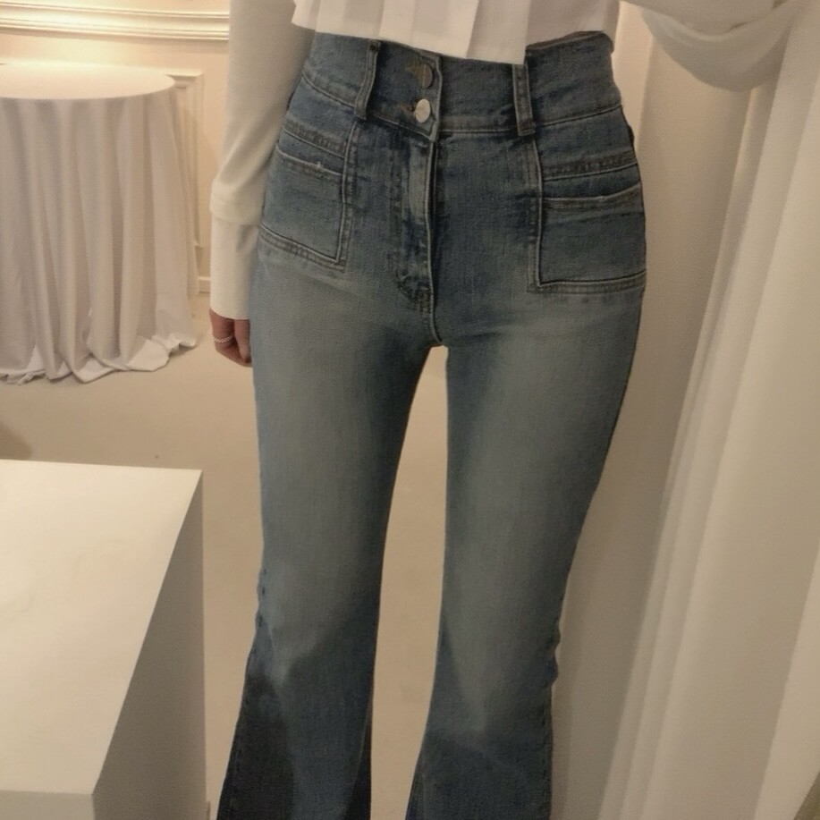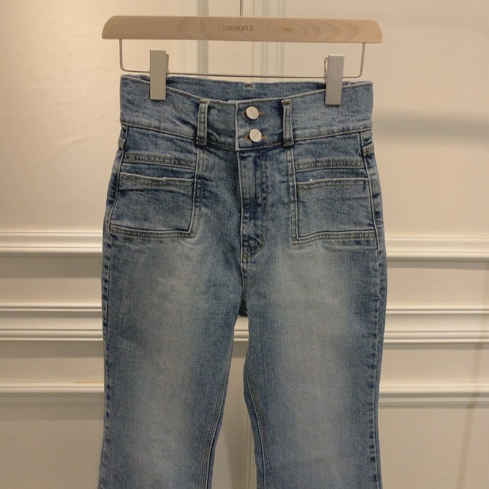 [고퀄리티] 투버튼 포켓 하이웨스트 슬림 세미부츠컷 슬릿 데님 청바지