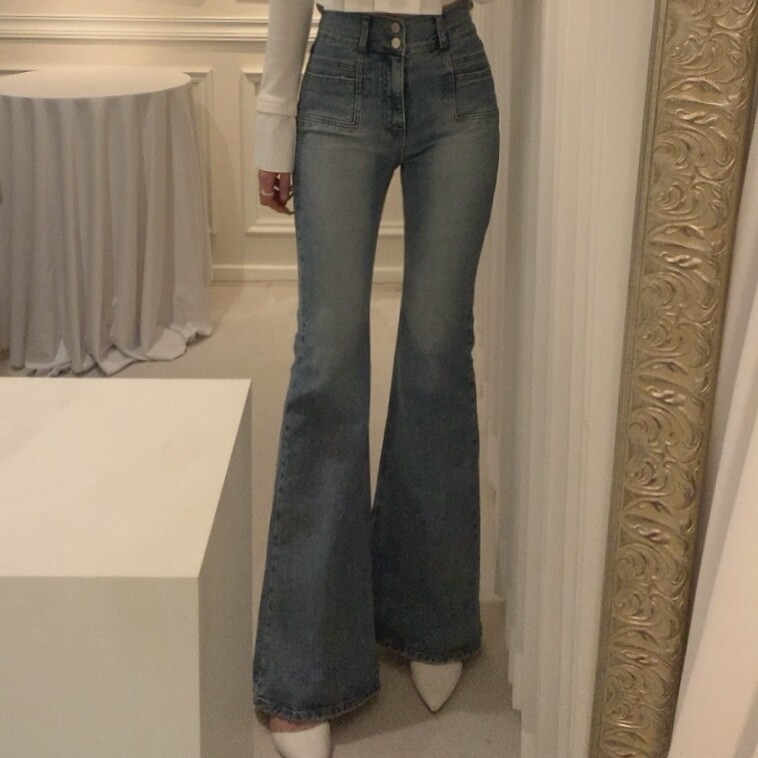 밑단으로 갈수록 퍼지는 세미부츠 라인이