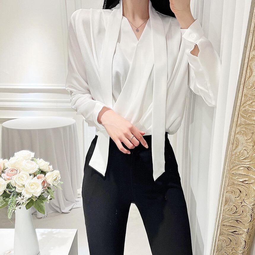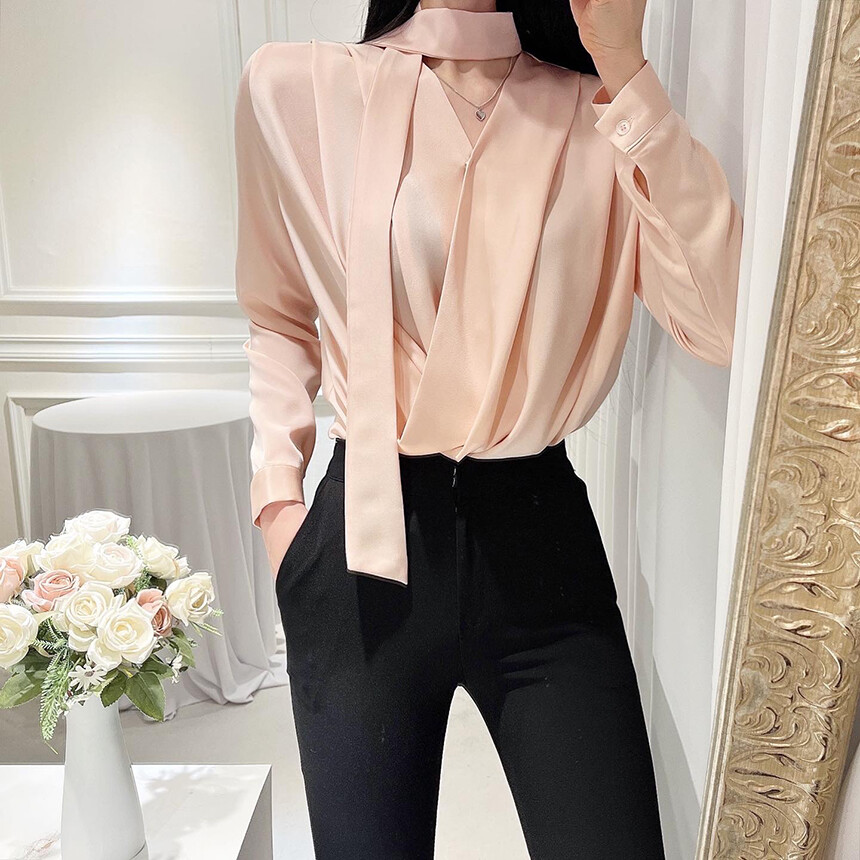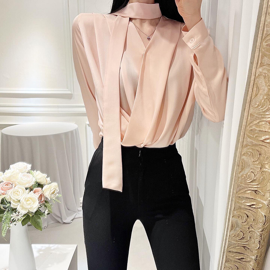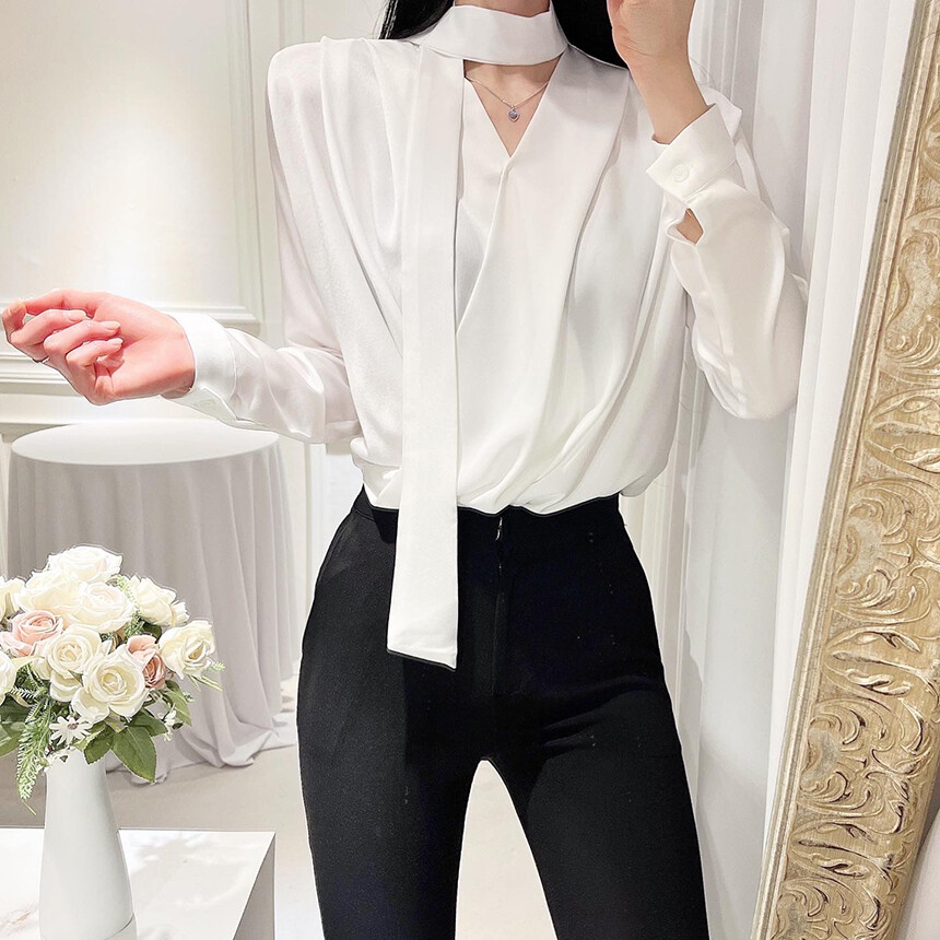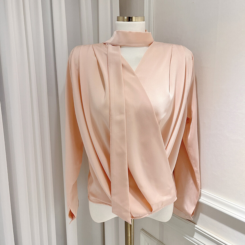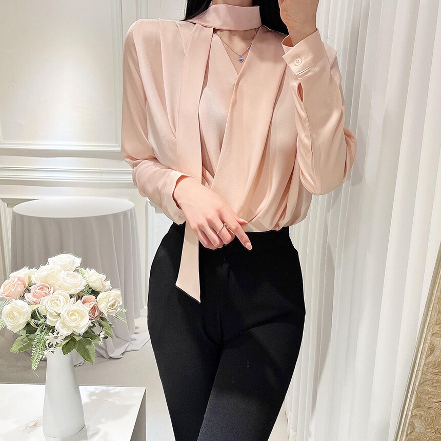 타이 스카프 셔링 주름 랩스타일 블라우스 (하객룩 데이트룩 오피스룩)