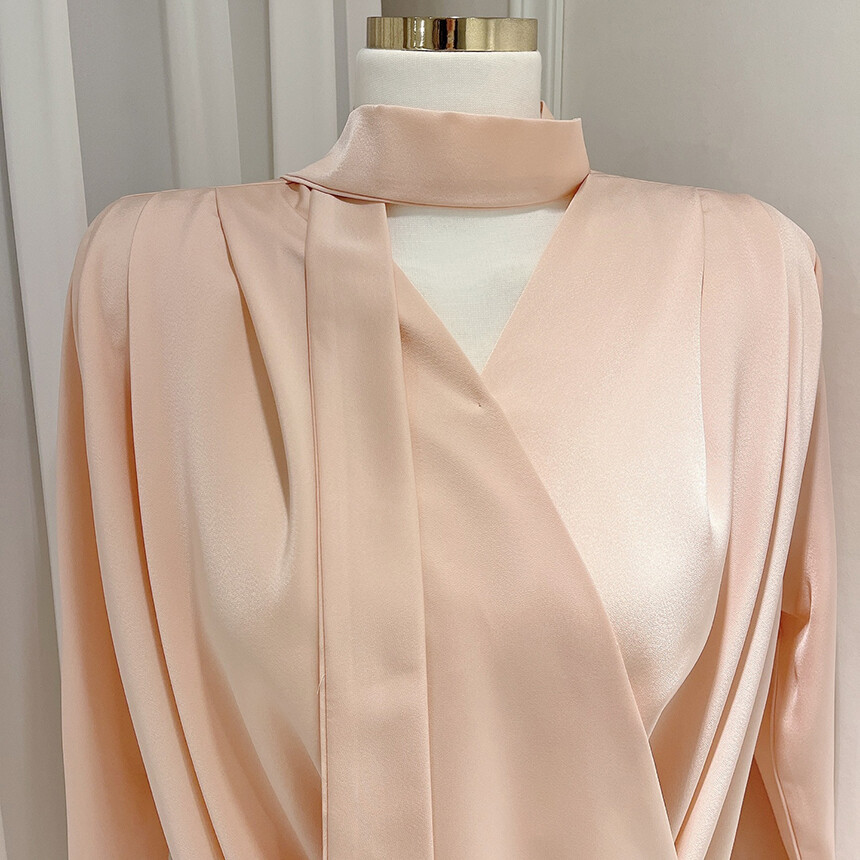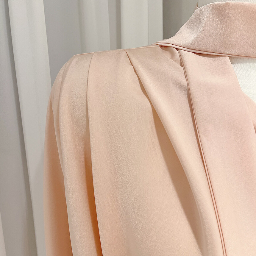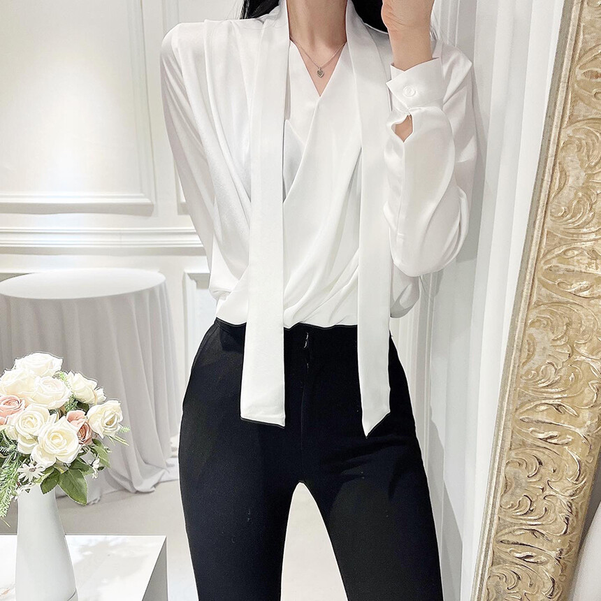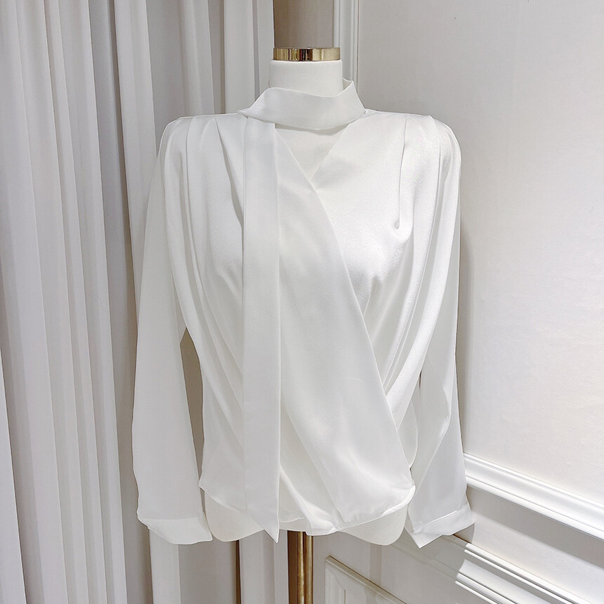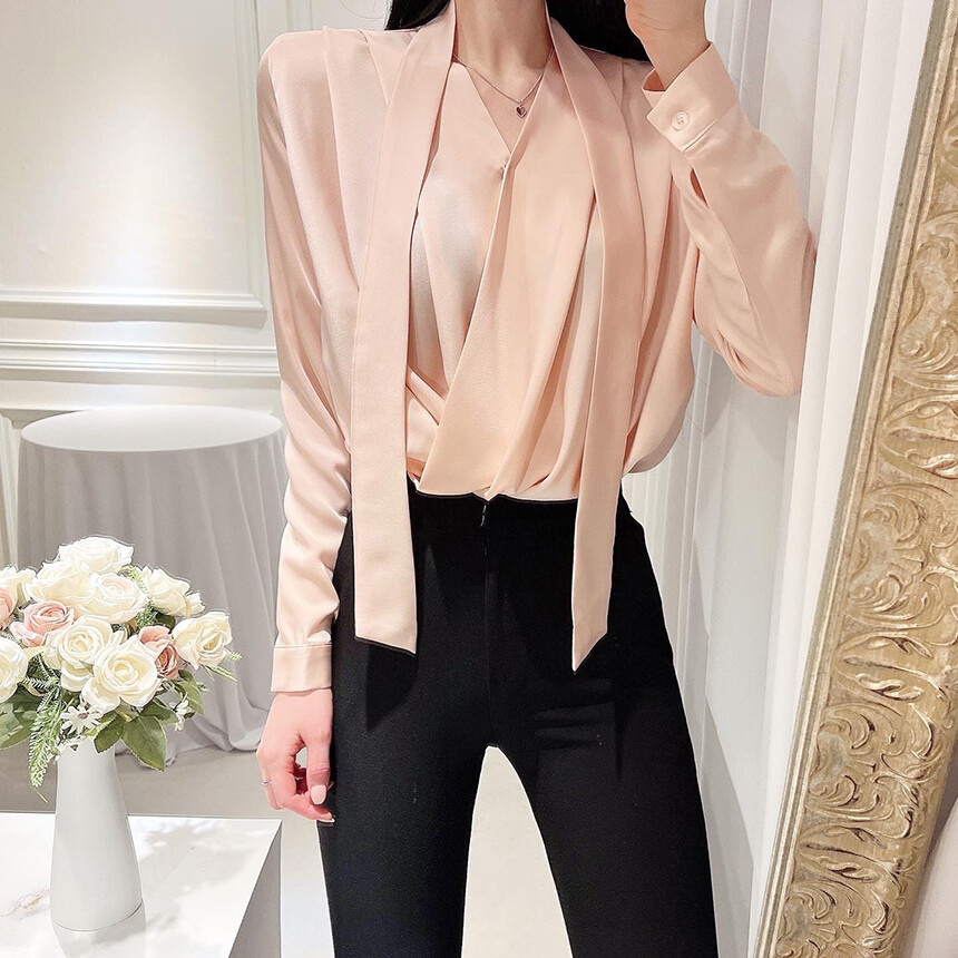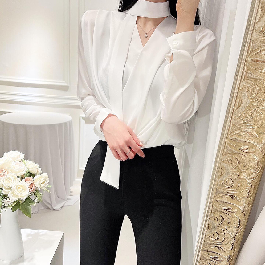 타이 스카프 셔링 주름 랩스타일 블라우스 (하객룩 데이트룩 오피스룩)