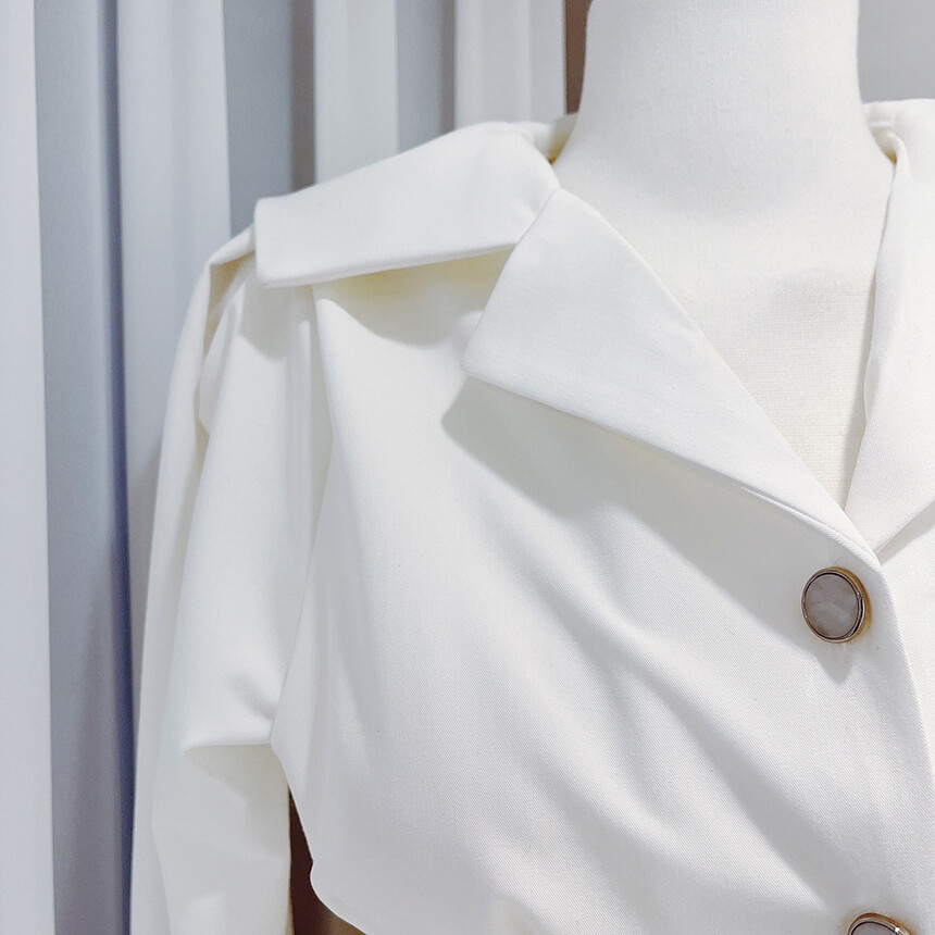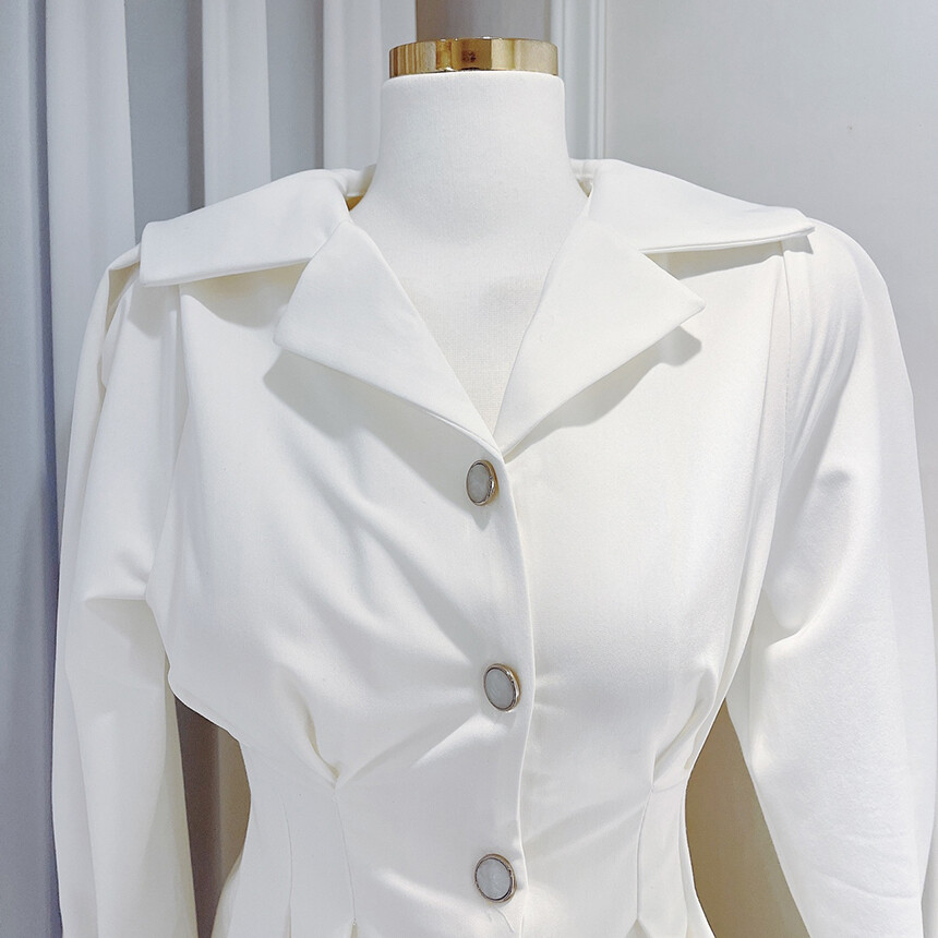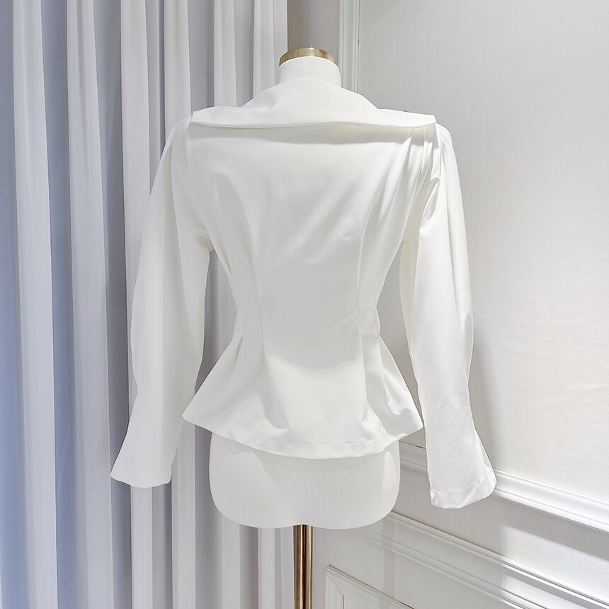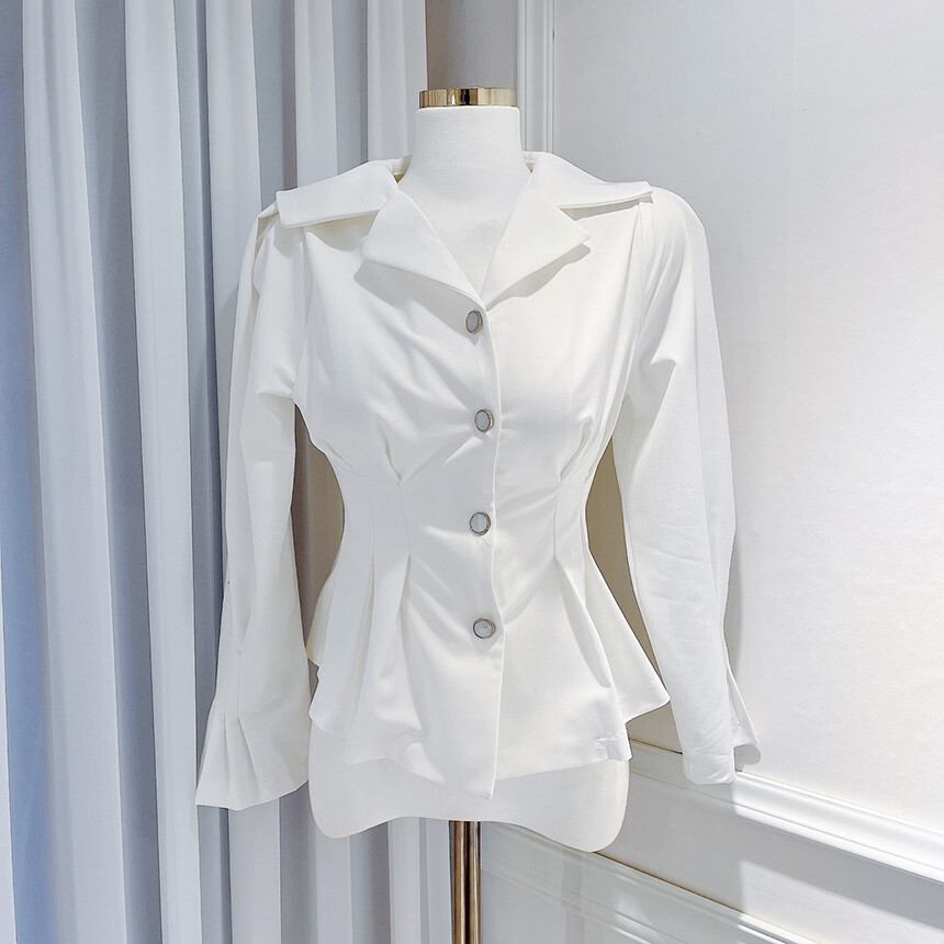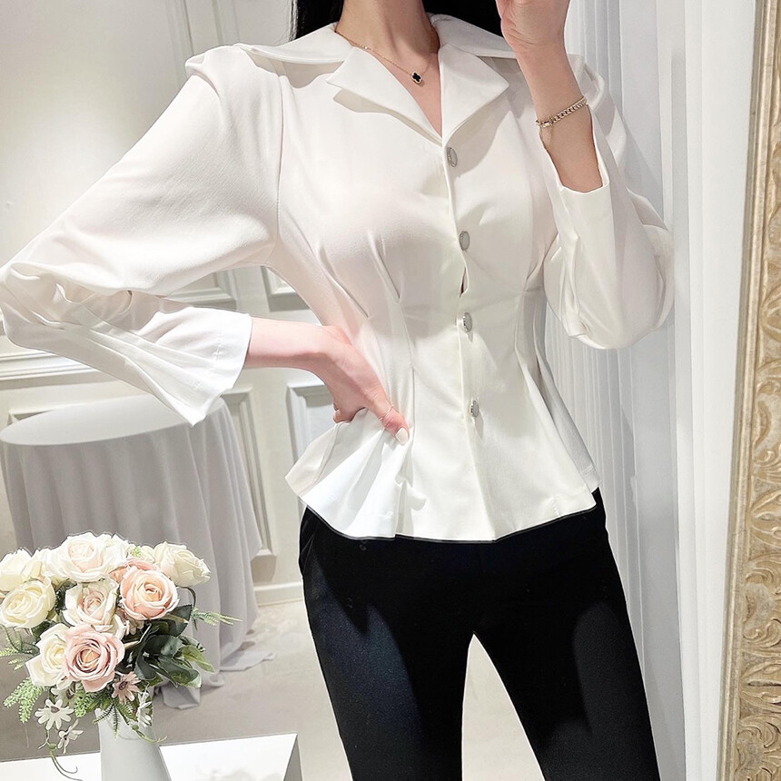 핀턱 카라 퍼프 소매 슬림핏 단추 블라우스 (하객룩 청담룩 럭셔리룩)