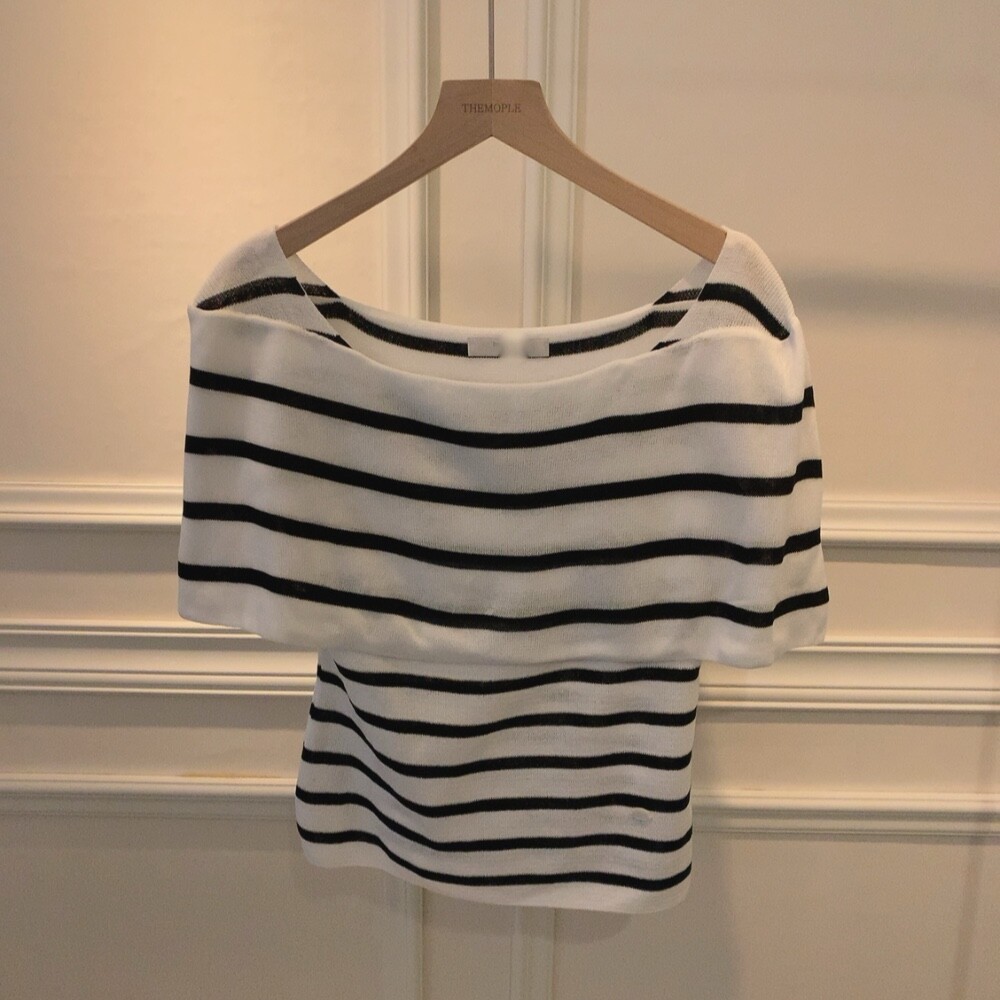 케이프 언발란스 어깨 트임 오프숄더 여름 니트