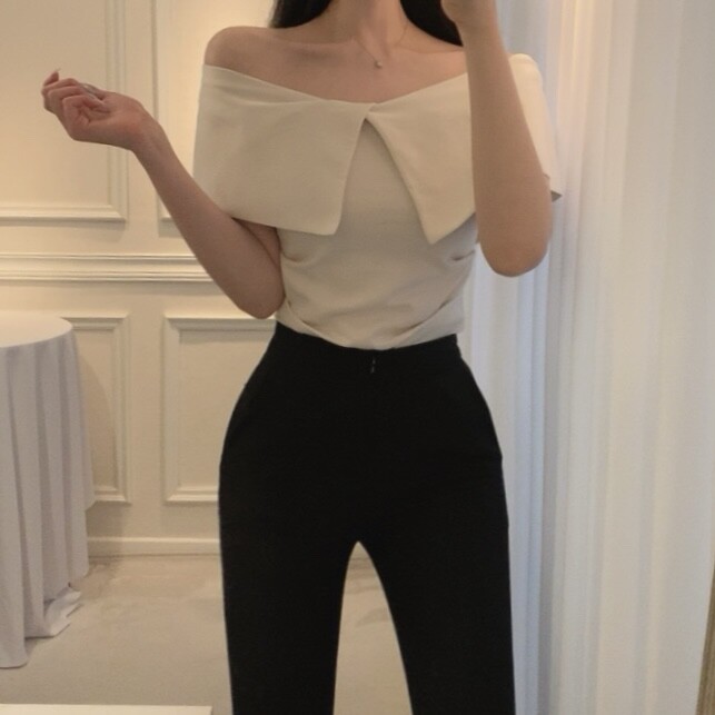 페미닌한 무드 가득한 블라우스 티셔츠에요 :)