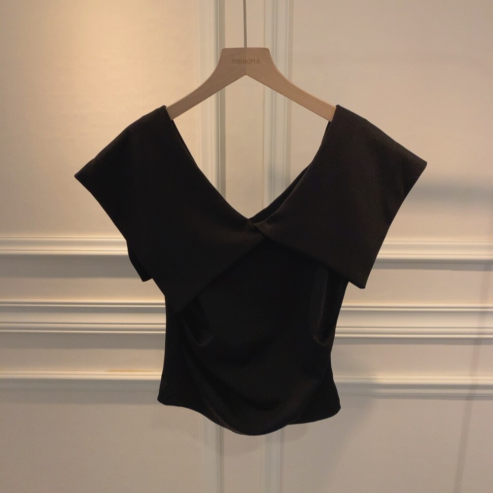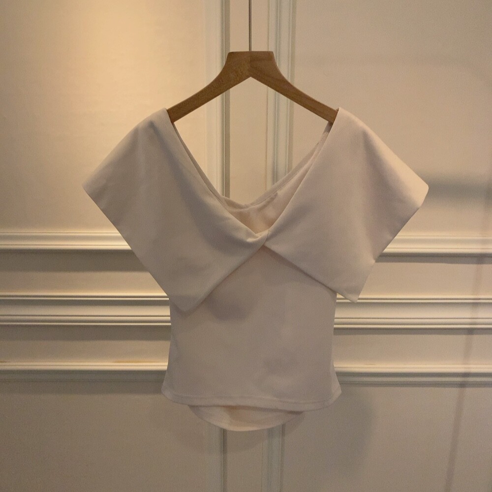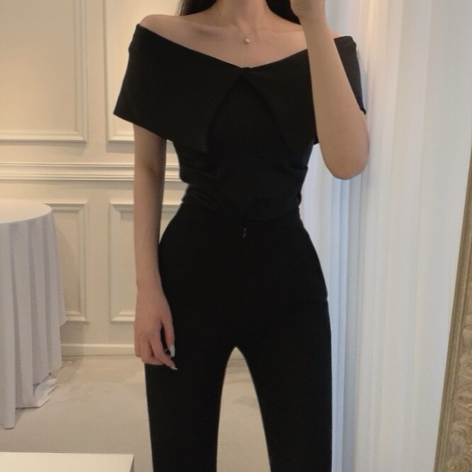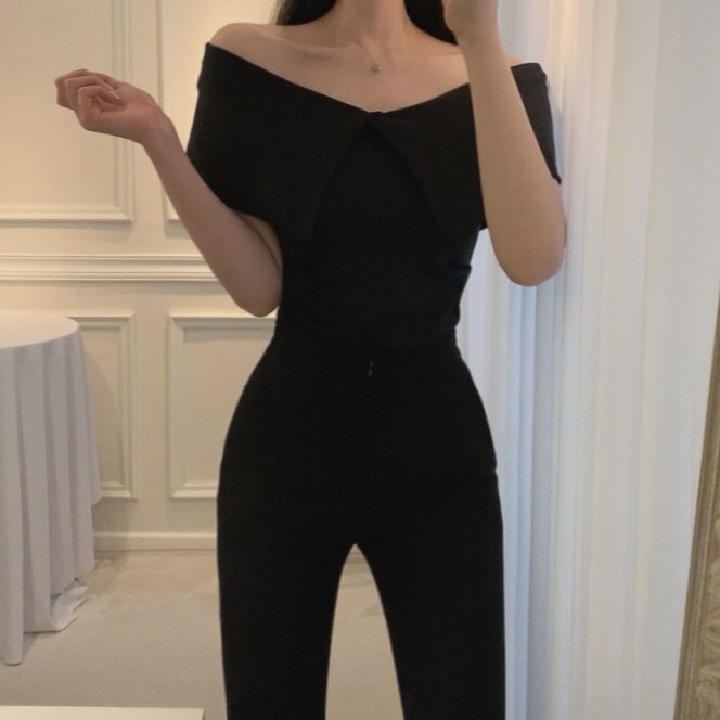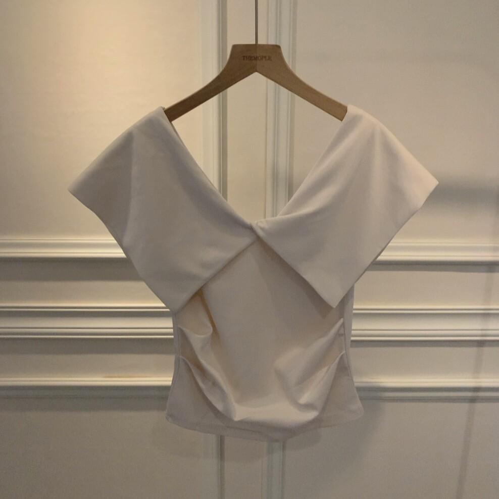와이드 빅카라 브이넥 오프숄더 쿠션 나시 블라우스