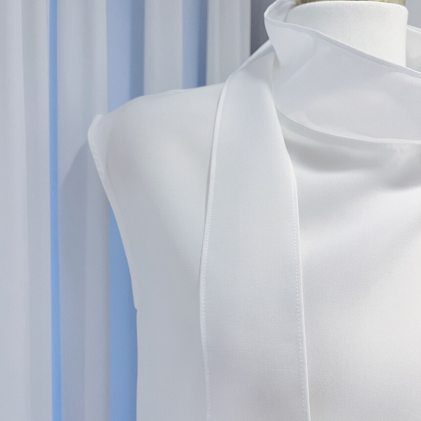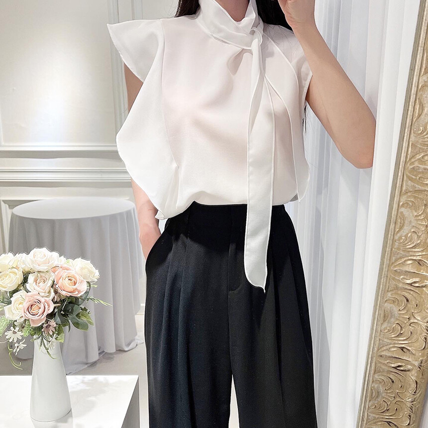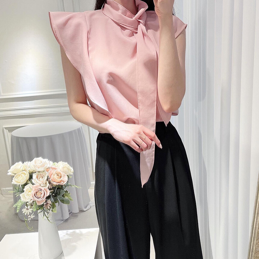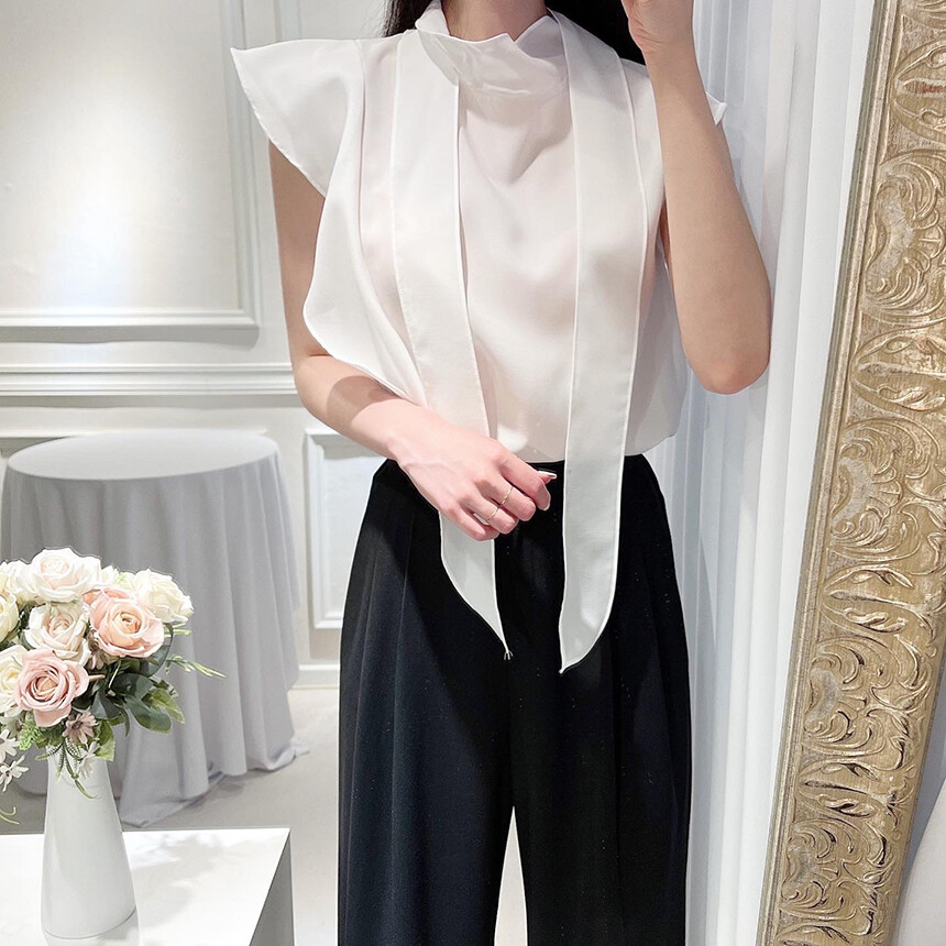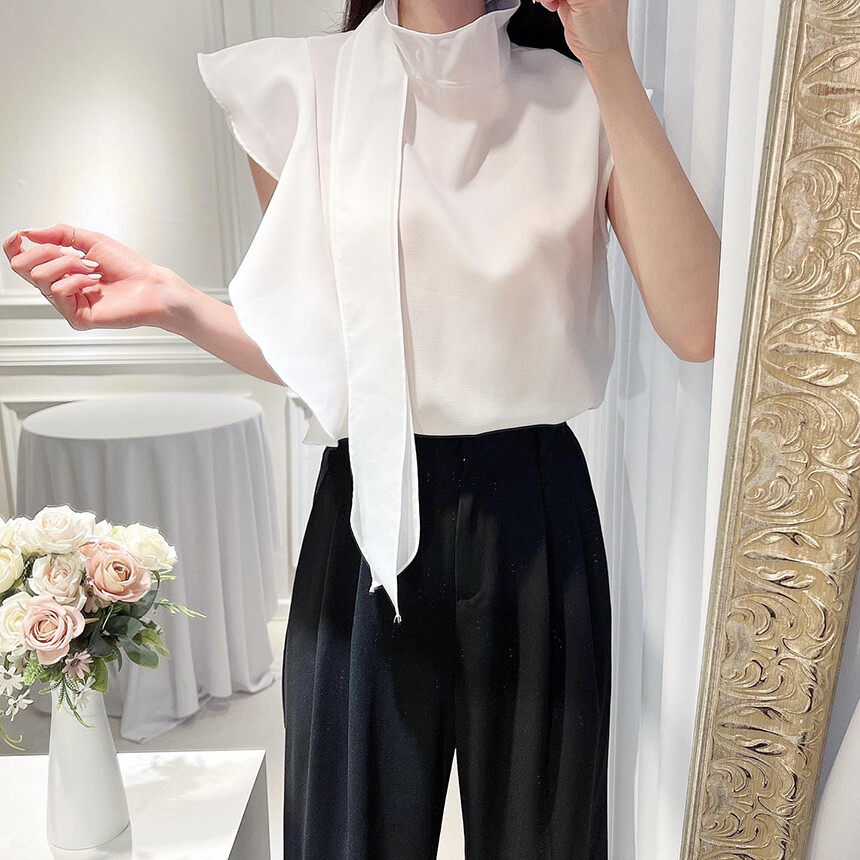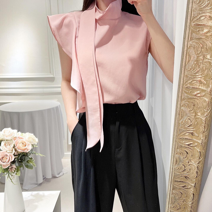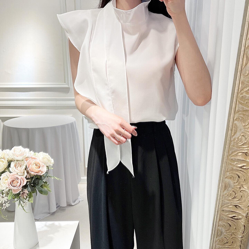 [원가이하 세일 SALE] 언발란스 프릴 하이넥 스카프 타이 블라우스 (하객룩 모임룩 데이트룩)