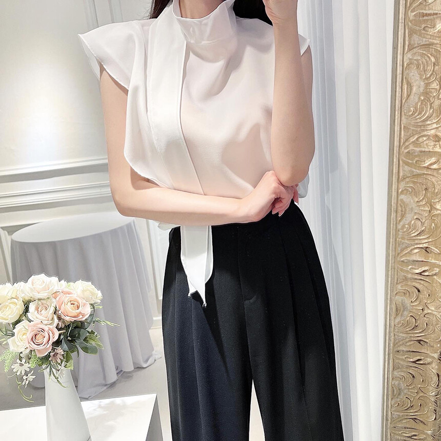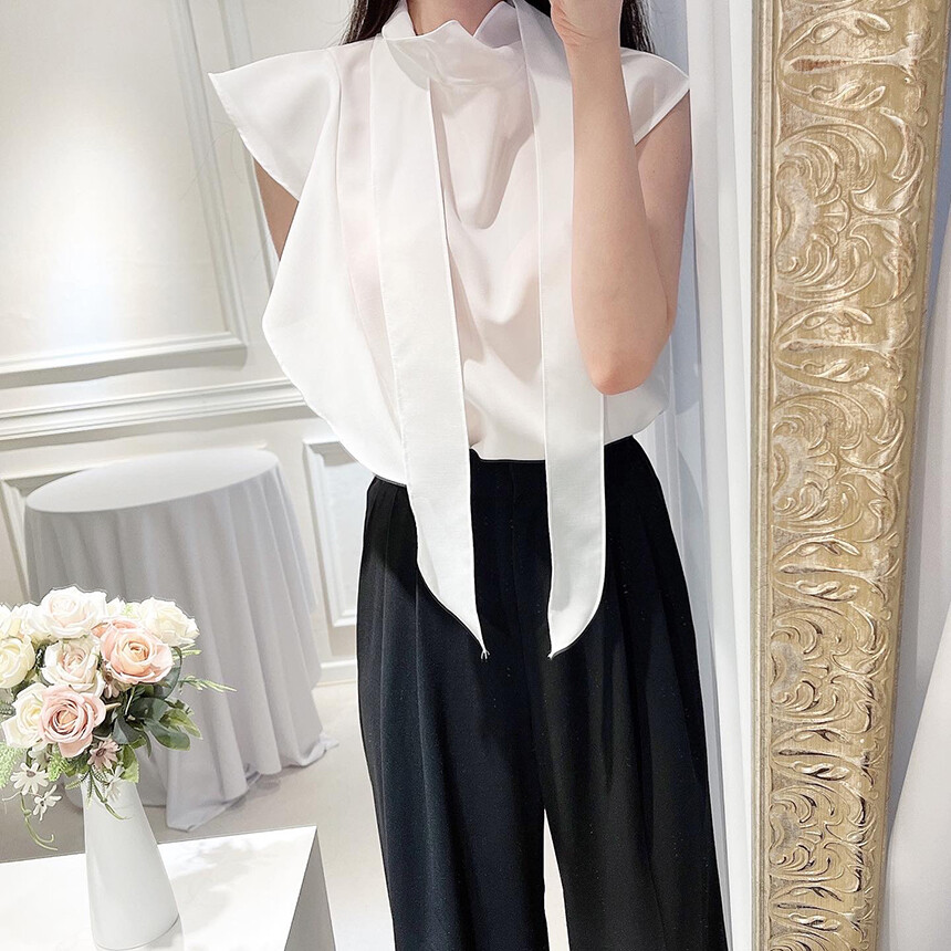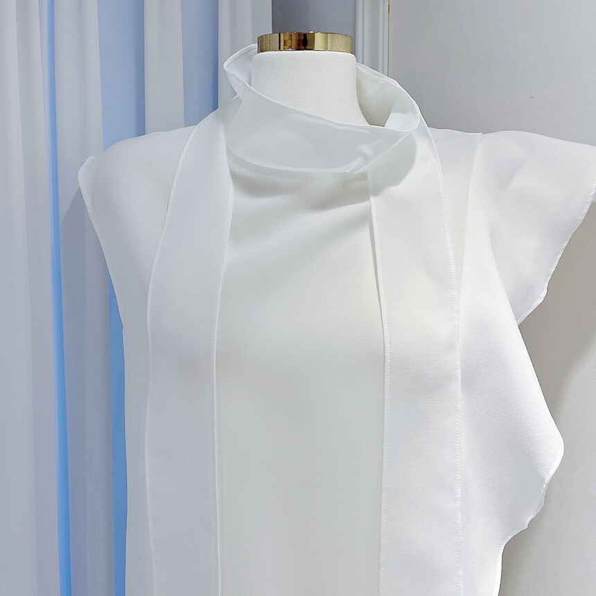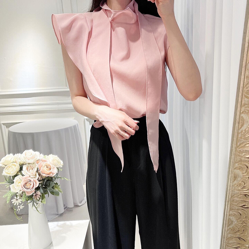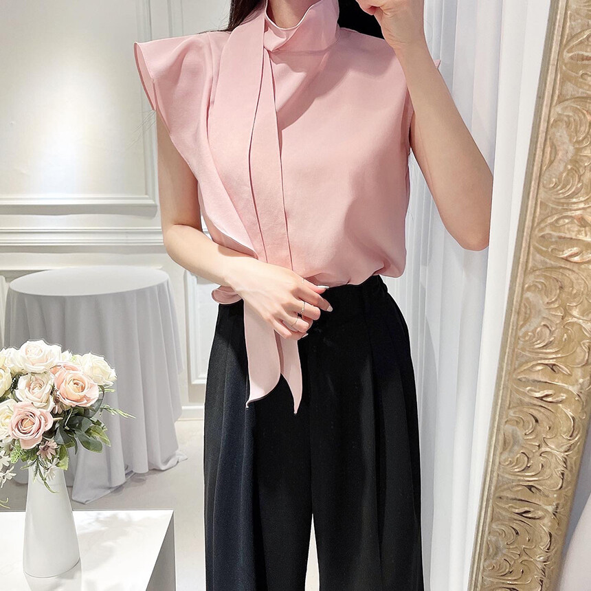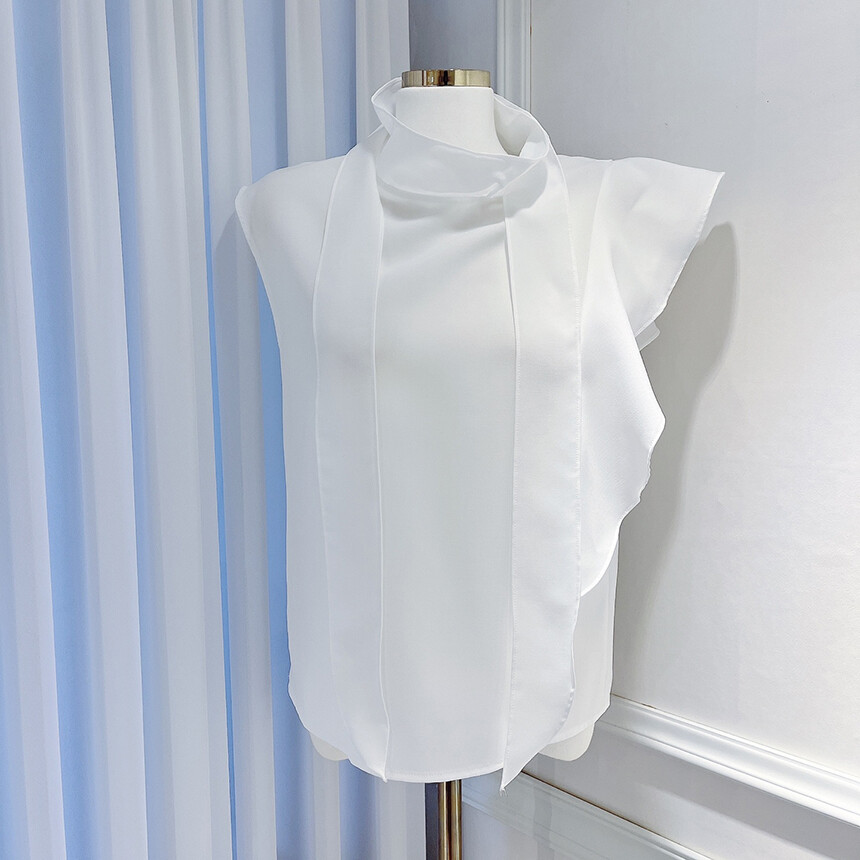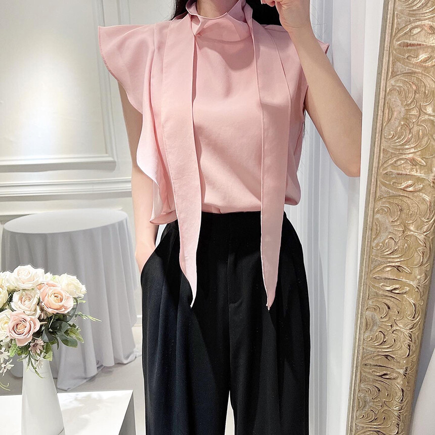 [원가이하 세일 SALE] 언발란스 프릴 하이넥 스카프 타이 블라우스 (하객룩 모임룩 데이트룩)