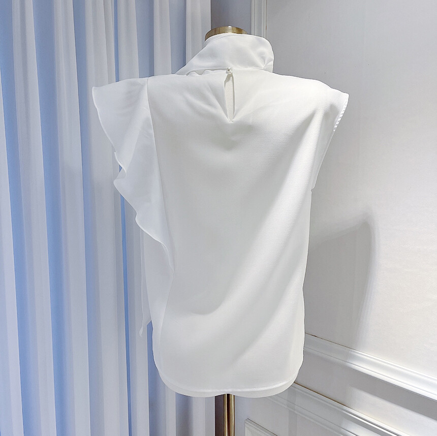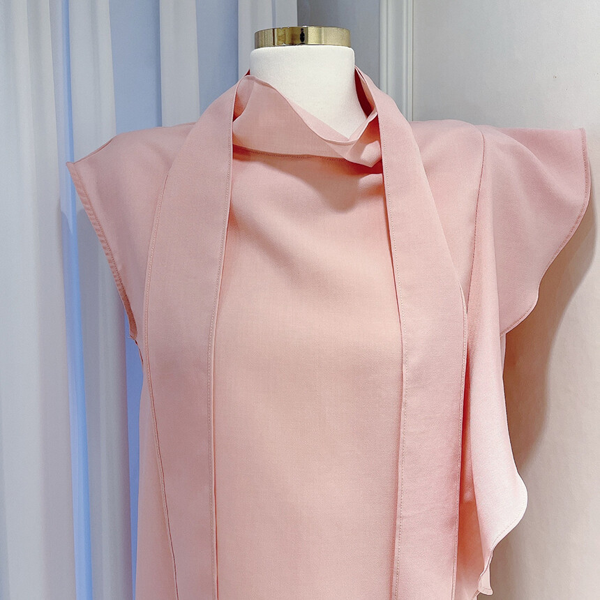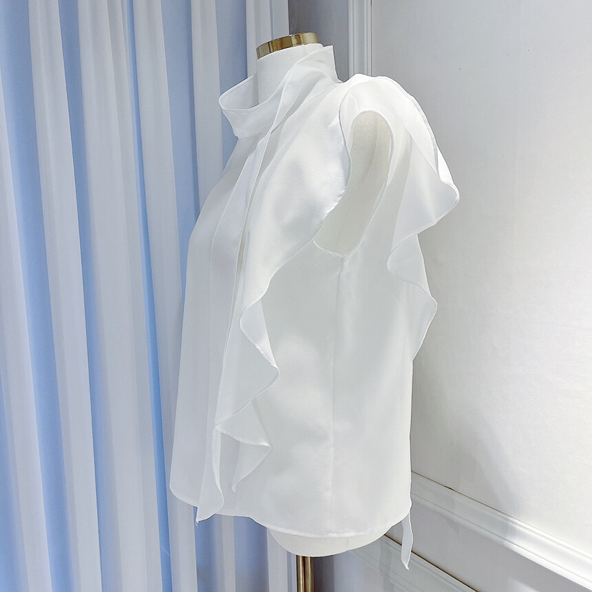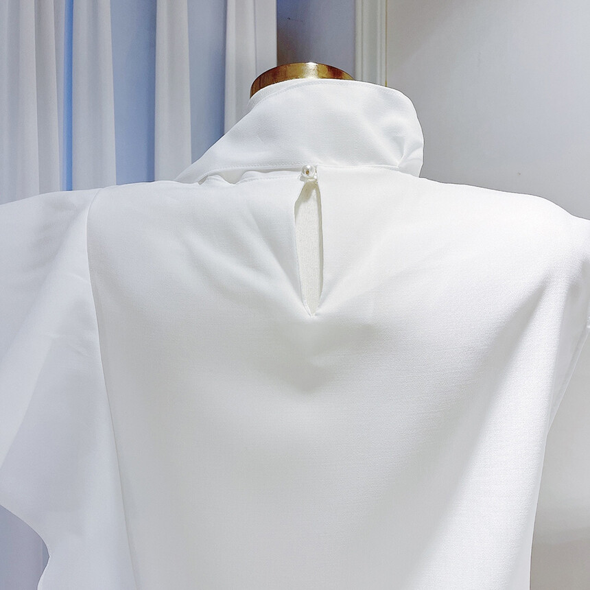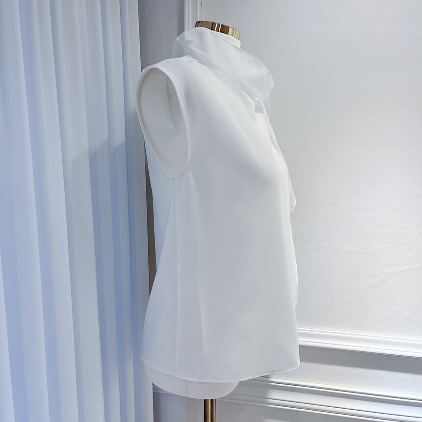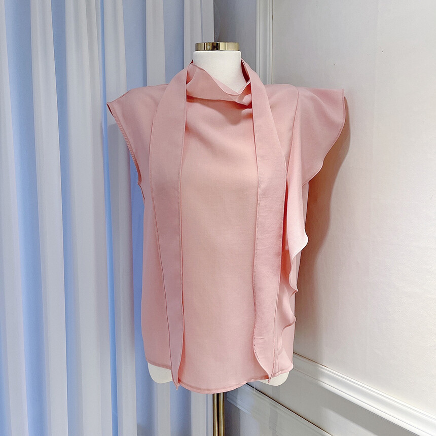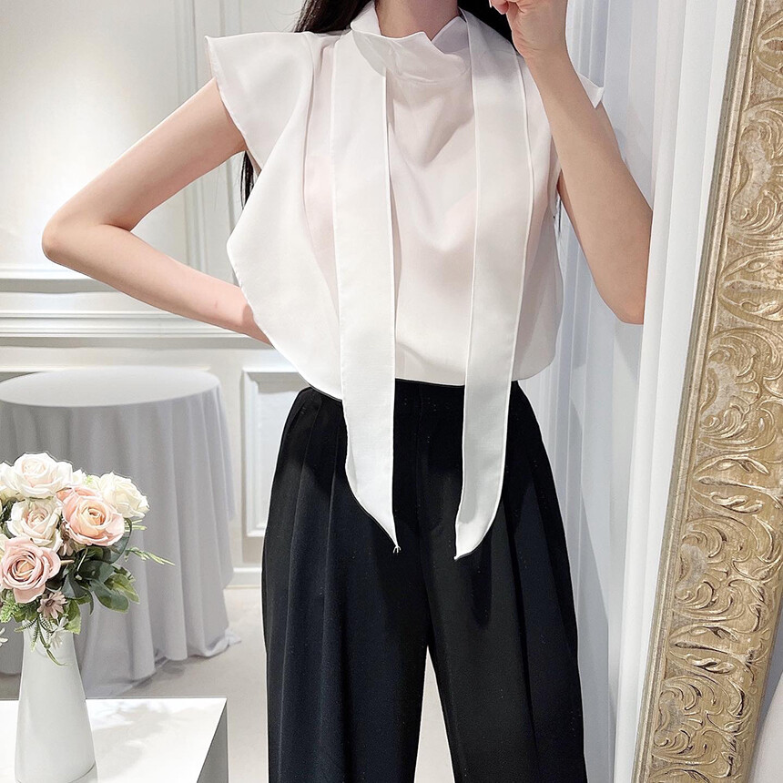 [원가이하 세일 SALE] 언발란스 프릴 하이넥 스카프 타이 블라우스 (하객룩 모임룩 데이트룩)