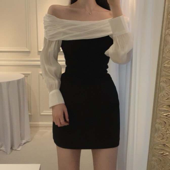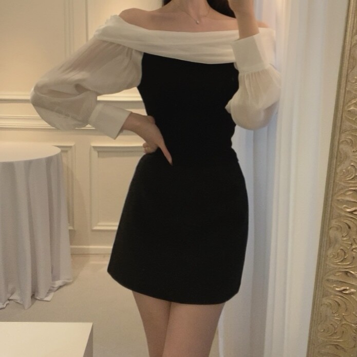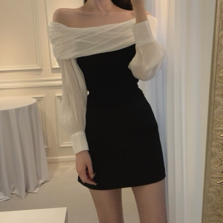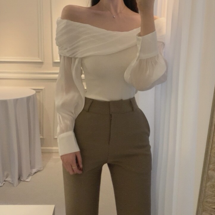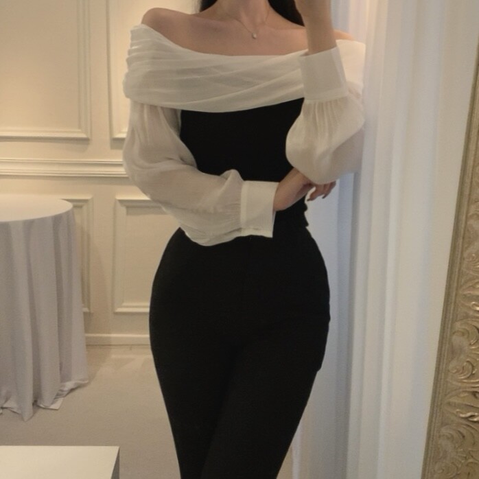 오프숄더로 어깨, 쇄골이 예쁘게 드러나
