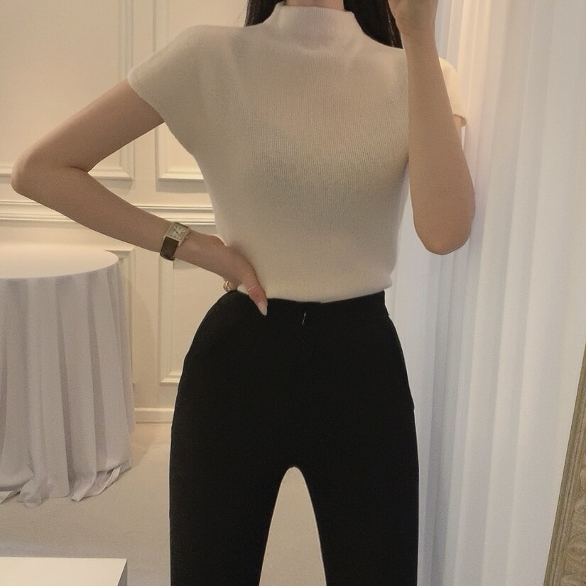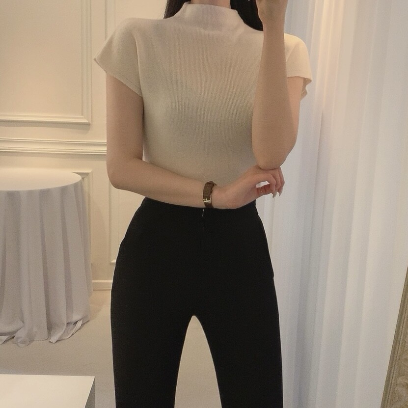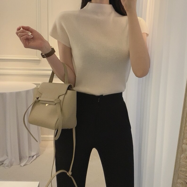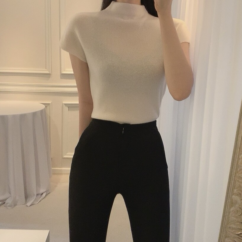 캐시미어 울 반폴라 캡소매 반팔 봄 니트