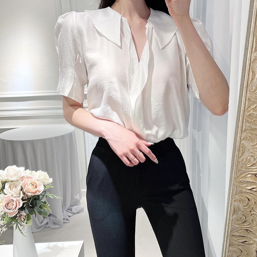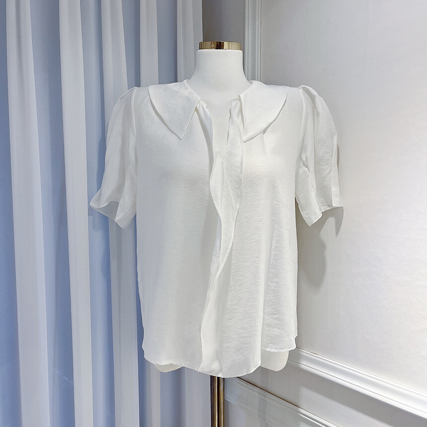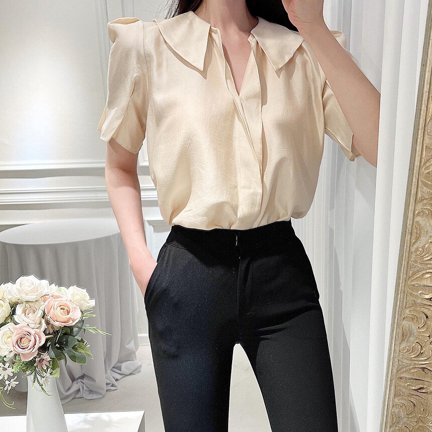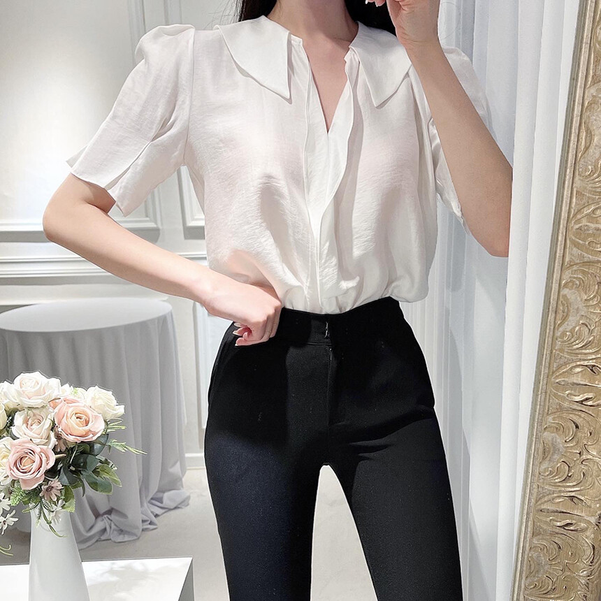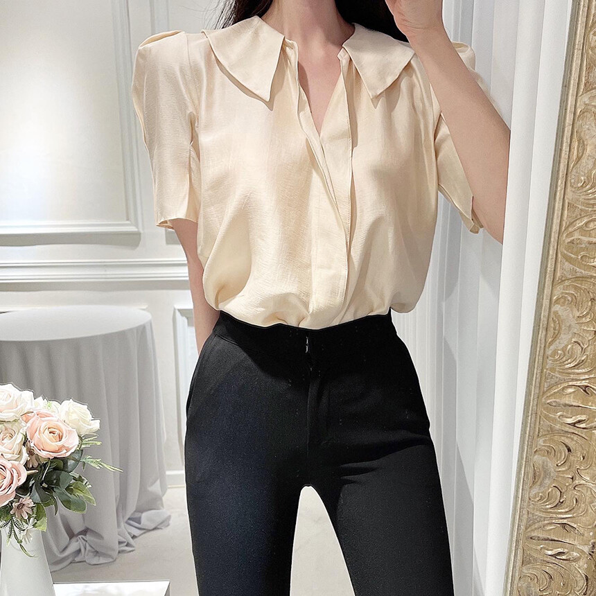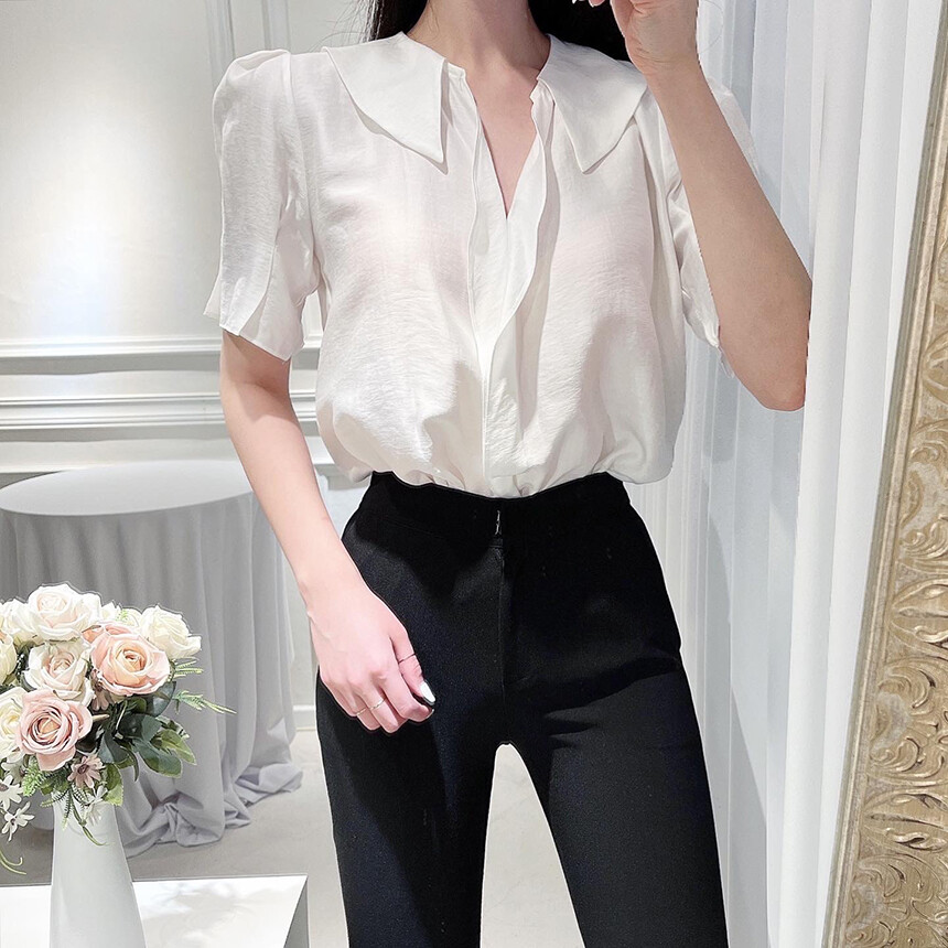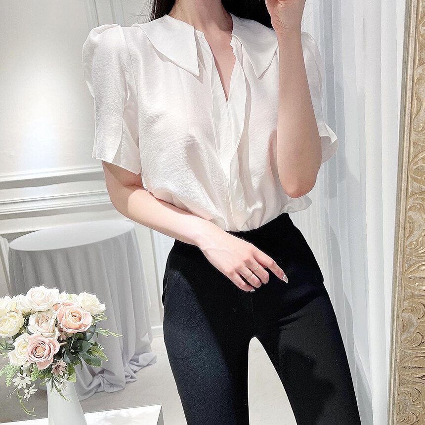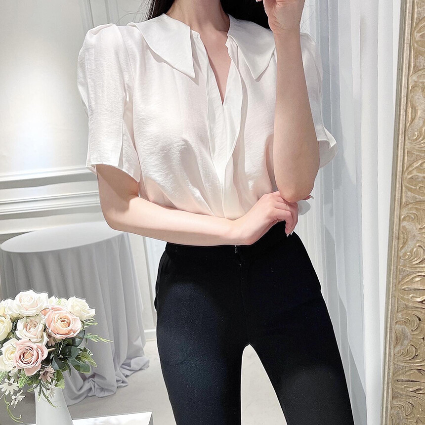 [SALE 원가이하 세일] 물결 프릴 카라 반팔 퍼프 핀턱 소매 여리여리 블라우스