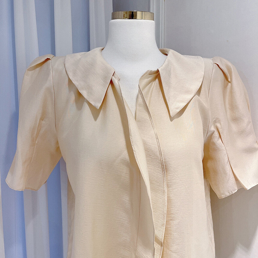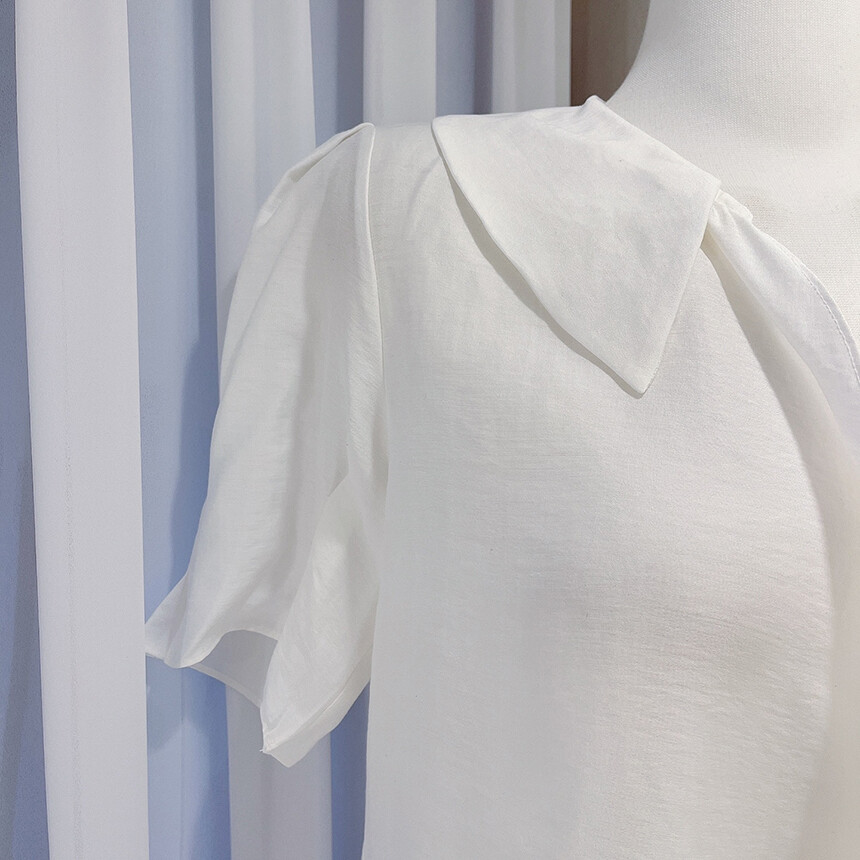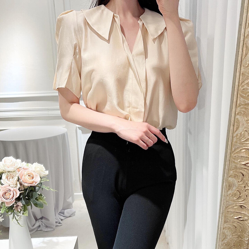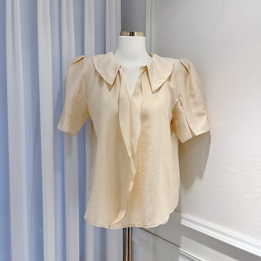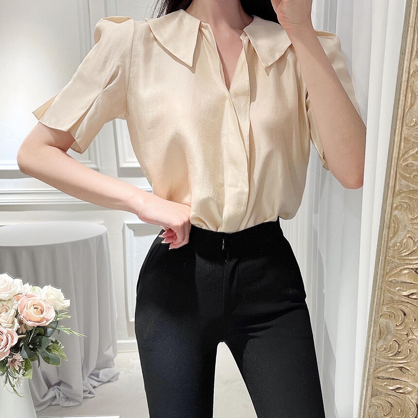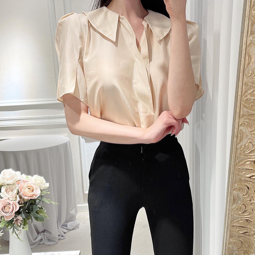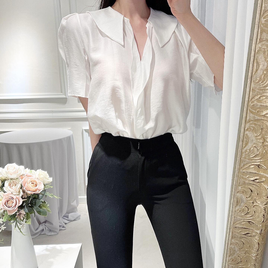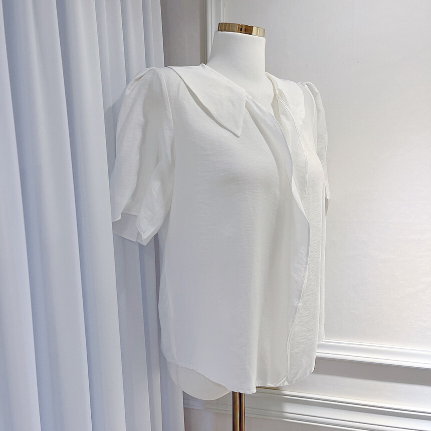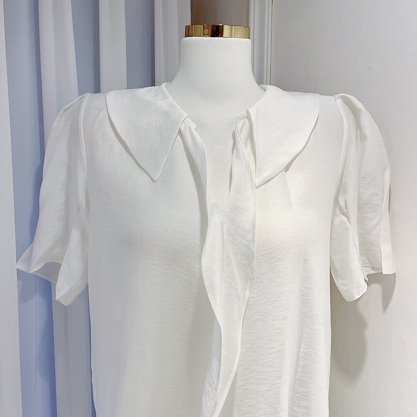 [SALE 원가이하 세일] 물결 프릴 카라 반팔 퍼프 핀턱 소매 여리여리 블라우스