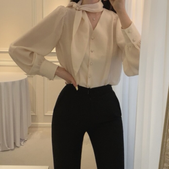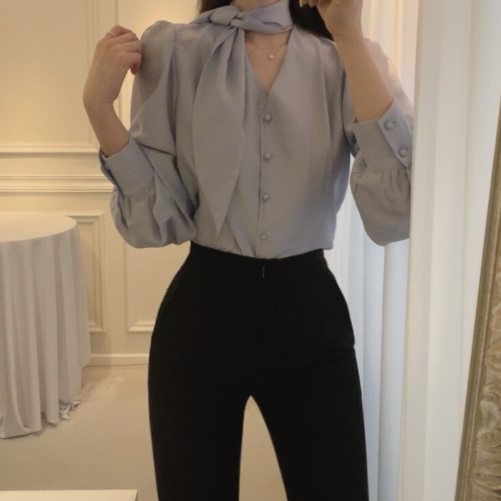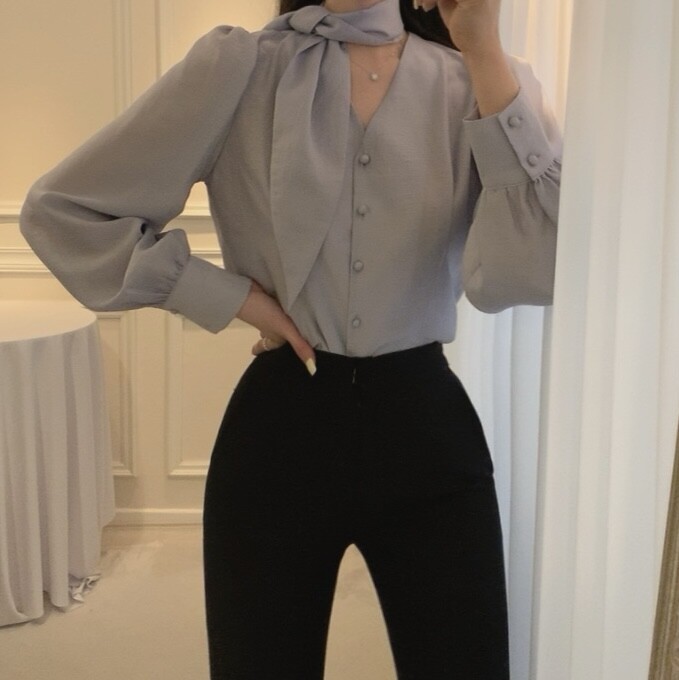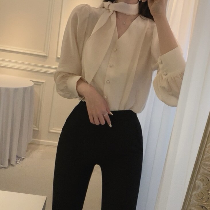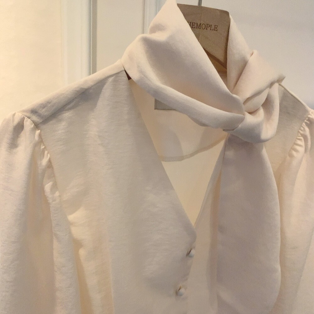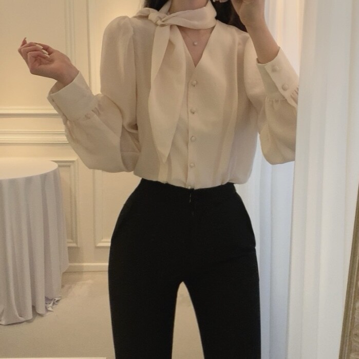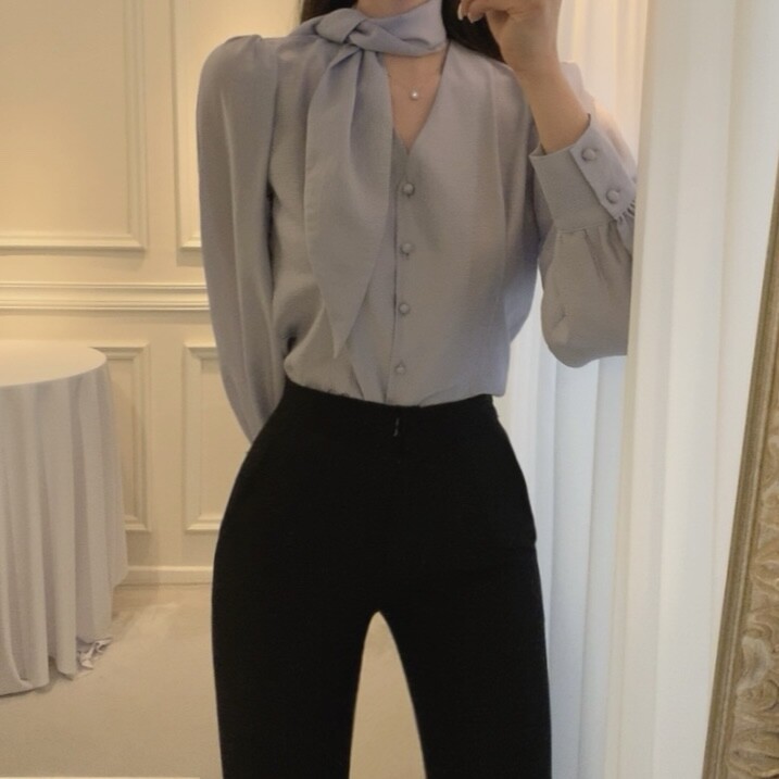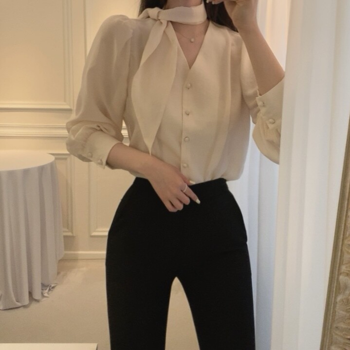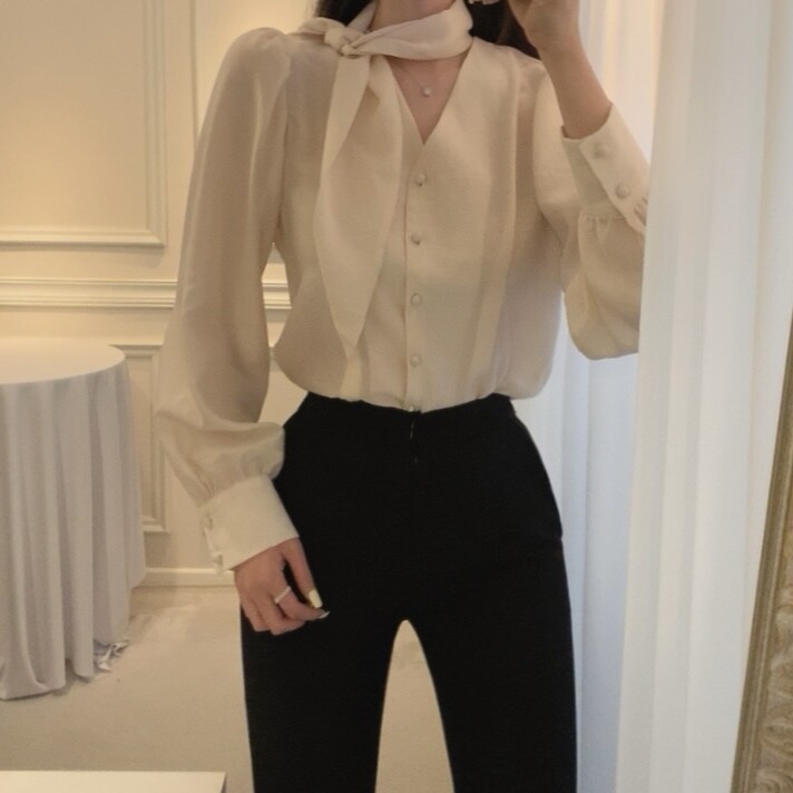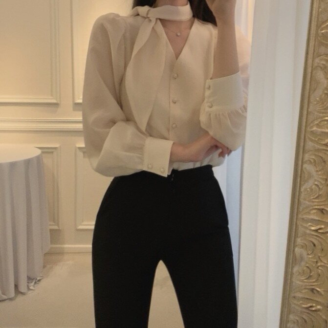 고리 스카프 타이 탈부착 단추 여리여리 블라우스 (하객룩 오피스룩 격식있는룩)