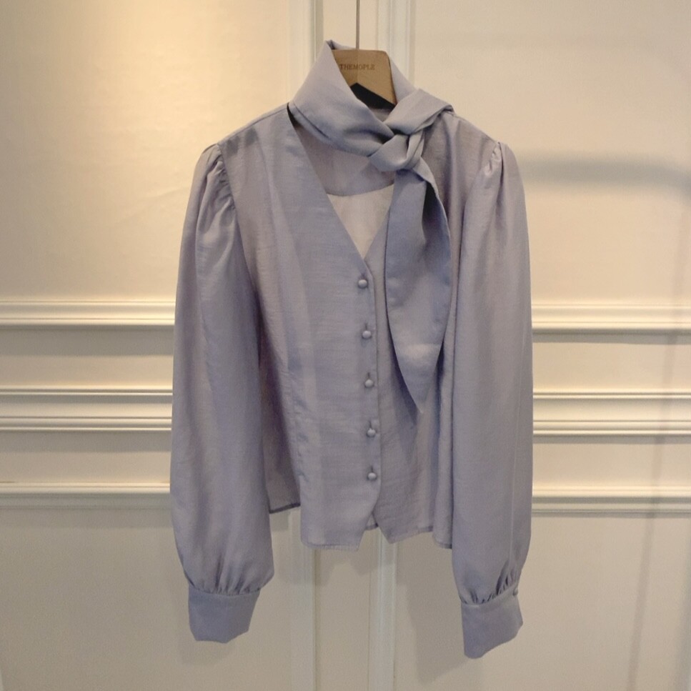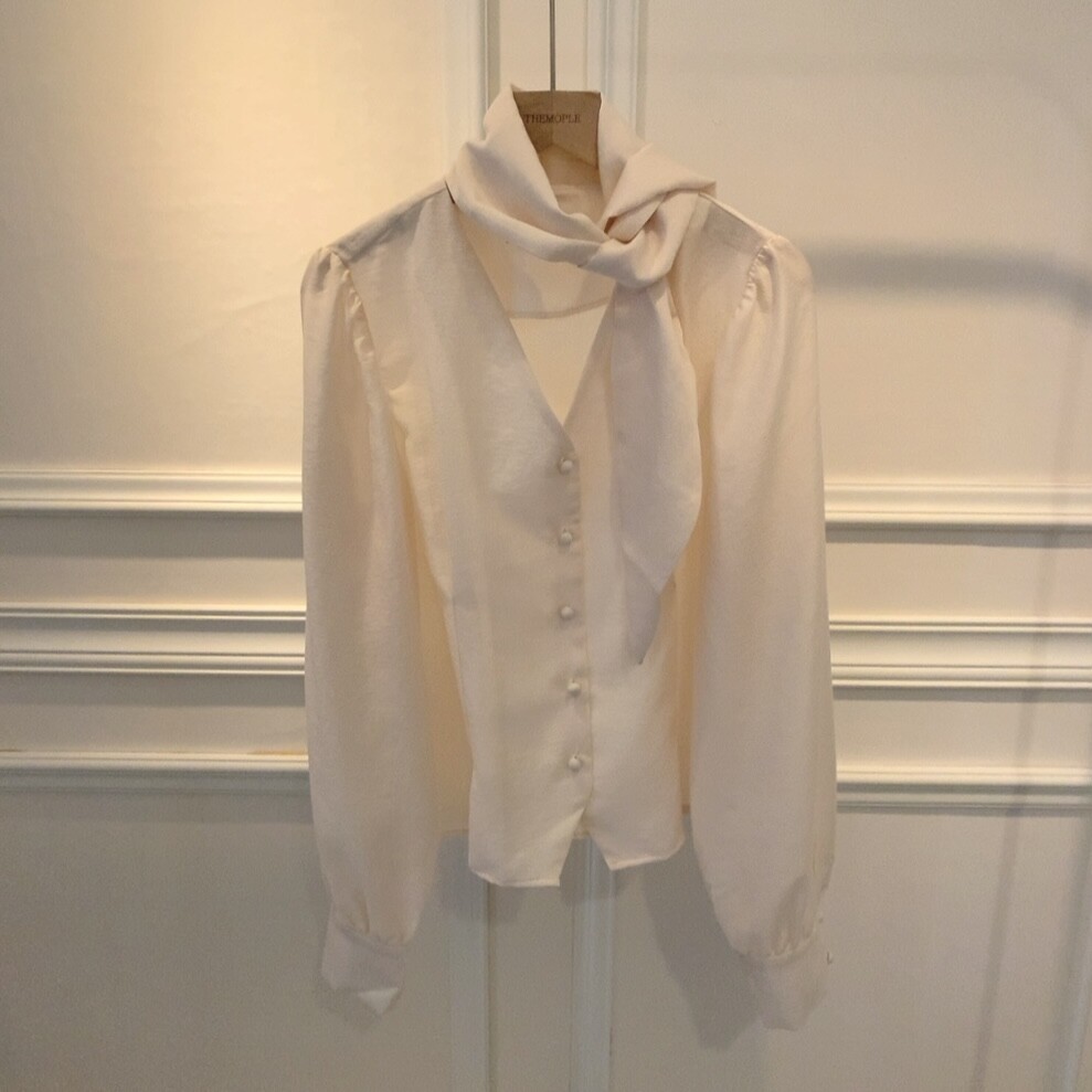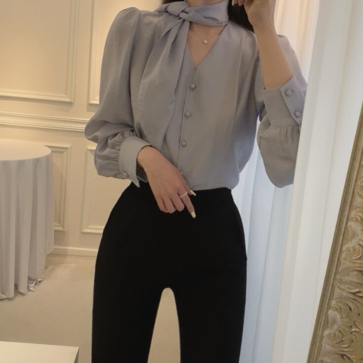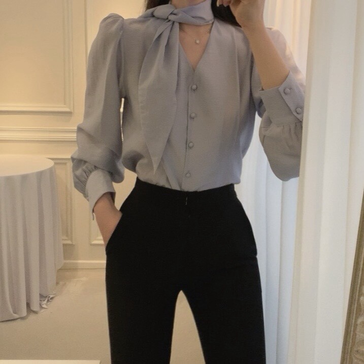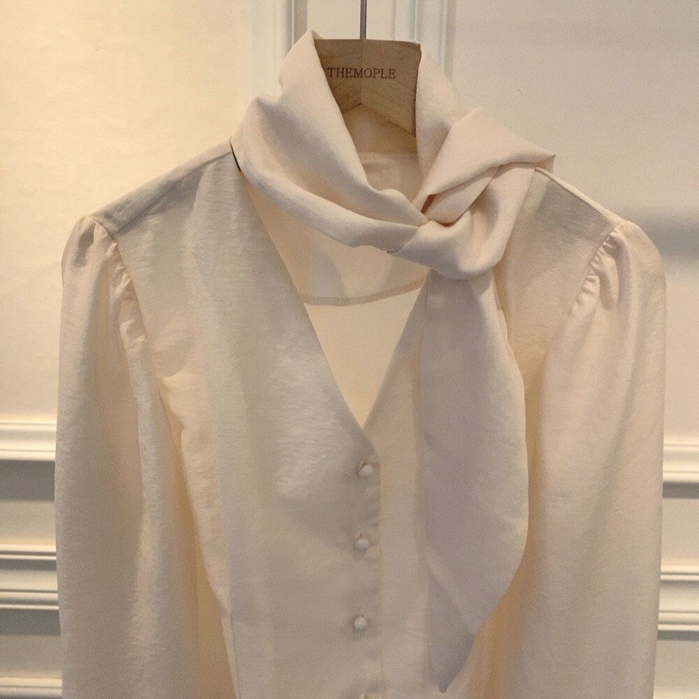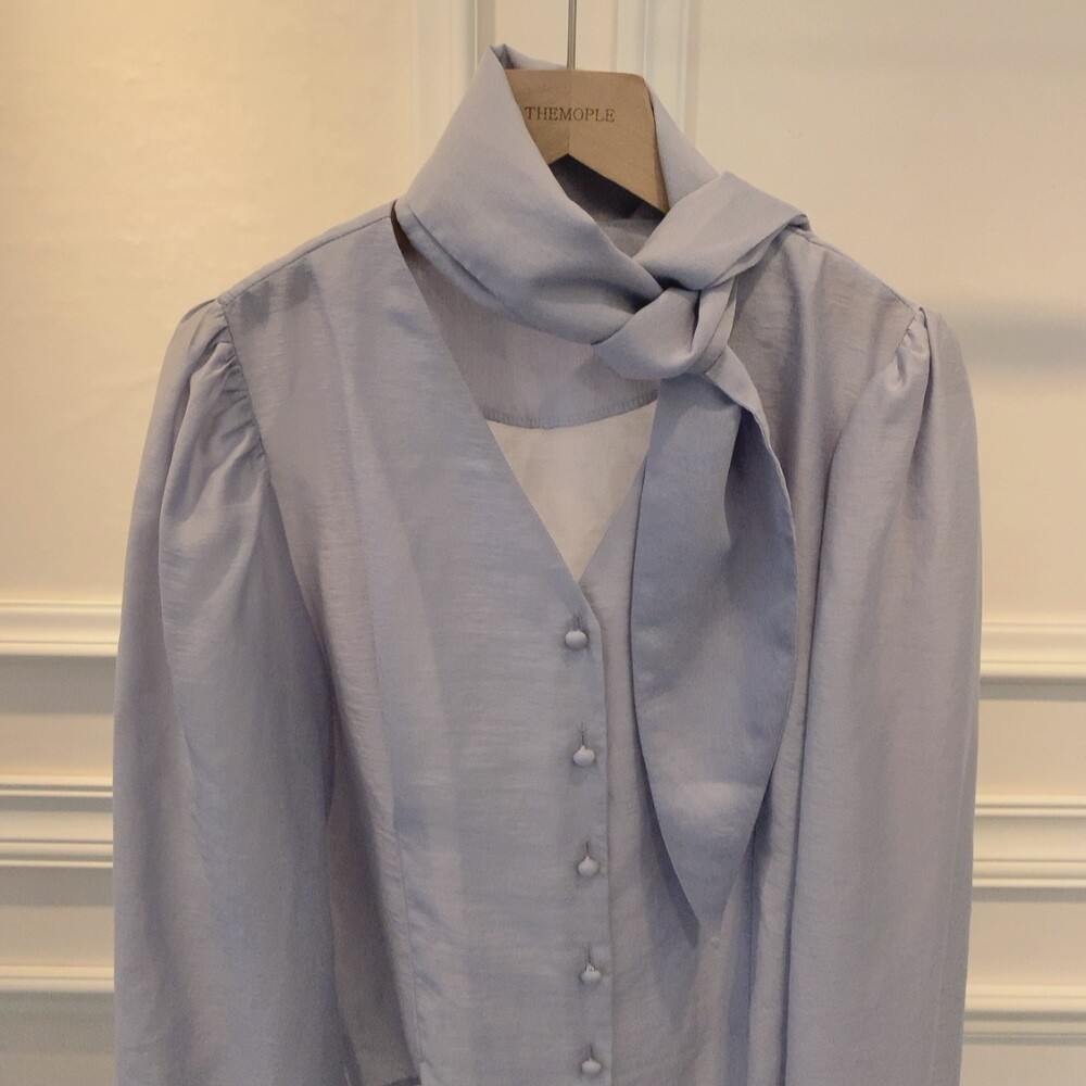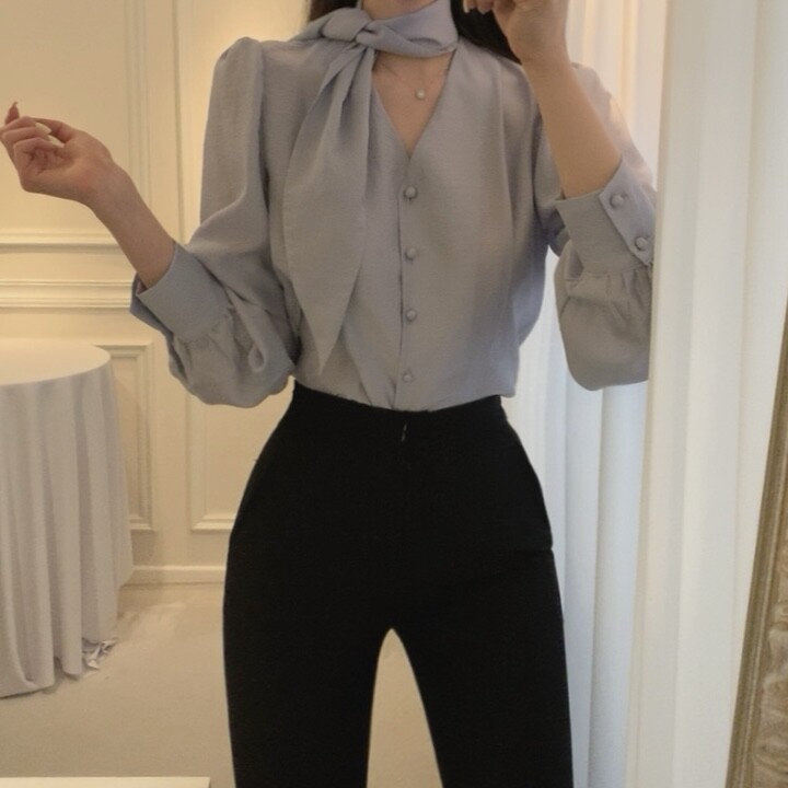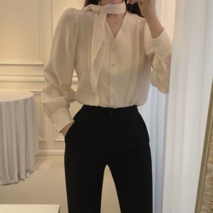 고리 스카프 타이 탈부착 단추 여리여리 블라우스 (하객룩 오피스룩 격식있는룩)