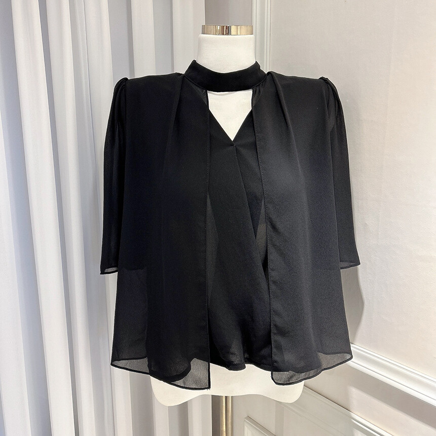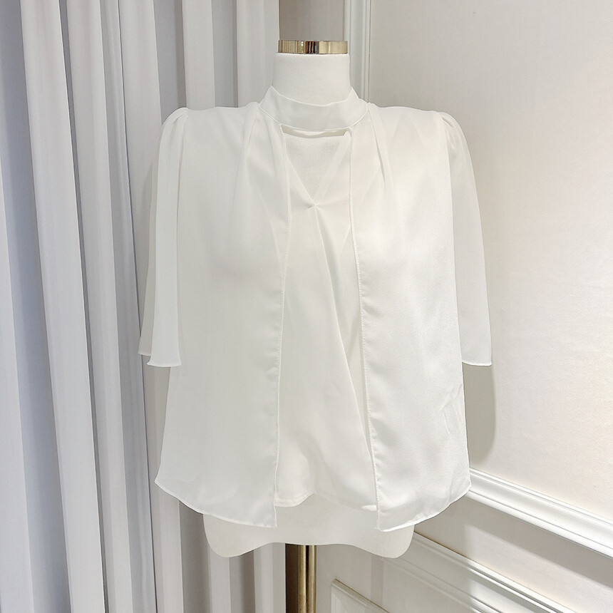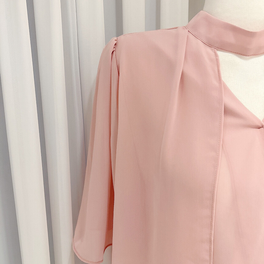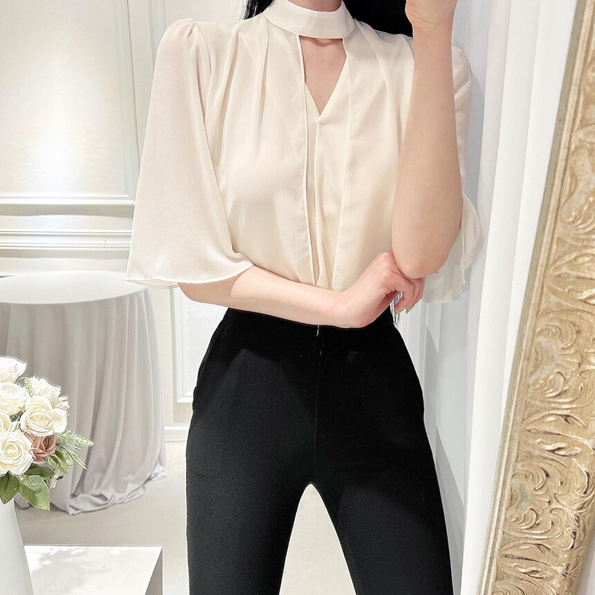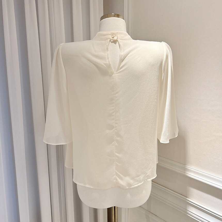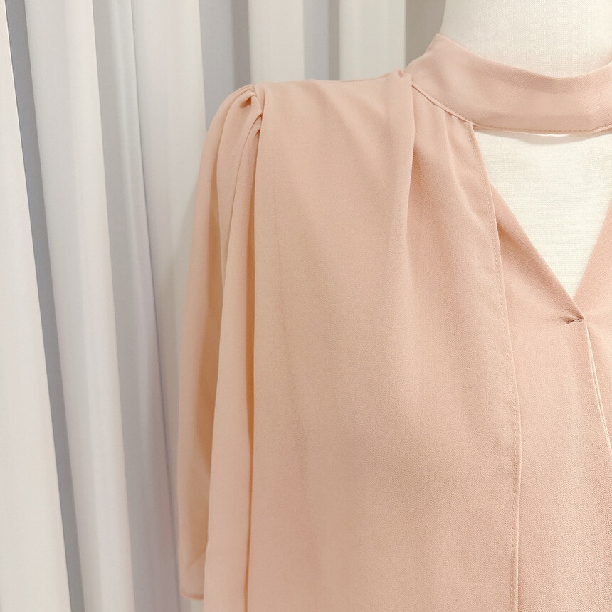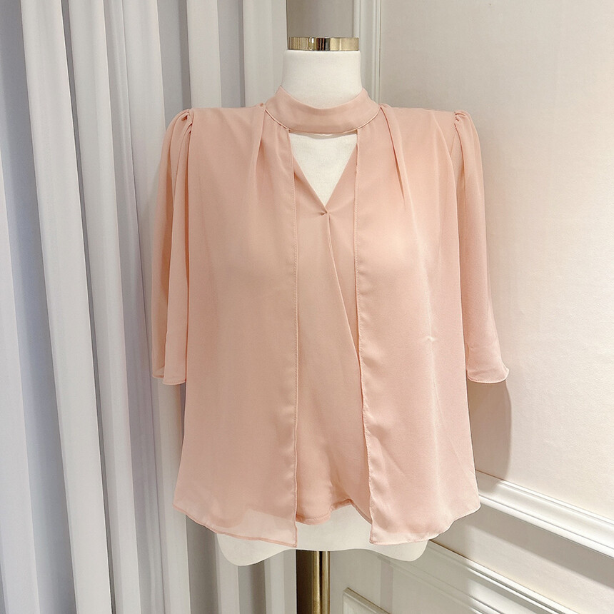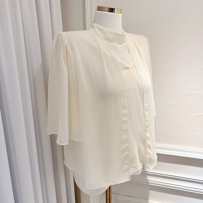 쉬폰 날개 케이프 소매 초커 브이넥 여리여리 고급 블라우스 (하객룩 데이트룩 럭셔리룩)