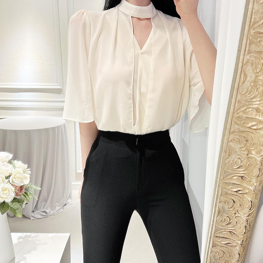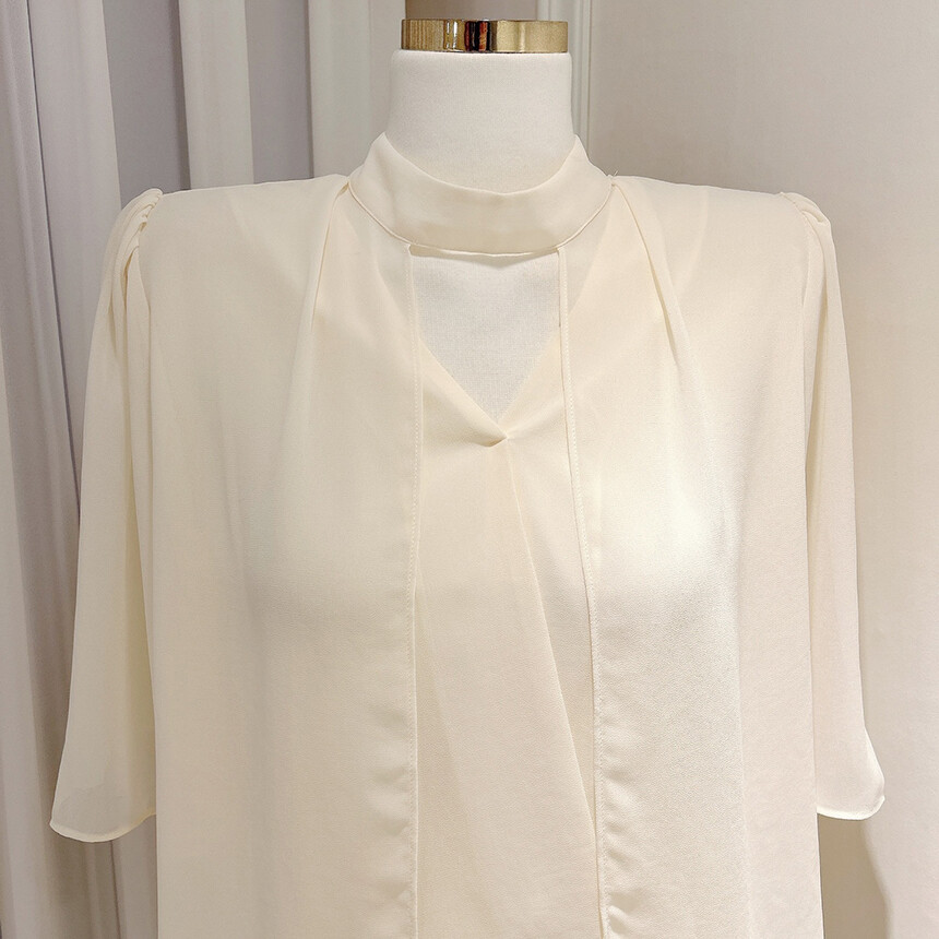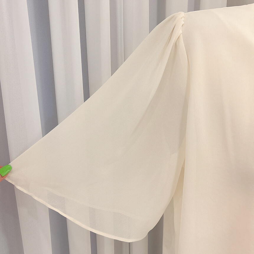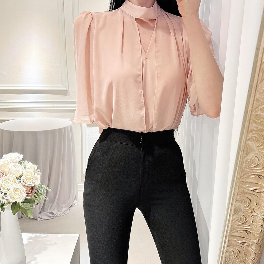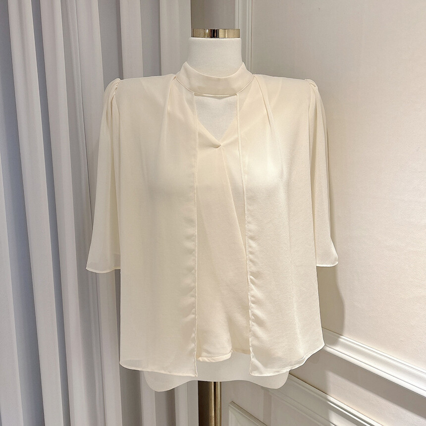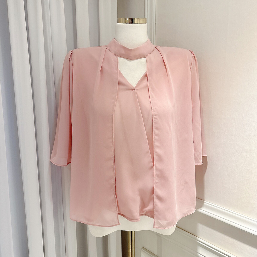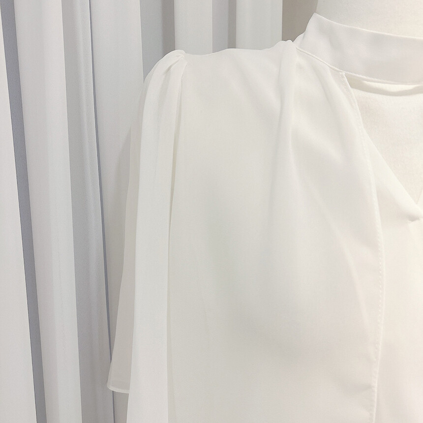 쉬폰 날개 케이프 소매 초커 브이넥 여리여리 고급 블라우스 (하객룩 데이트룩 럭셔리룩)