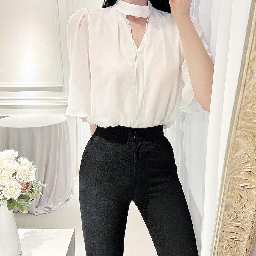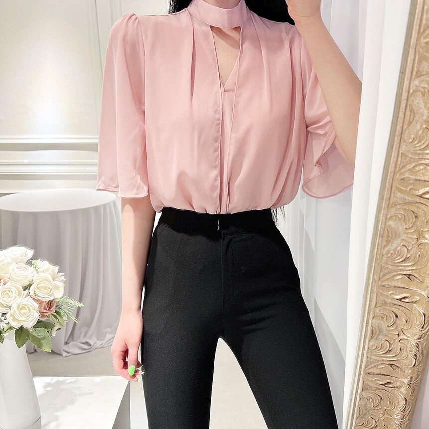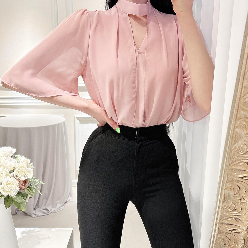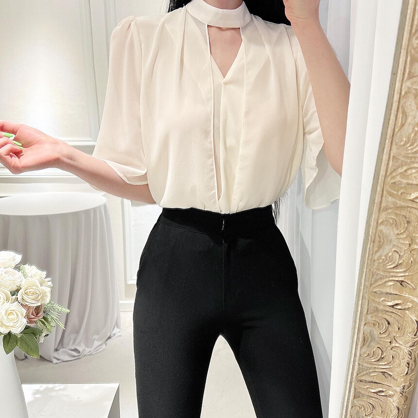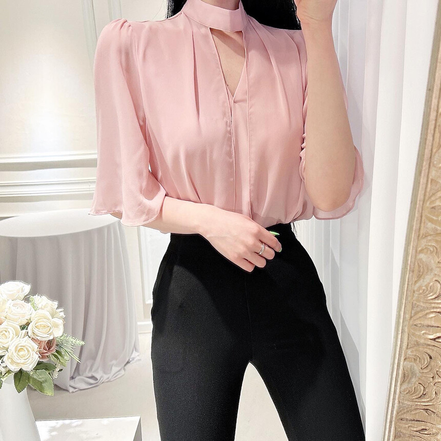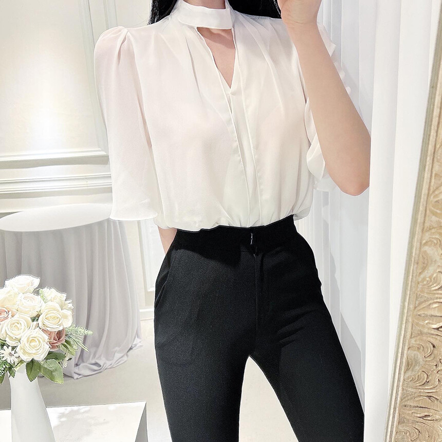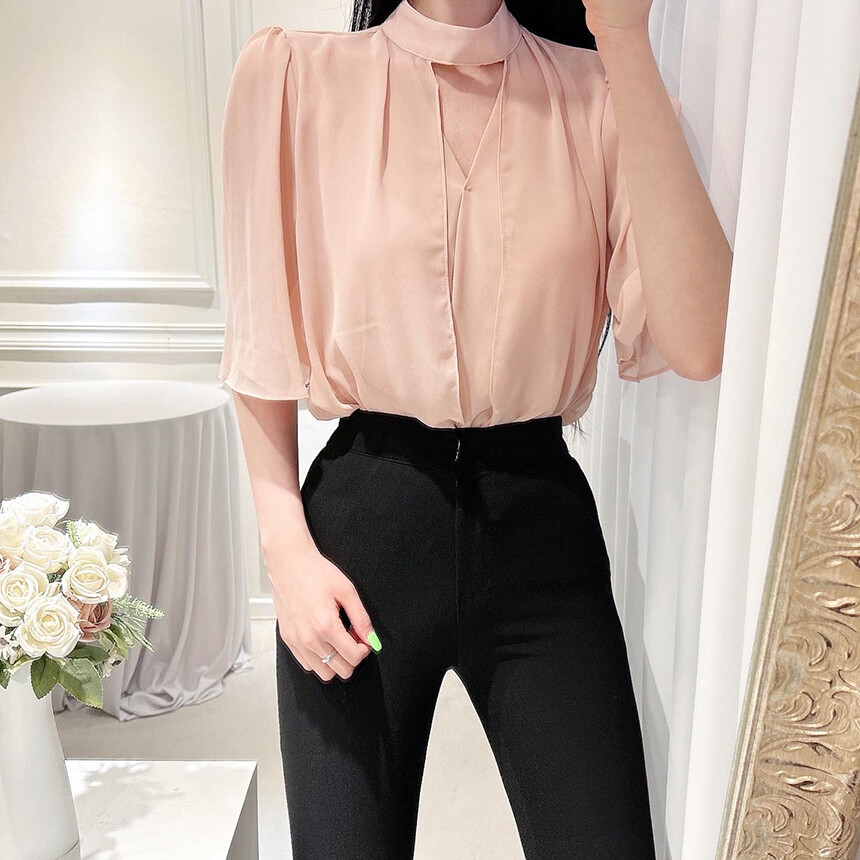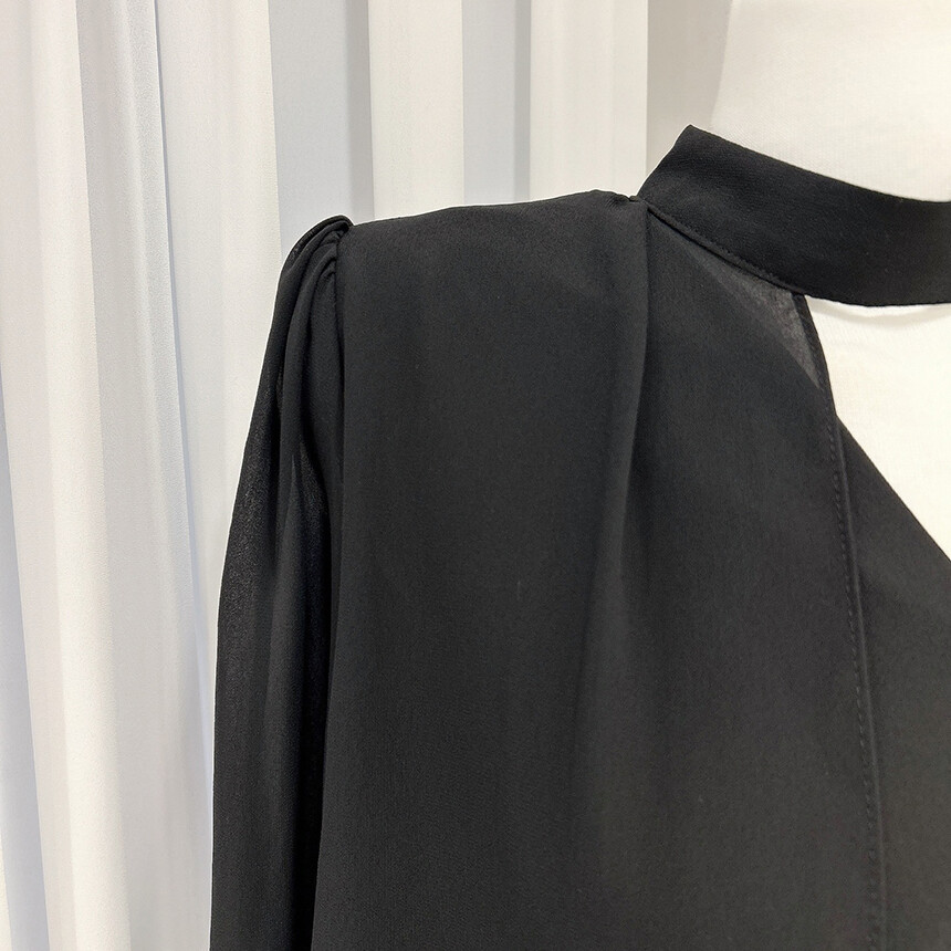 쉬폰 날개 케이프 소매 초커 브이넥 여리여리 고급 블라우스 (하객룩 데이트룩 럭셔리룩)