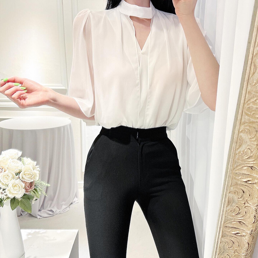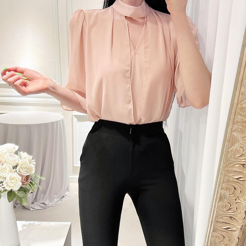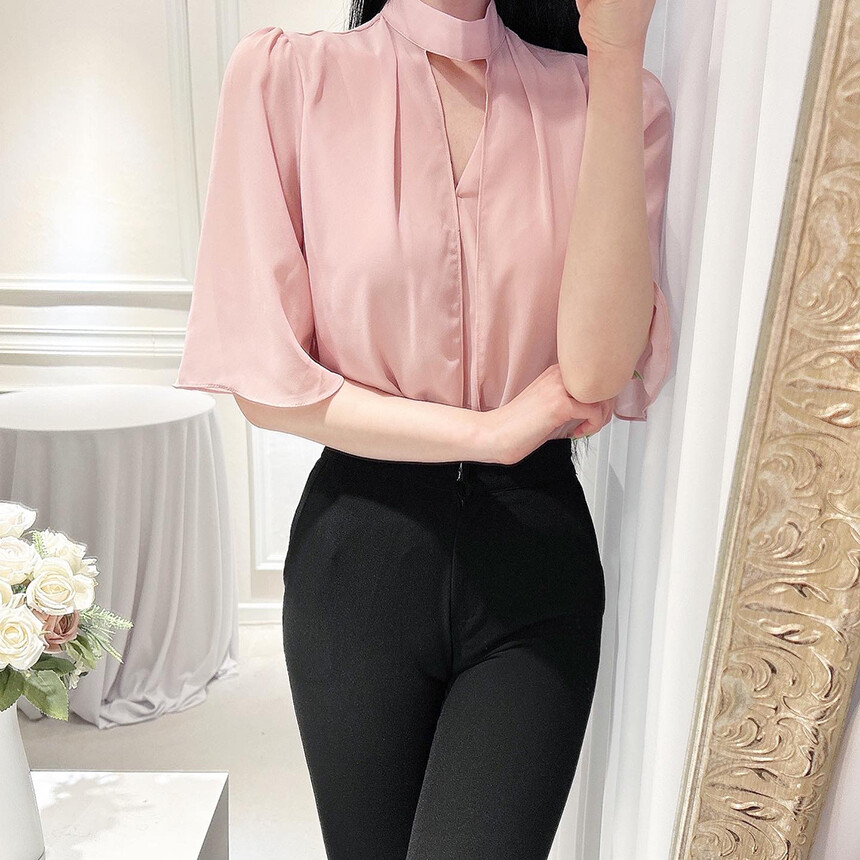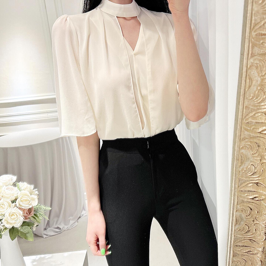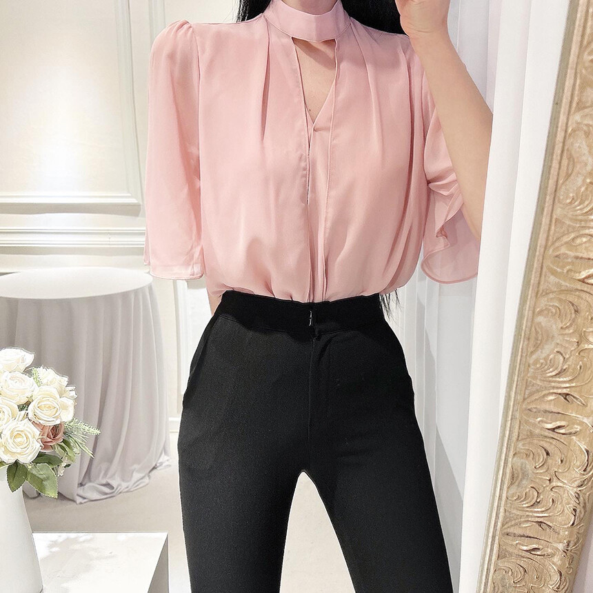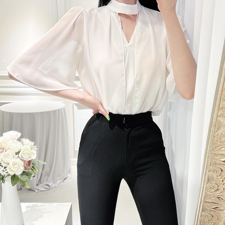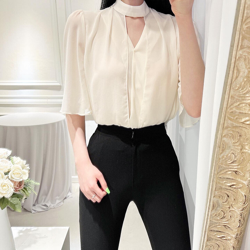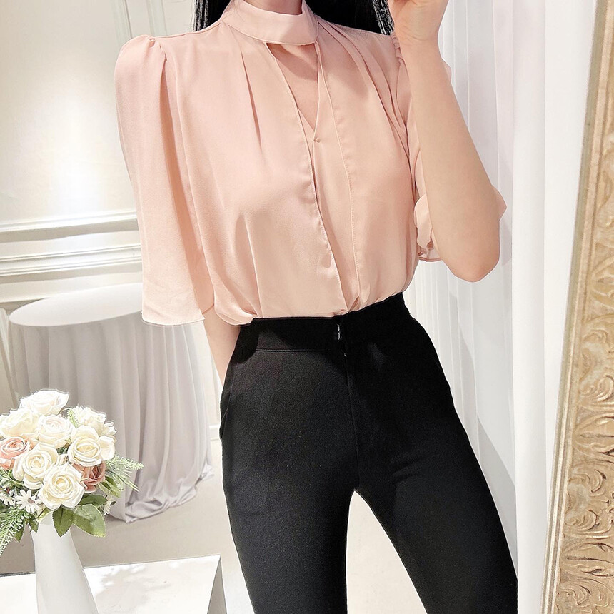 쉬폰 날개 케이프 소매 초커 브이넥 여리여리 고급 블라우스 (하객룩 데이트룩 럭셔리룩)
