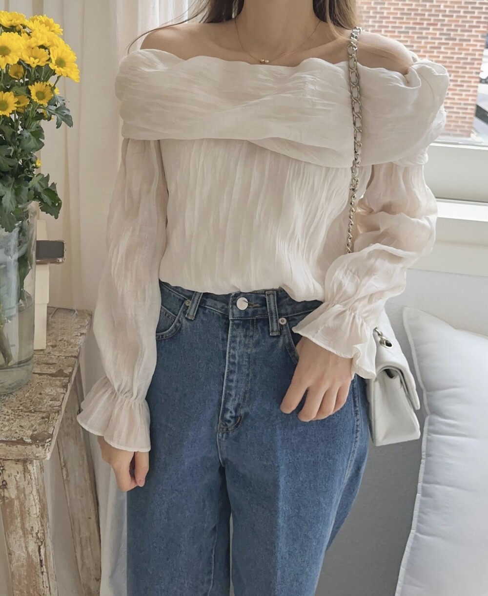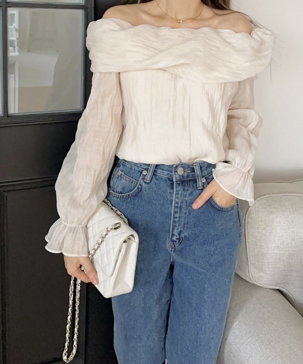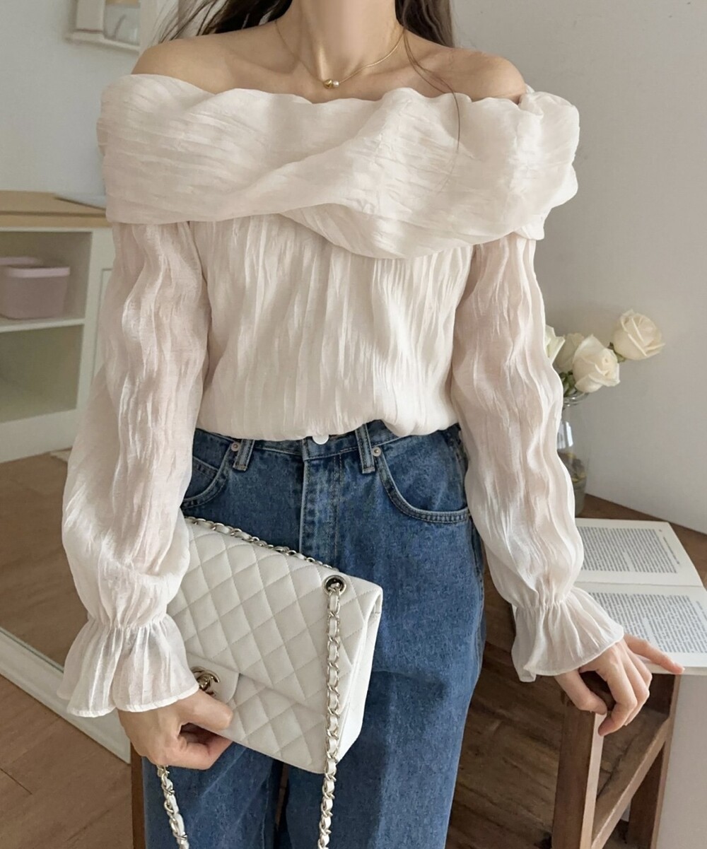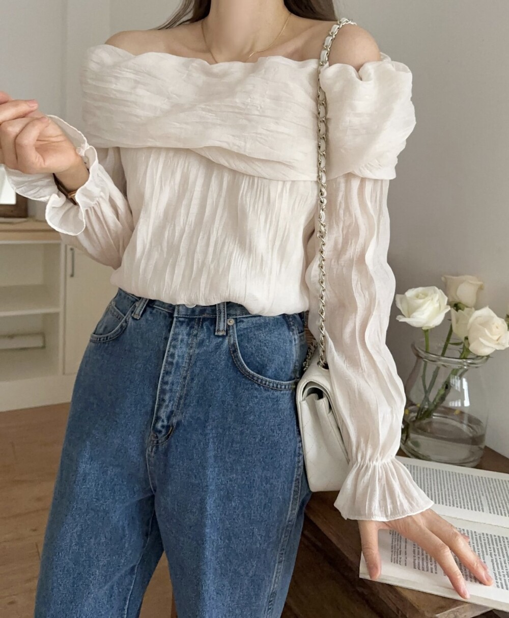 물결 셔링 주름 꼬임 오프숄더 밴딩 블라우스 (데이트룩 파티룩 럭셔리룩)