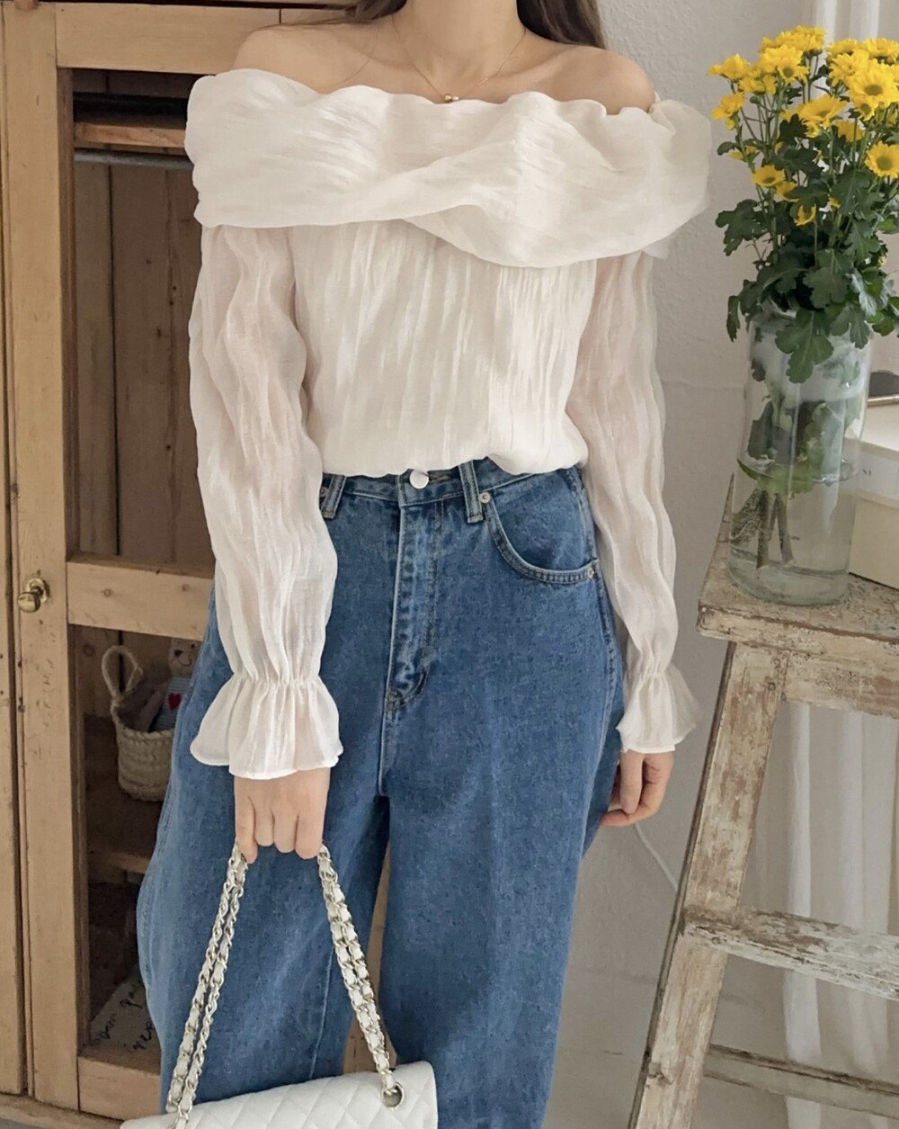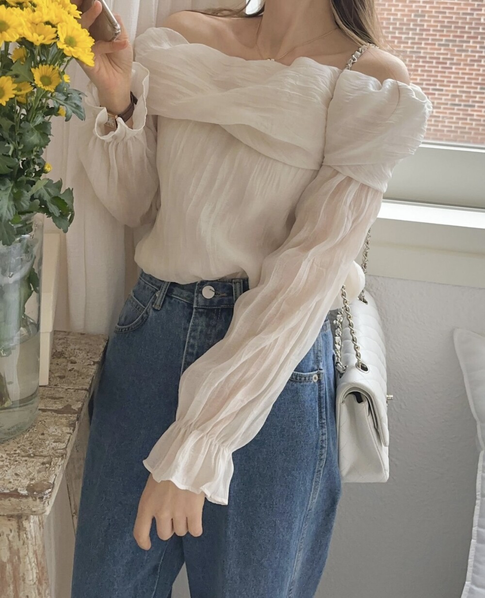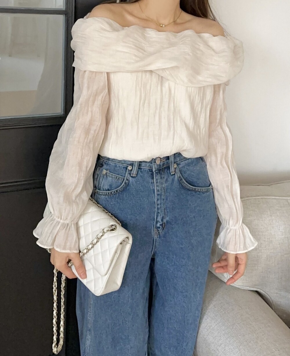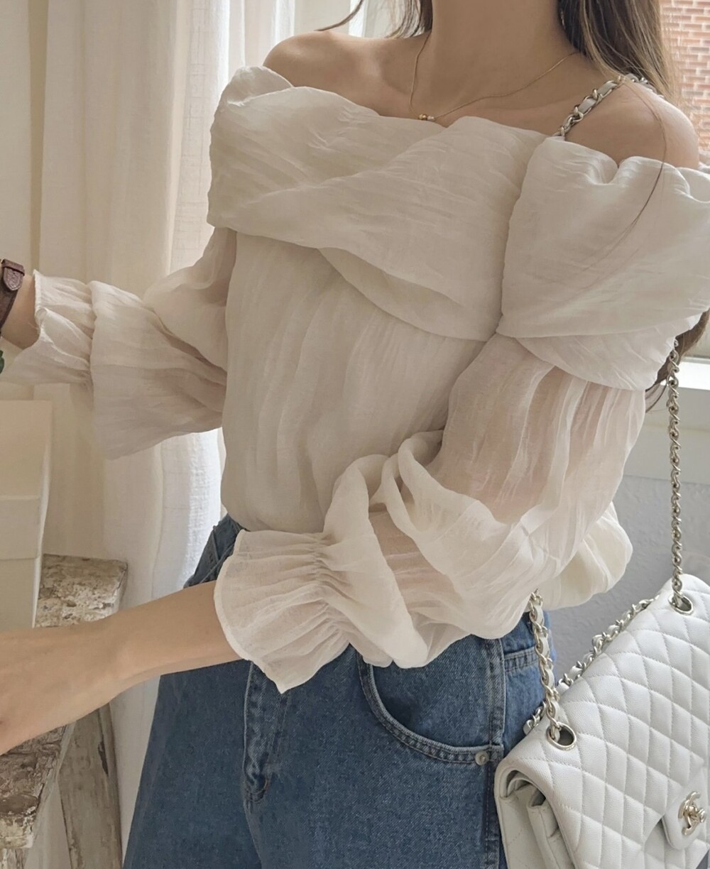 물결 셔링 주름 꼬임 오프숄더 밴딩 블라우스 (데이트룩 파티룩 럭셔리룩)