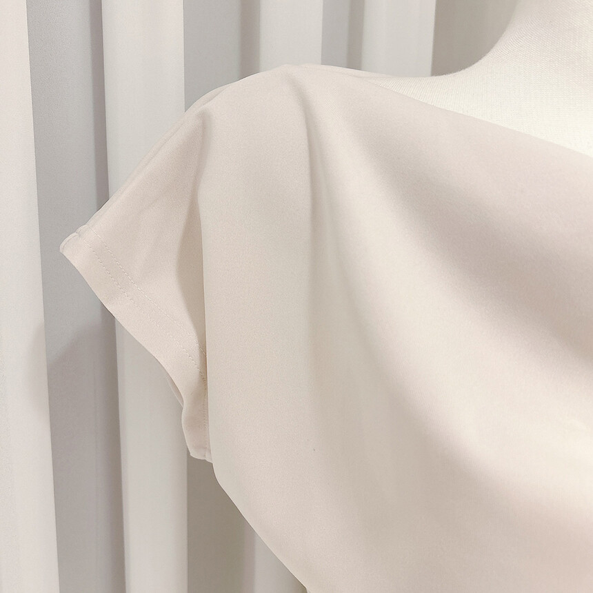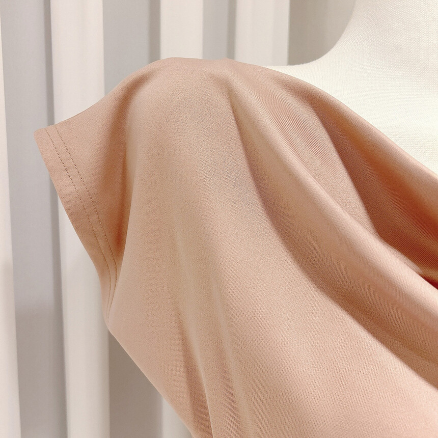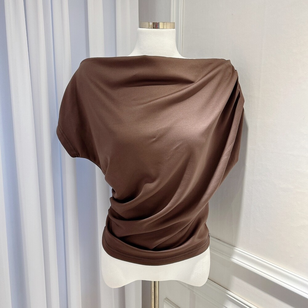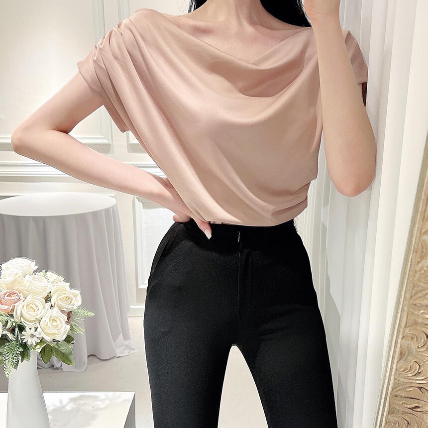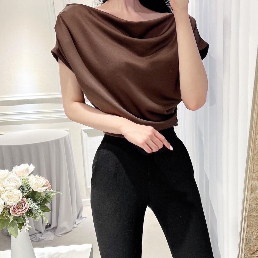 입술넥 오프숄더 브이넥 셔링 드레이프 주름 실키 새틴 블라우스