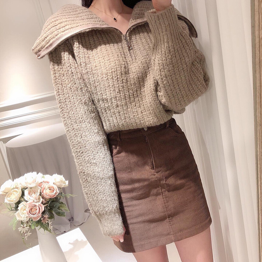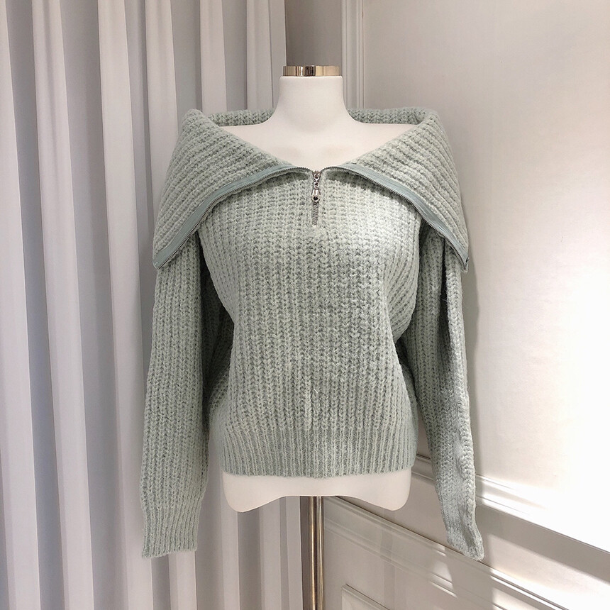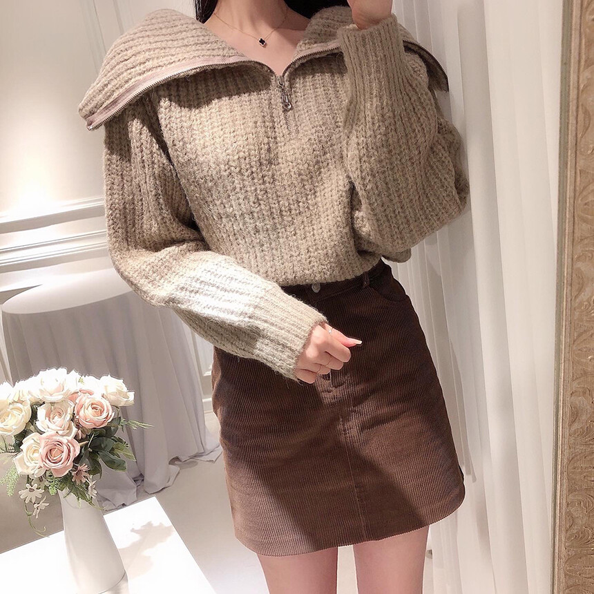 [원가이하 세일 SALE] 카라 반집업 지퍼 여리여리핏 니트