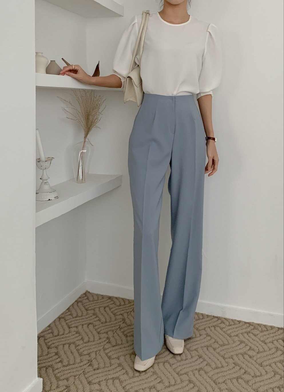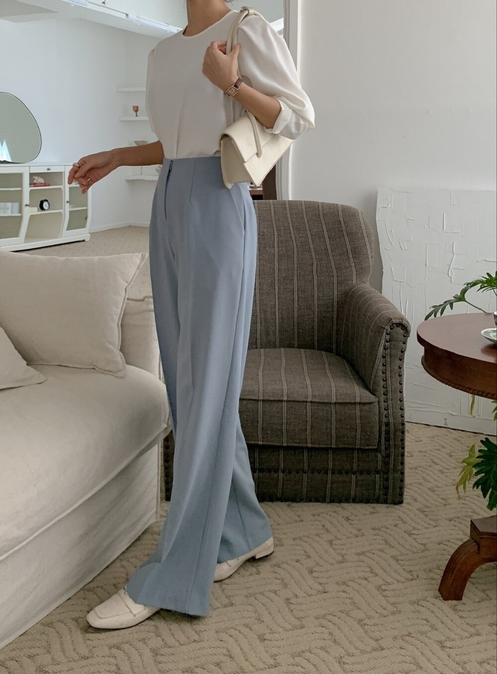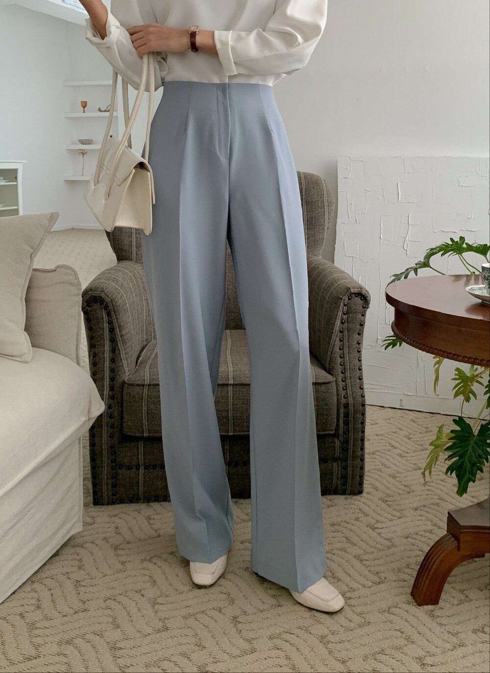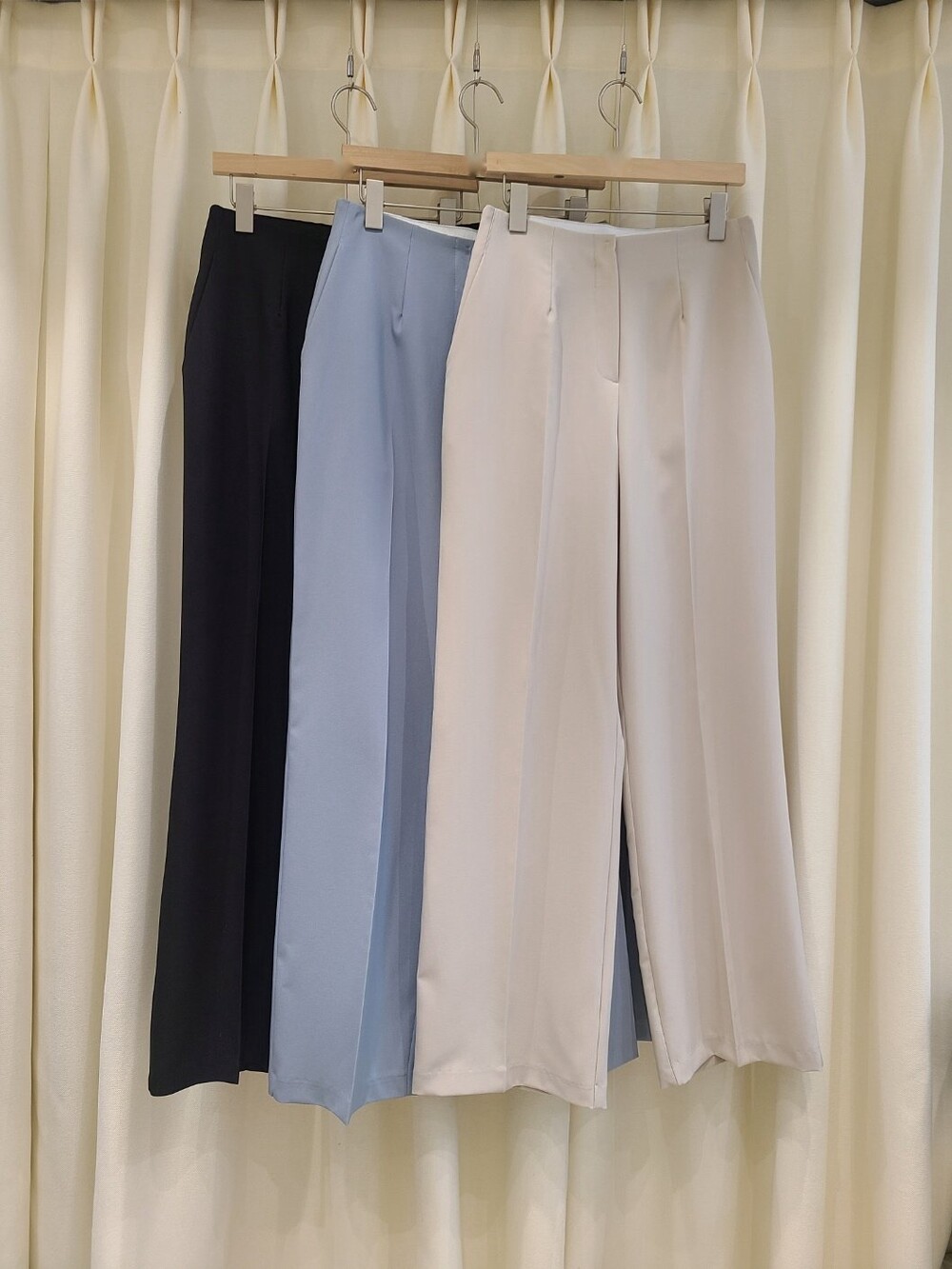 [원가이하 세일*당일출고] 일자핏 찰랑 세미 와이드 스판 히든밴딩 슬랙스 팬츠 (오피스룩 하객룩 데일리룩)