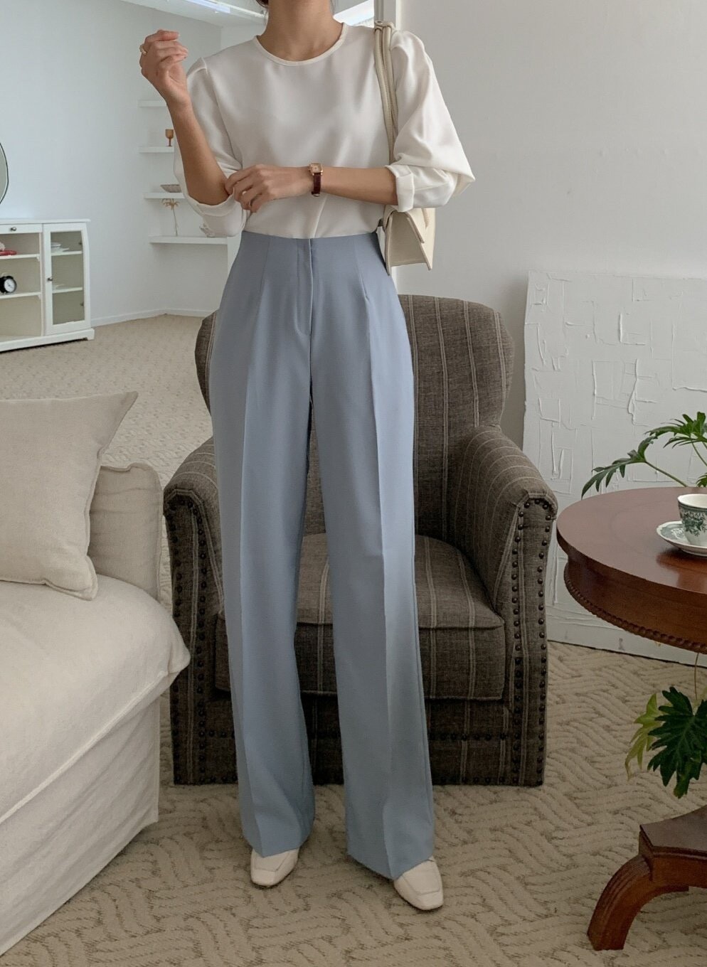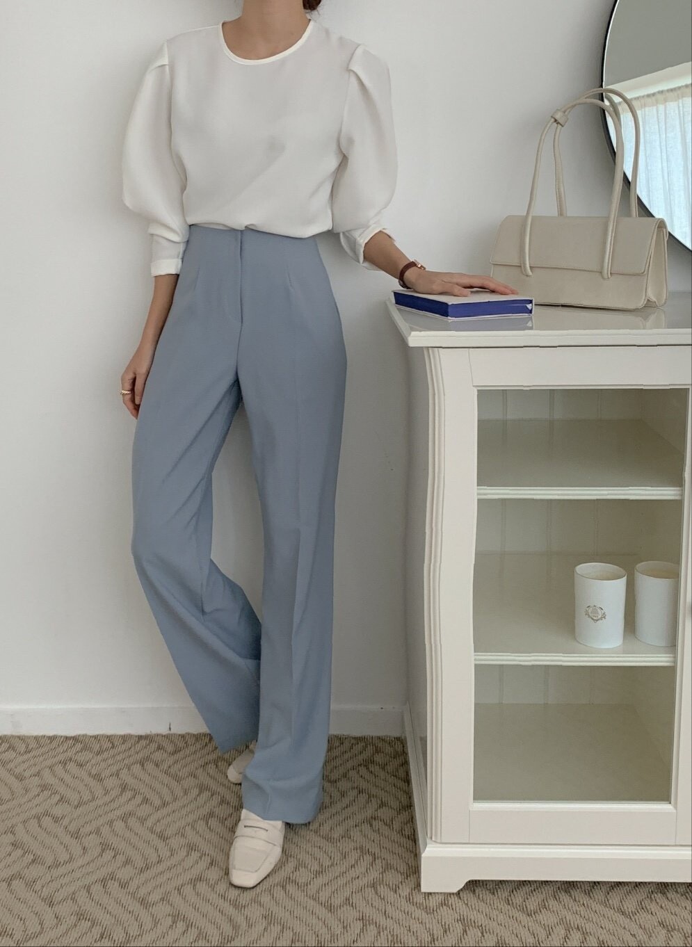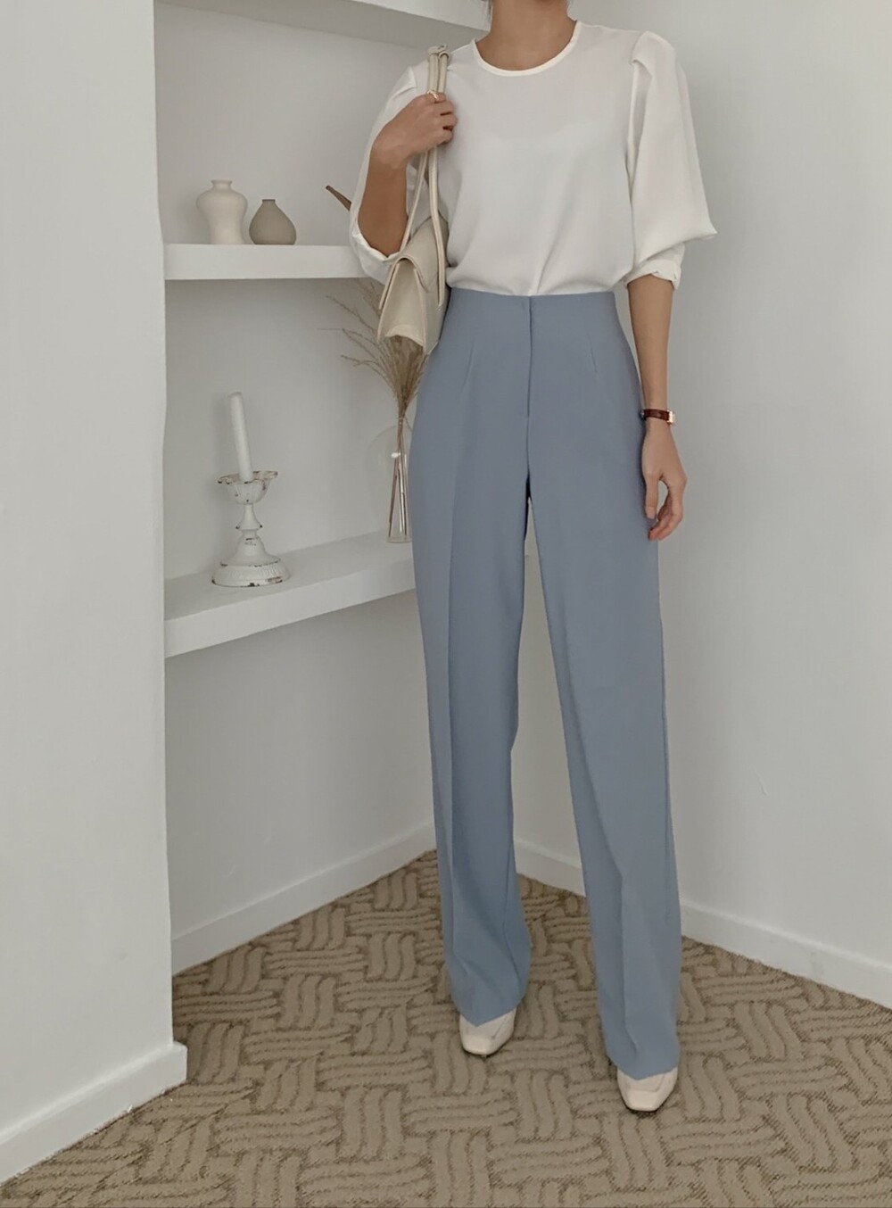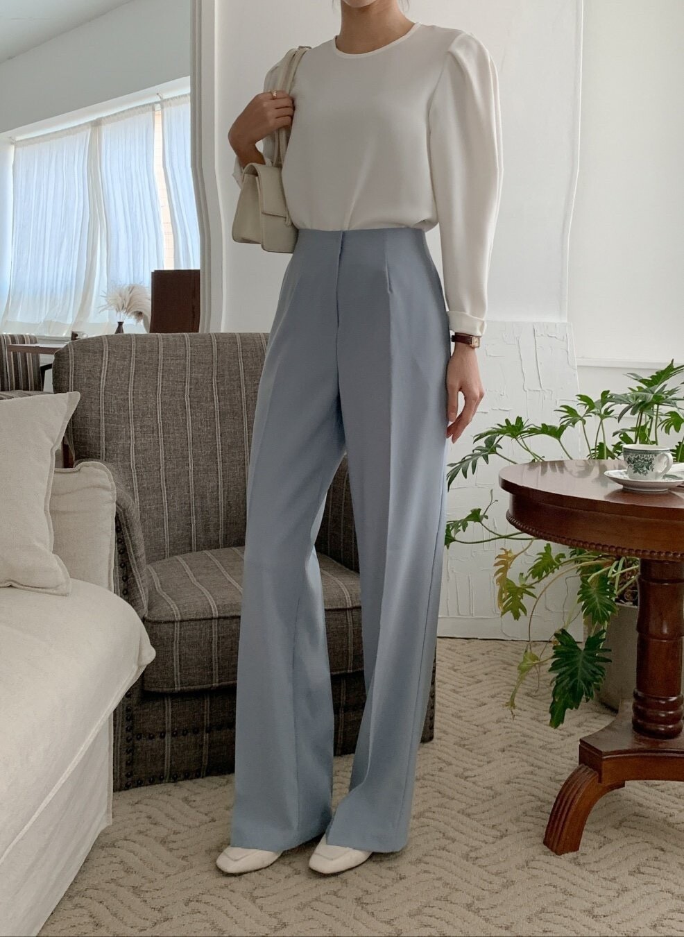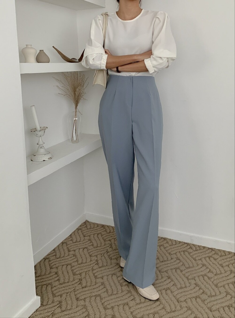 [원가이하 세일*당일출고] 일자핏 찰랑 세미 와이드 스판 히든밴딩 슬랙스 팬츠 (오피스룩 하객룩 데일리룩)