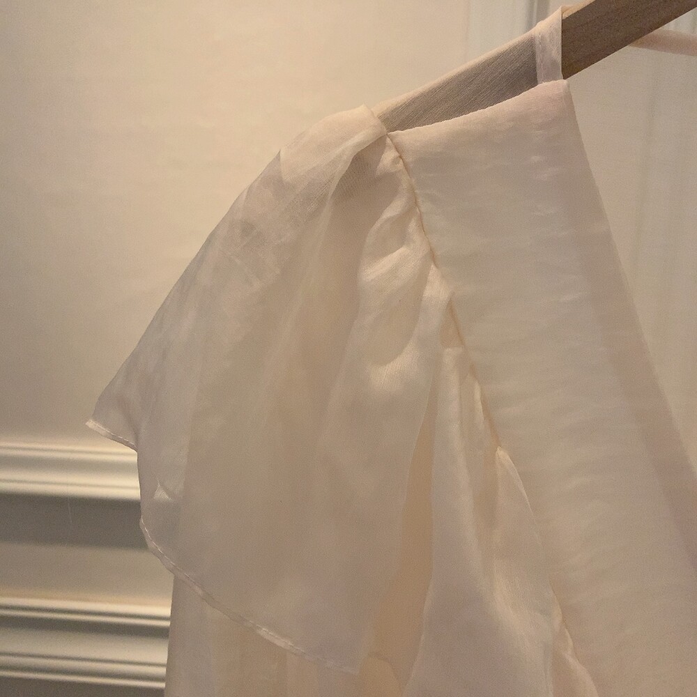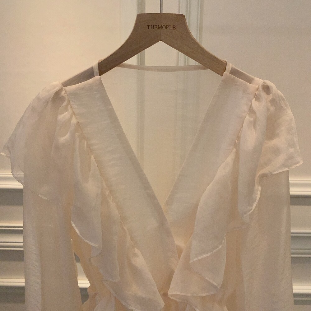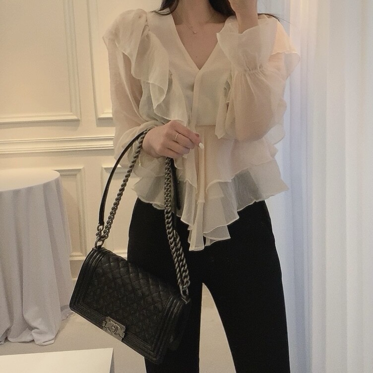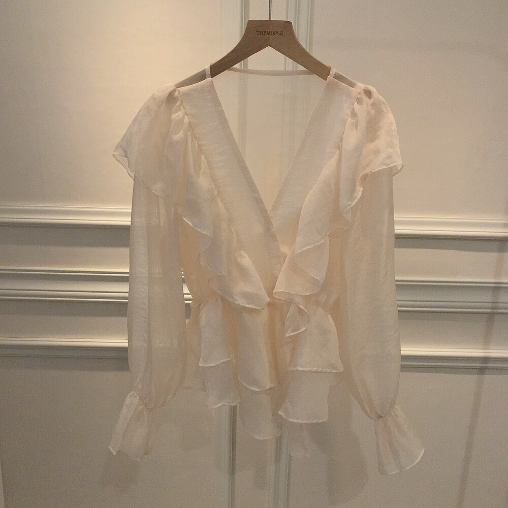 프릴 러플 시스루 브이넥 똑딱이 단추 여신 블라우스 (하객룩 데이트룩 나들이룩)