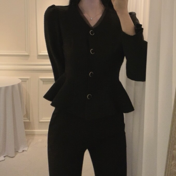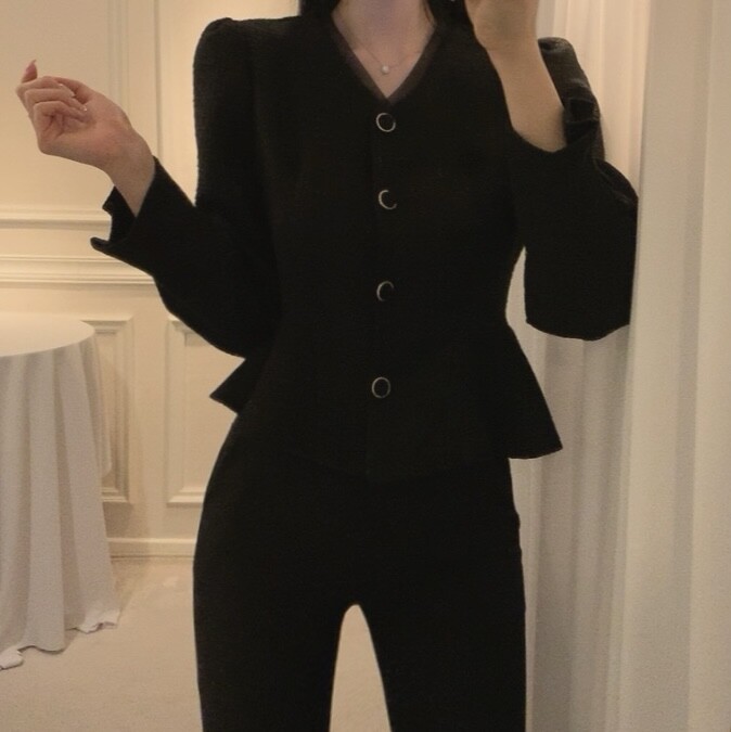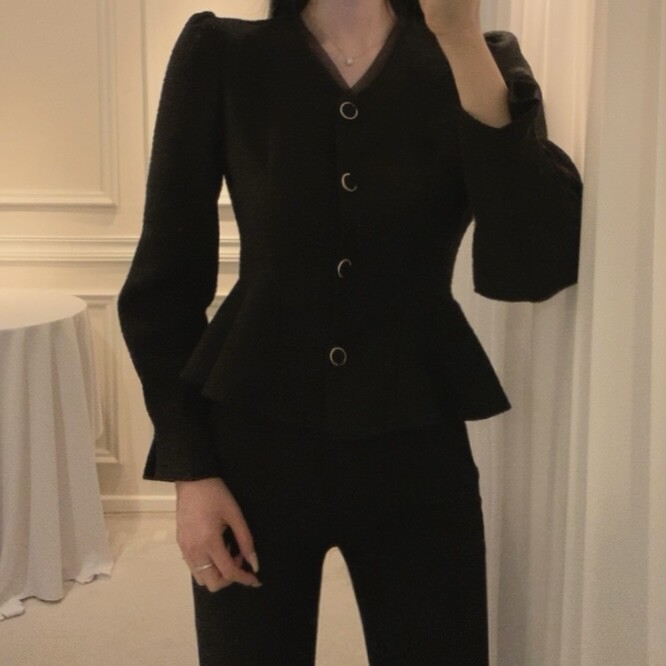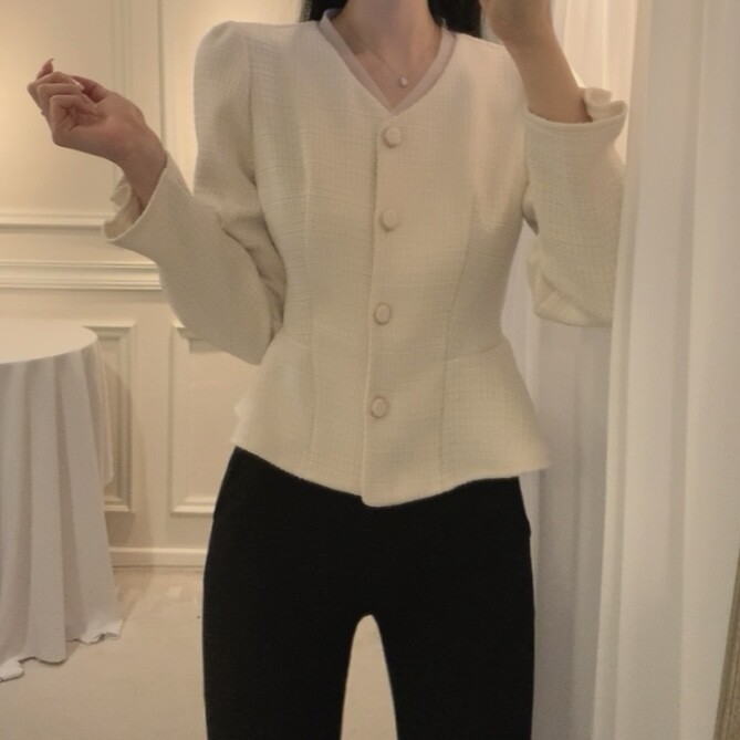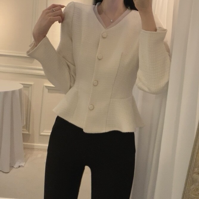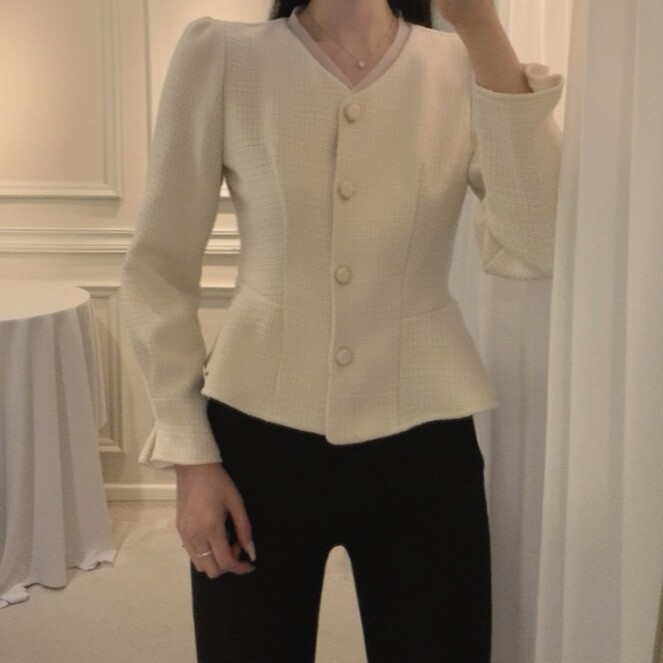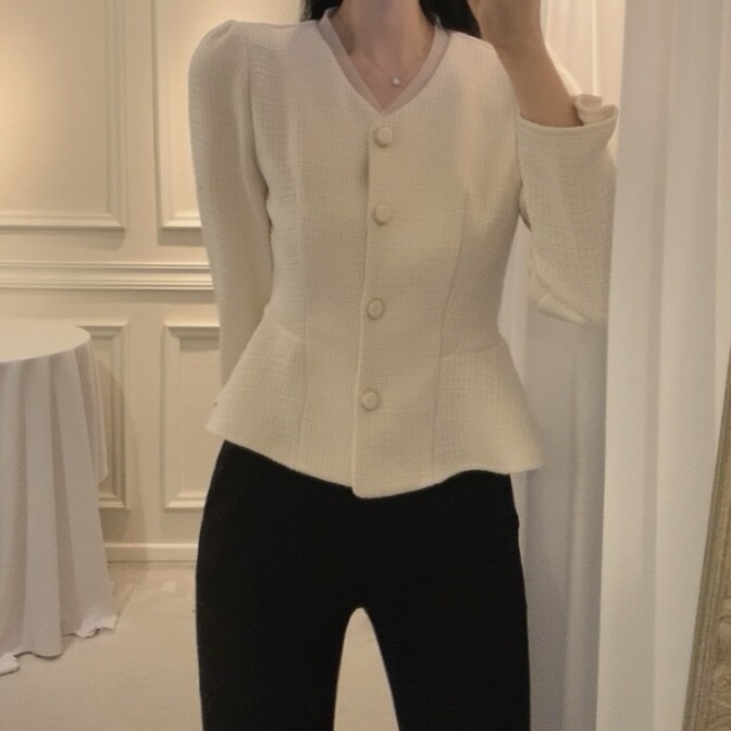 [고퀄리티] 트위드 자켓 플레어 단추 블라우스 (하객룩 오피스룩 모임룩)