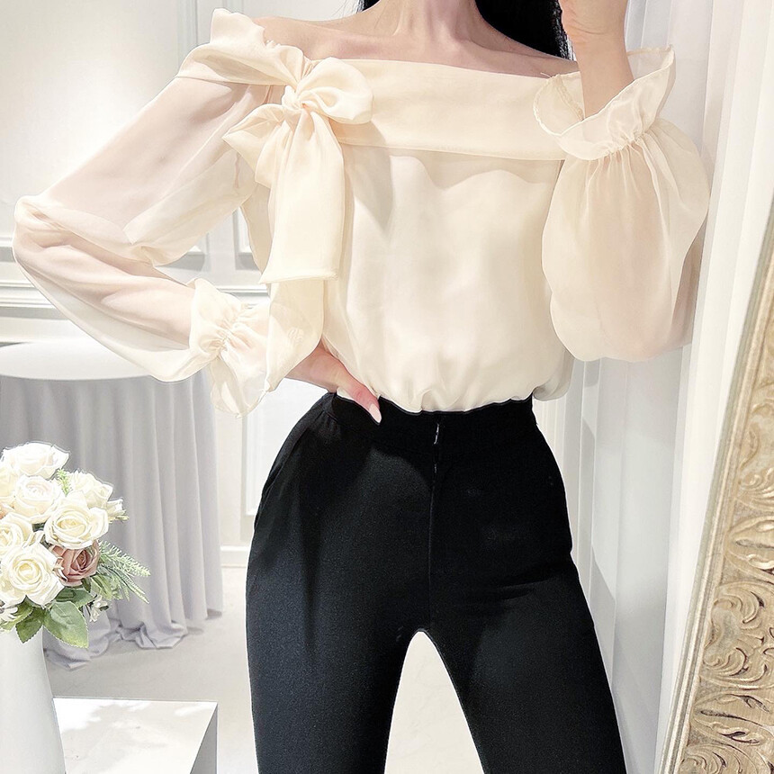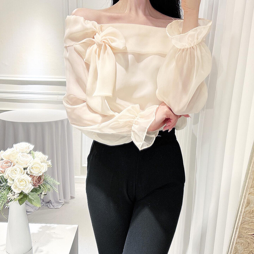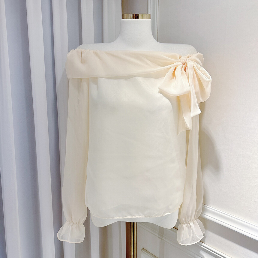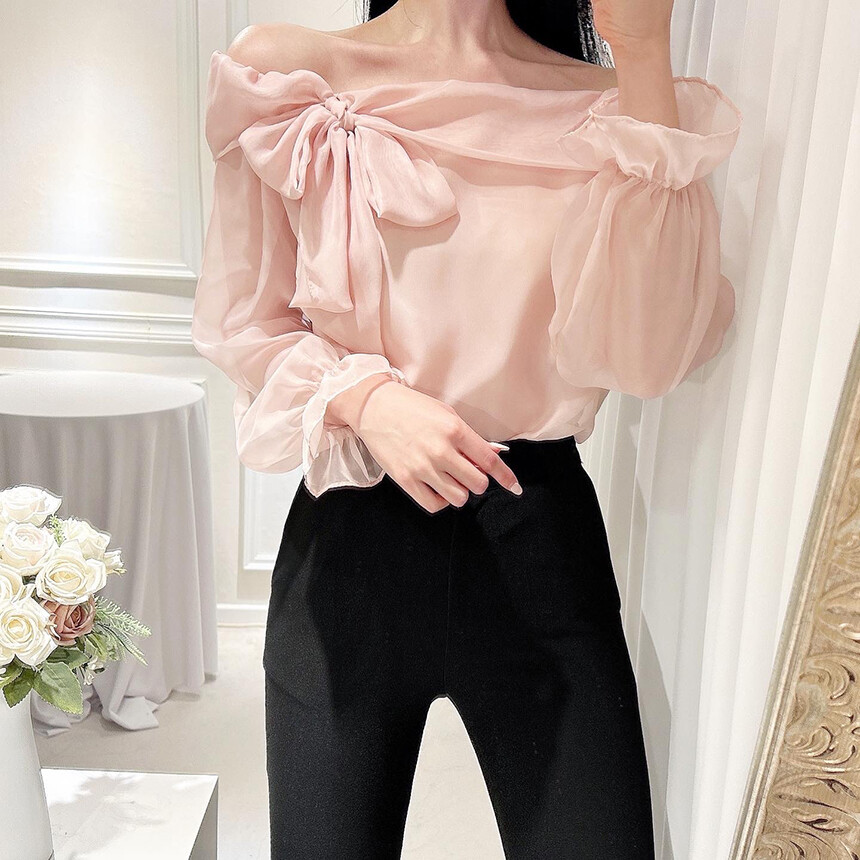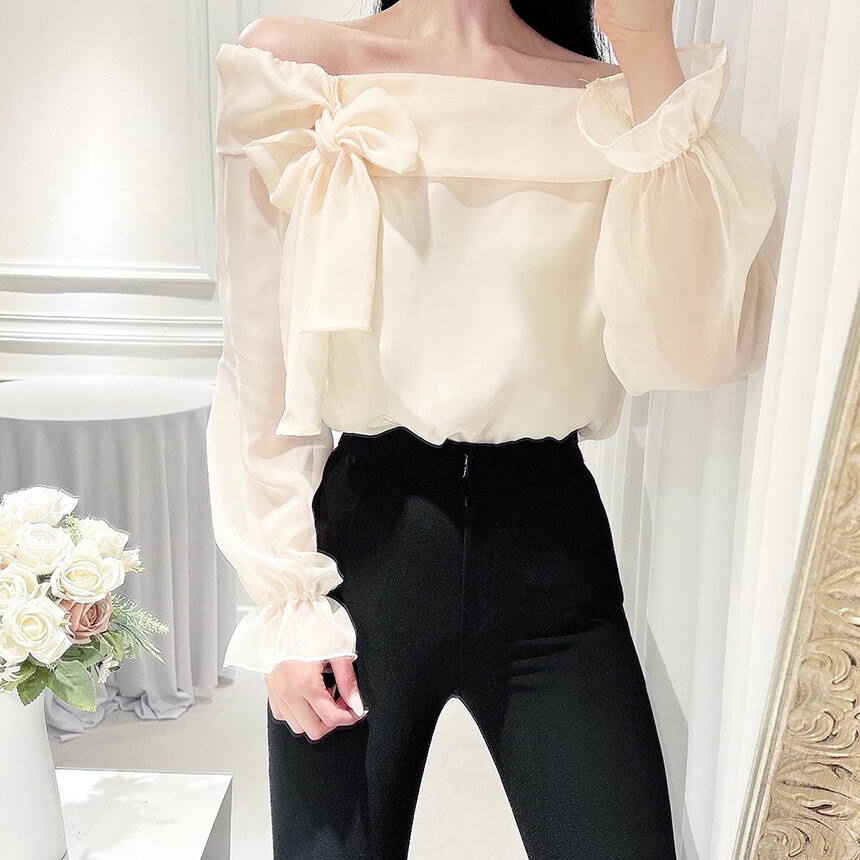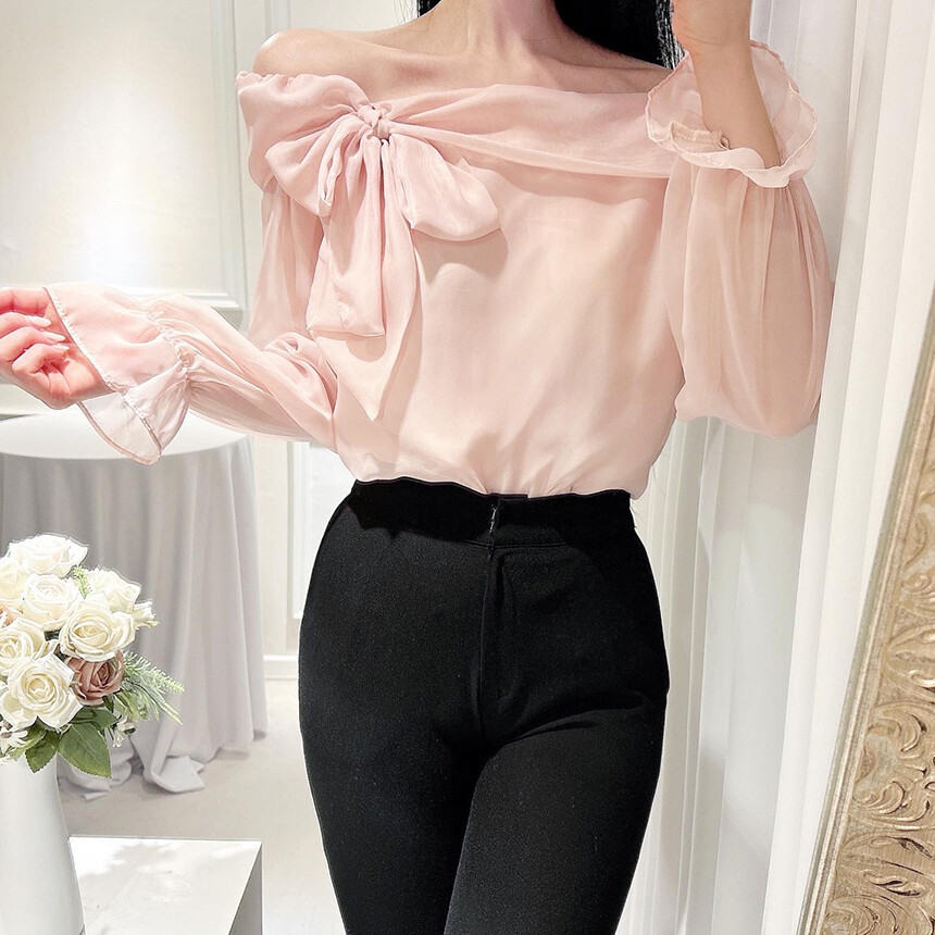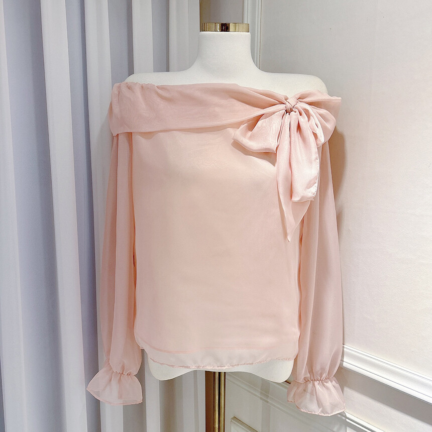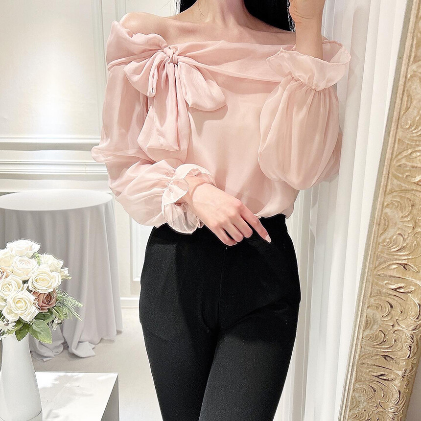 [원가이하 세일*당일출고] 오프숄더 밴딩 타이 리본 여리여리 여신 블라우스 (데이트룩 럭셔리룩 파티룩)