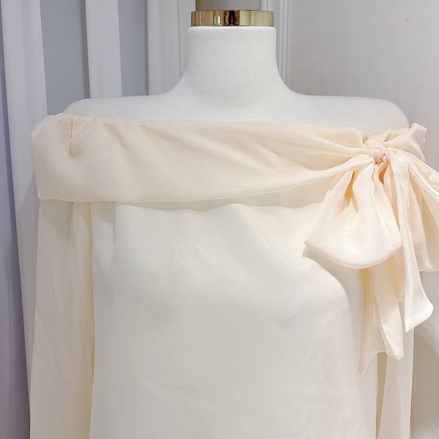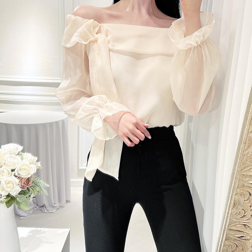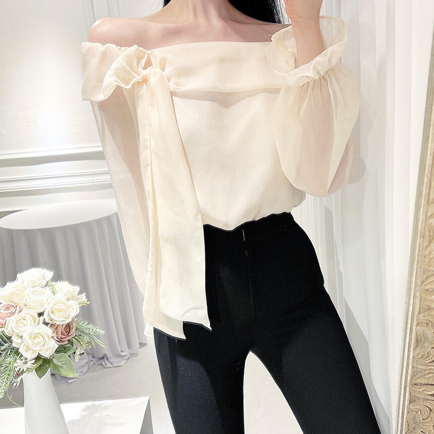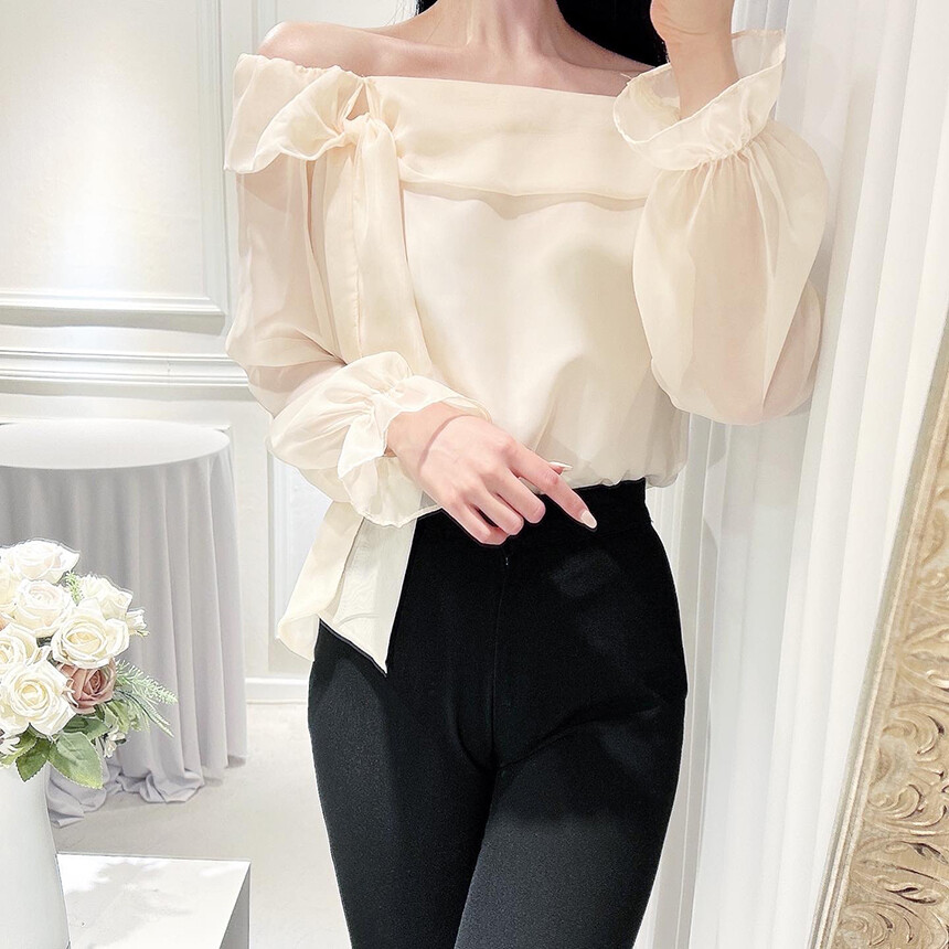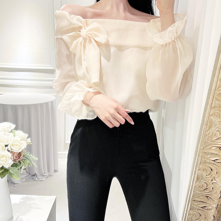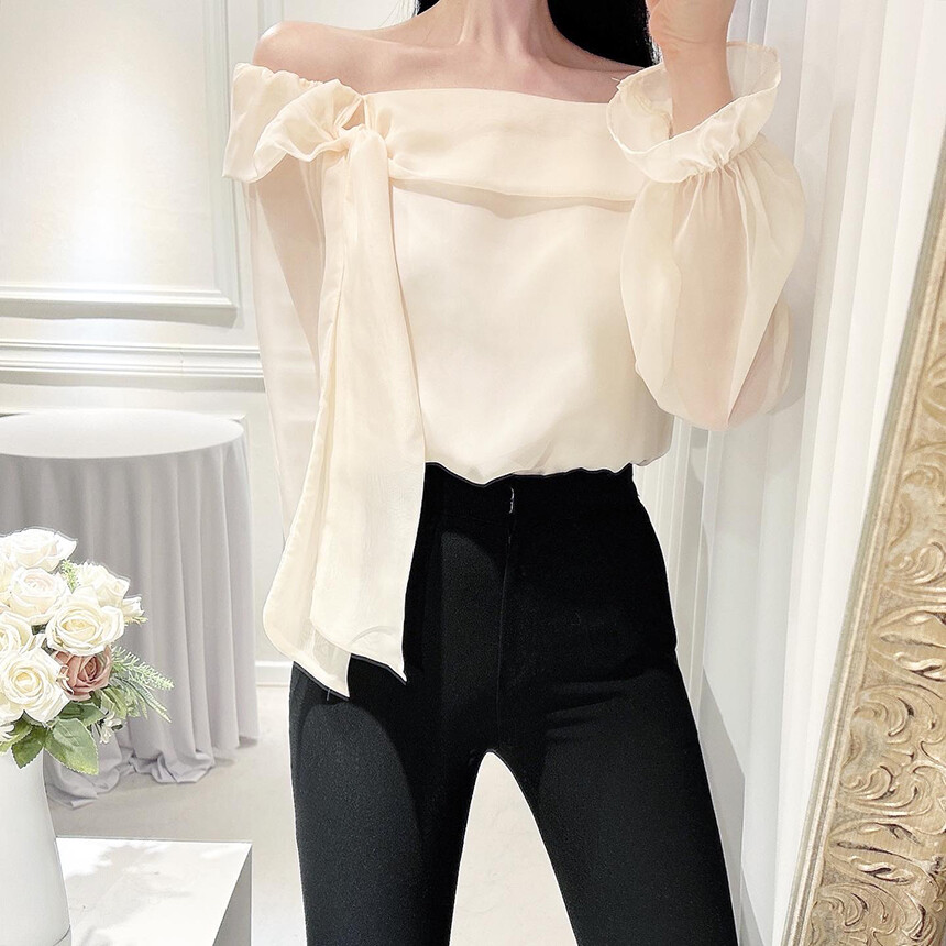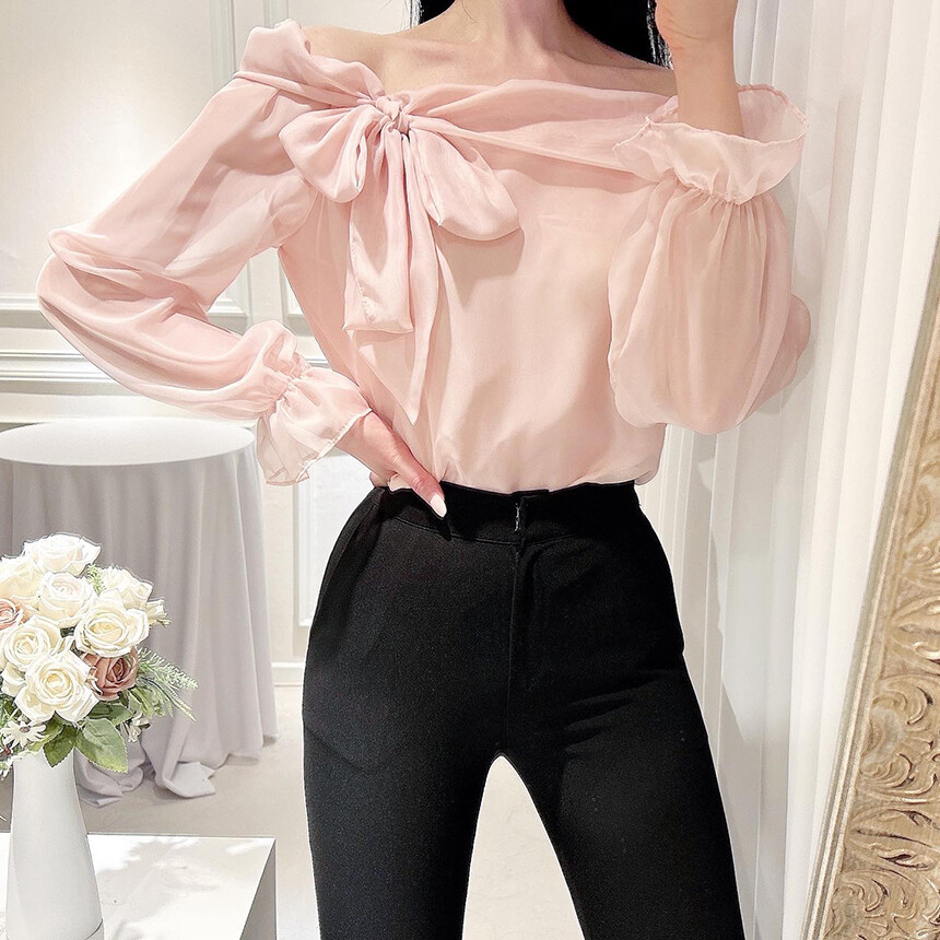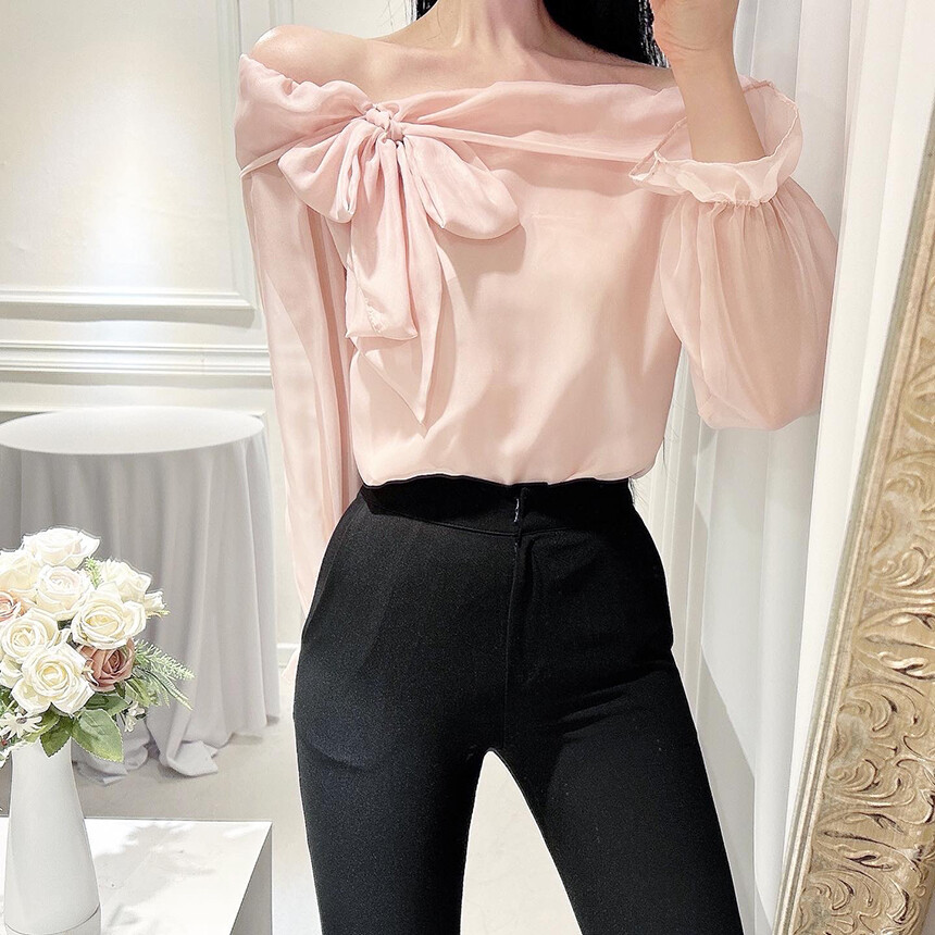[원가이하 세일*당일출고] 오프숄더 밴딩 타이 리본 여리여리 여신 블라우스 (데이트룩 럭셔리룩 파티룩)