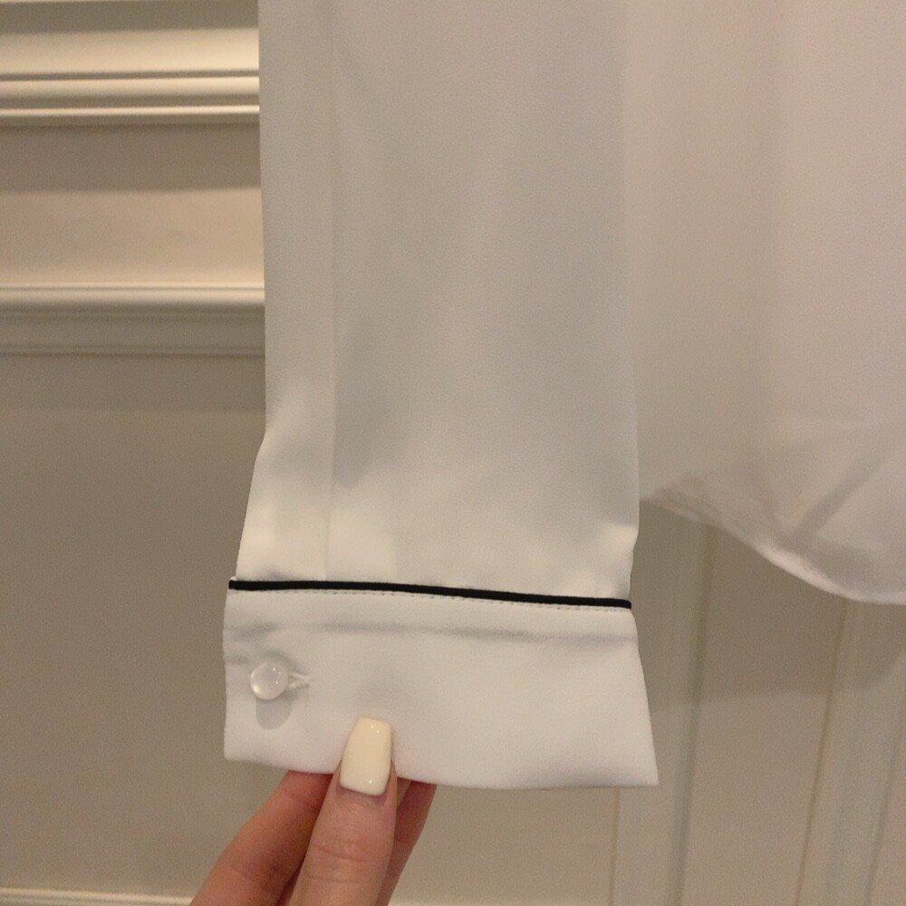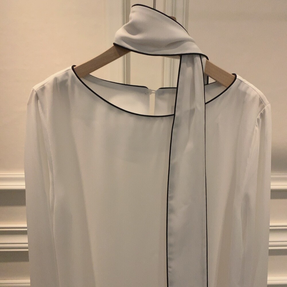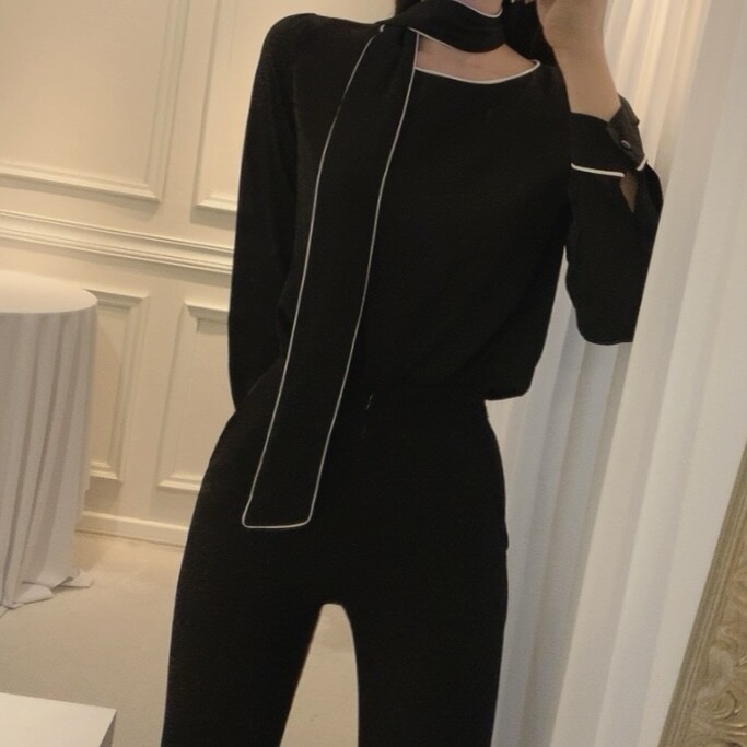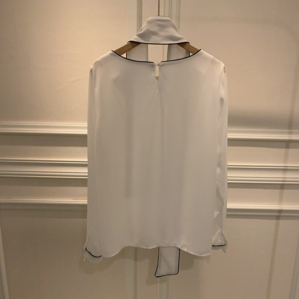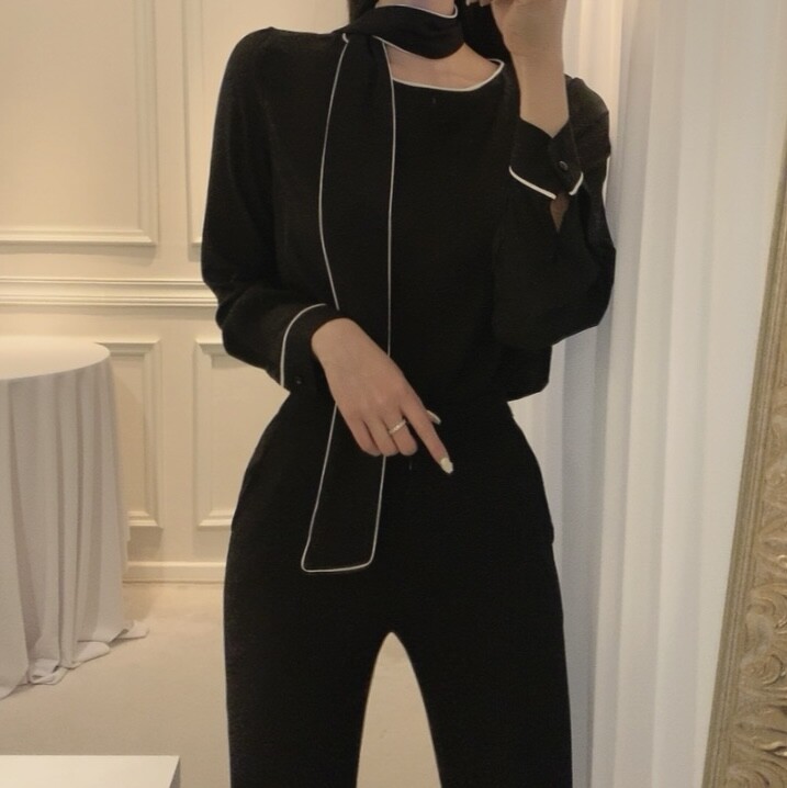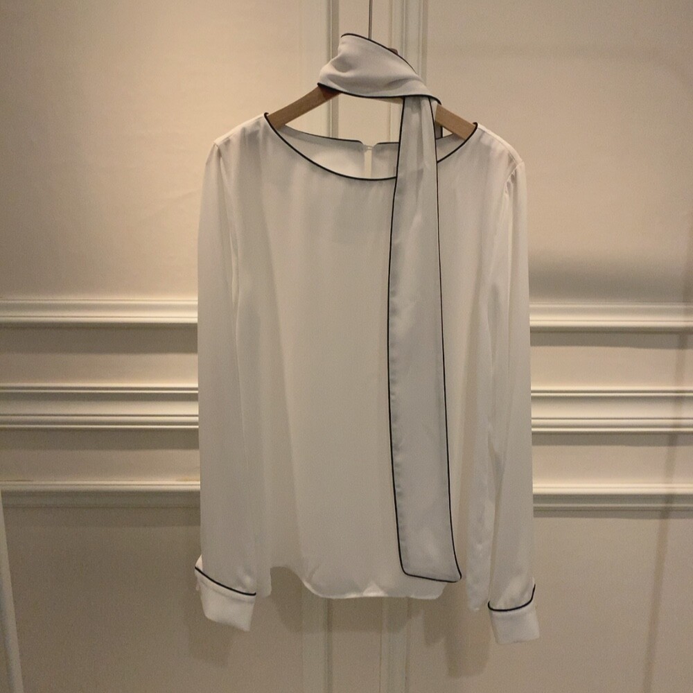 삥줄 배색 스카프 타이 여리여리 루즈핏 블라우스 (하객룩 데이트룩 오피스룩)