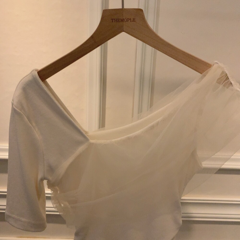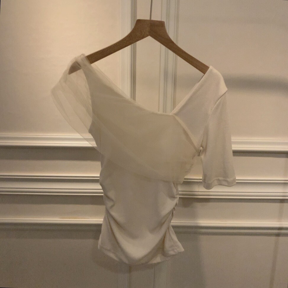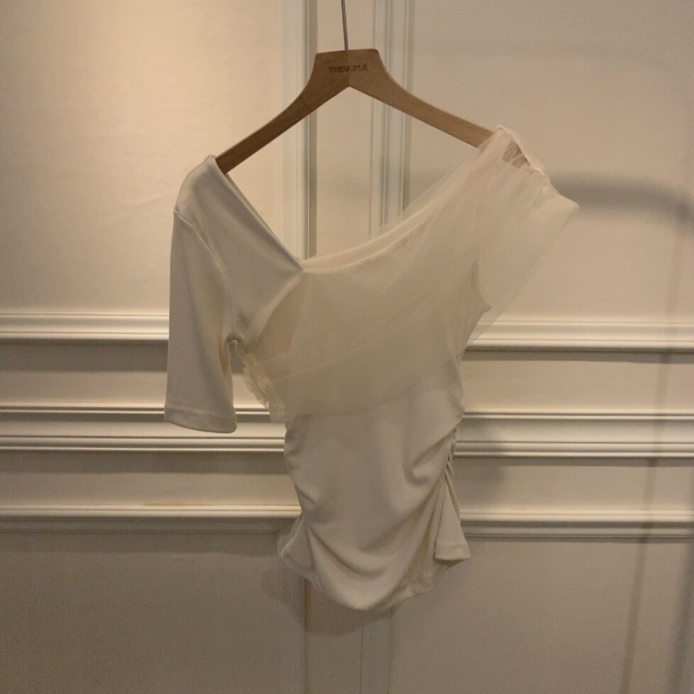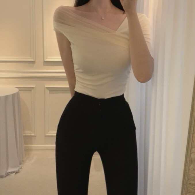 언발란스 반팔 나시 노방 오간자 망사 꼬임 셔링 티