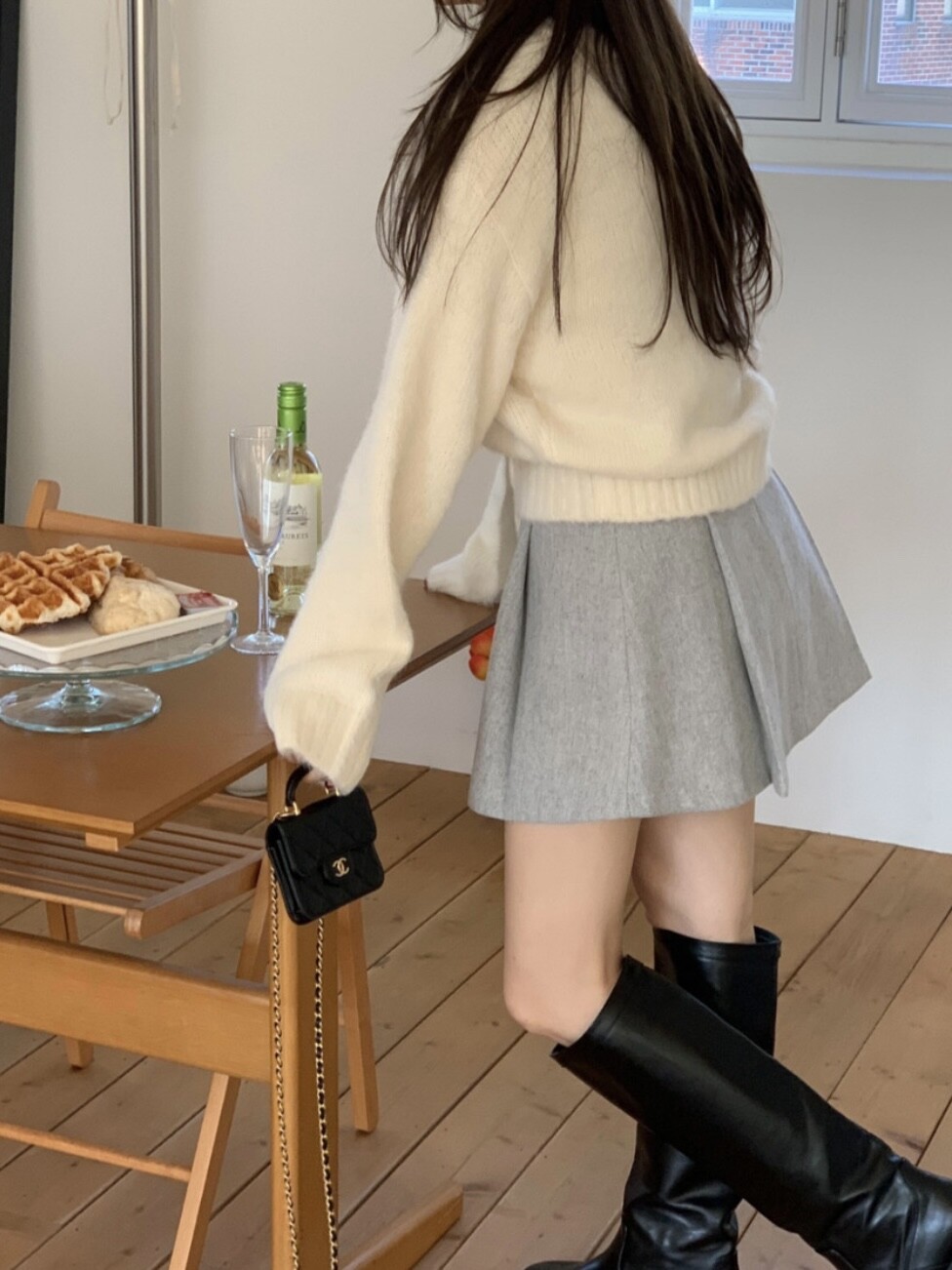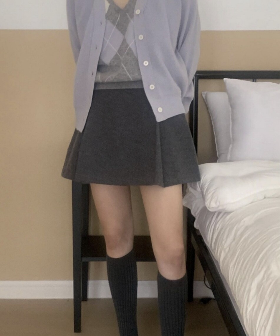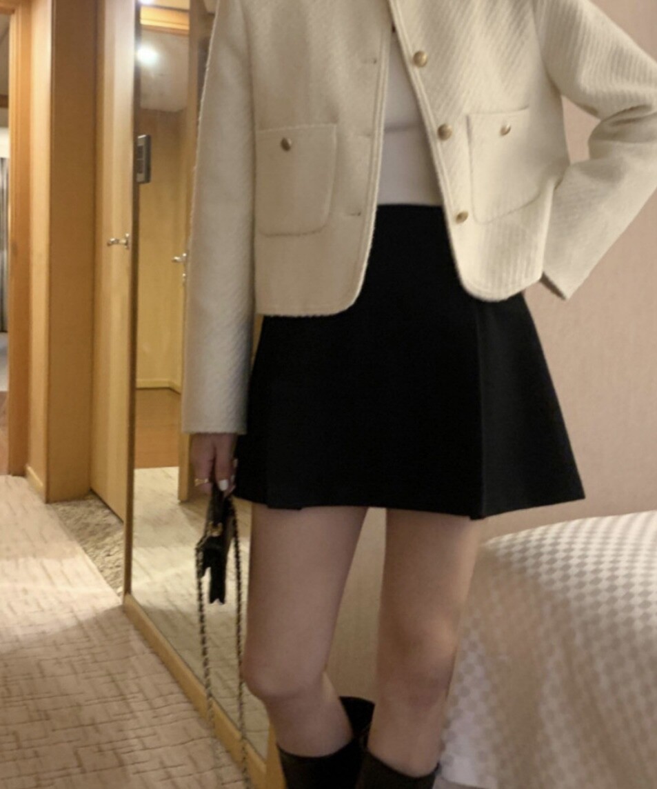 [원가이하 세일*당일출고] 울 로렌 핀턱 미니 에이라인 스커트