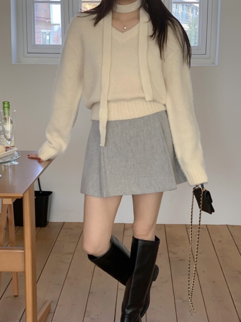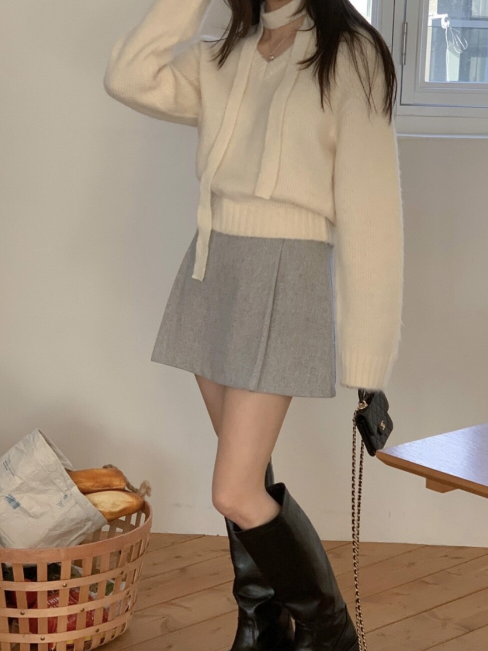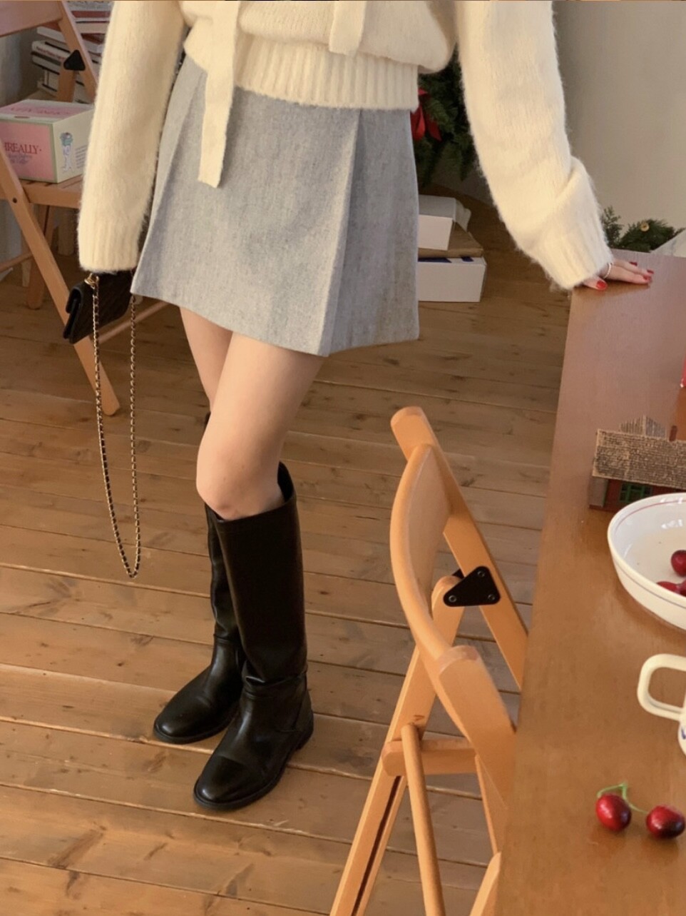 [원가이하 세일*당일출고] 울 로렌 핀턱 미니 에이라인 스커트